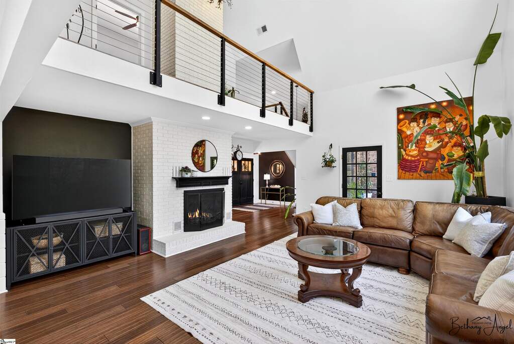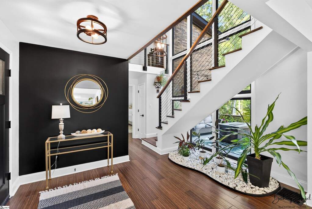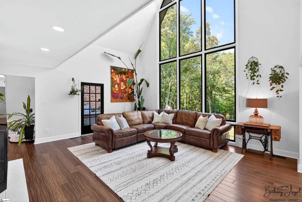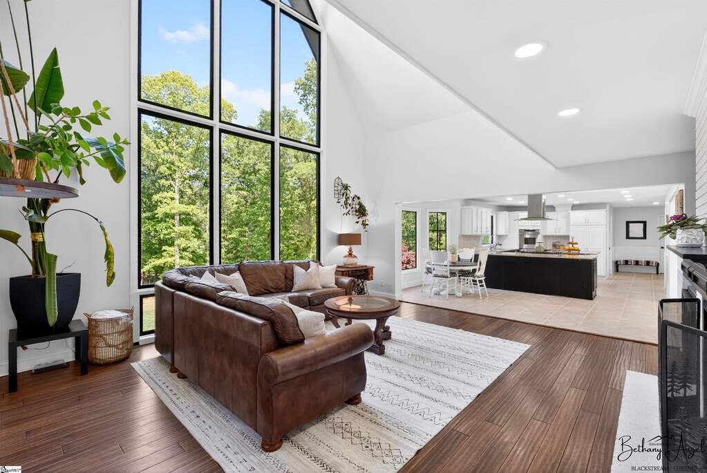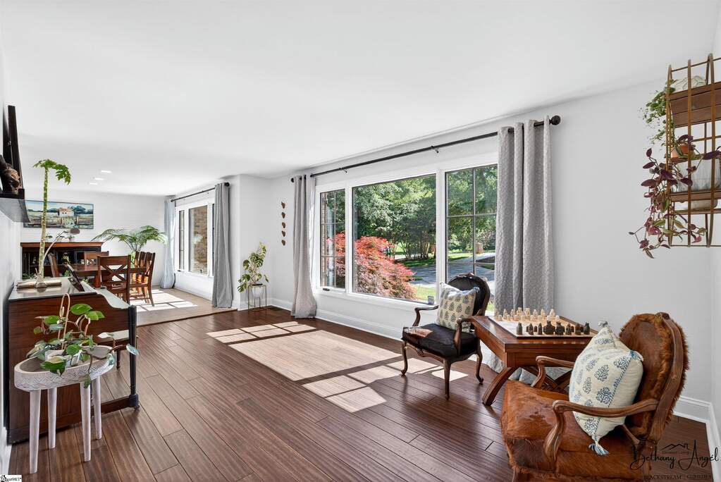 Set along the banks of the Middle Tyger River in the Twin Lakes community, this all-brick estate offers a rare blend of privacy, presence, and natural beauty-tucked at the end of a quiet cul-de-sac on a wooded homesite. An artisan finished circular drive creates a graceful arrival, framed by manicured grounds and a tranquil koi pond. Inside, double doors open to a dramatic two-story foyer where soaring ceilings and natural light immediately set the tone-elevated, yet welcoming. The main level unfolds with intention. A piano sitting room transitions seamlessly into a formal dining space, guiding you into a chef's kitchen appointed with expansive granite surfaces and a sunlit breakfast nook overlooking the landscape. Just beyond, the great room captivates with walls of windows and a striking brick gas fireplace-offering both scale and warmth. A main-level primary suite provides a private retreat, featuring dual vanities, a walk-in rain shower, soaking tub, and generous closet space. Upstairs, four spacious bedrooms and two full baths offer flexibility for family and guests, connected by a beautifully designed cable rail staircase. The walk-out lower level expands the home's livability, with a second primary suite, a cozy den anchored by a brick fireplace, and dedicated spaces for fitness and entertaining. Outdoors, the experience becomes truly special. Hammocks sway beneath mature trees, wildlife moves quietly through the landscape, and evenings invite gathering-whether around the patio fire or down by the river's edge. A tree fort and workshop add a sense of character and discovery, creating a setting that feels both grounded and unforgettable. A home defined by space, light, and a connection to nature-crafted for both everyday living and lasting moments.