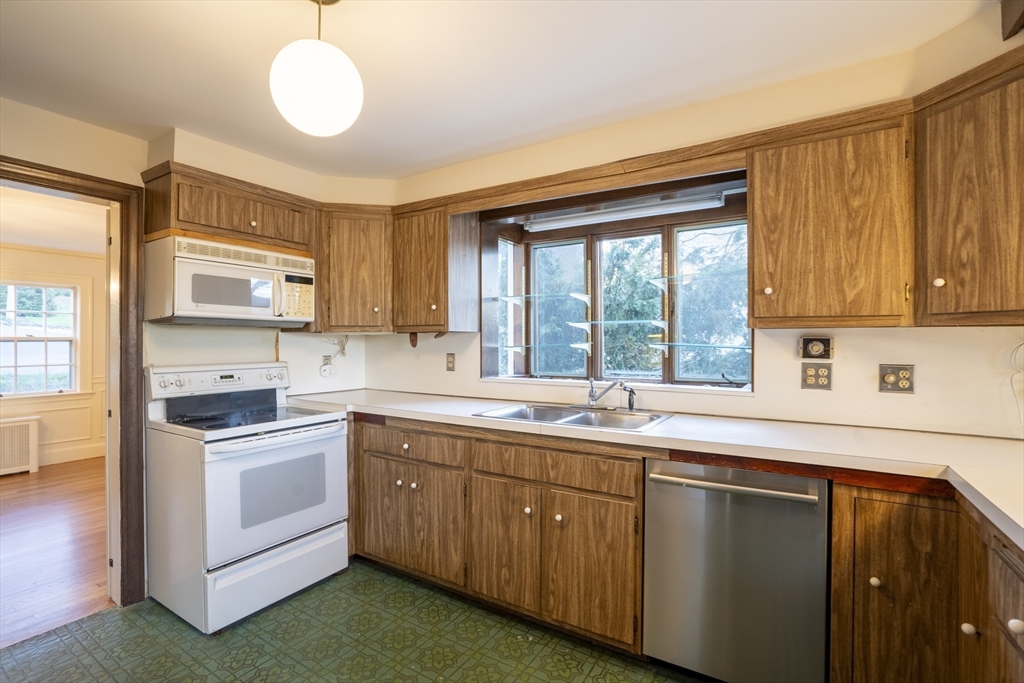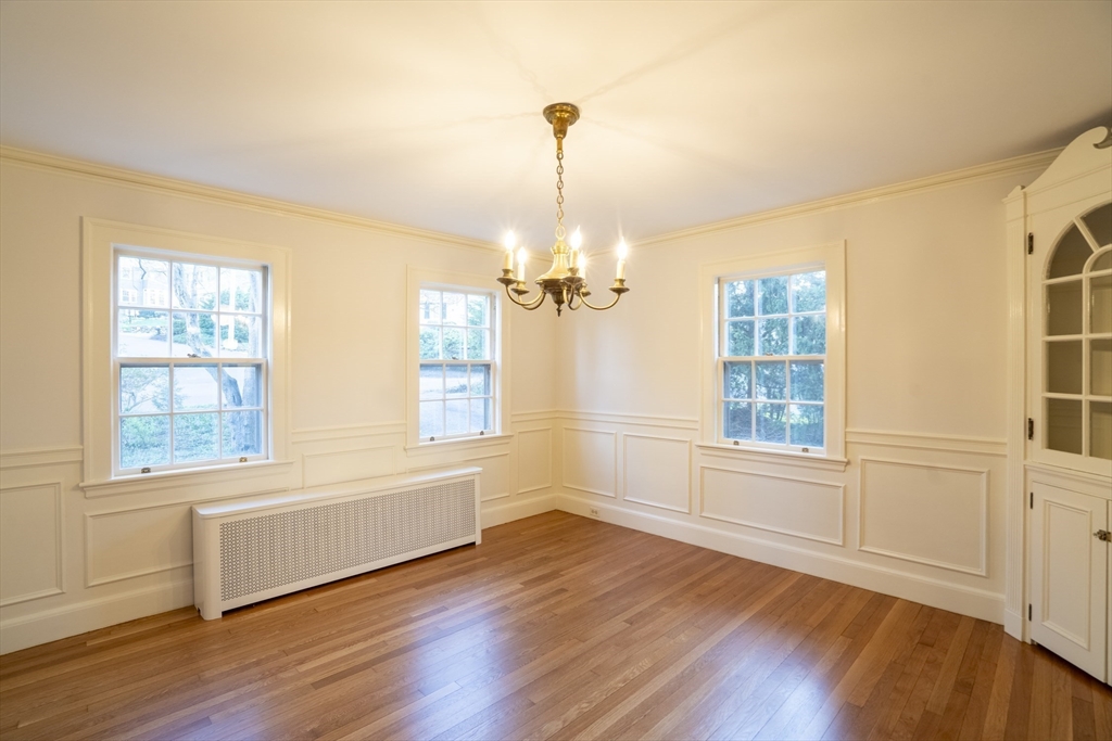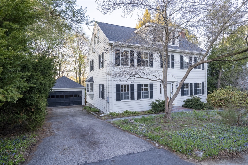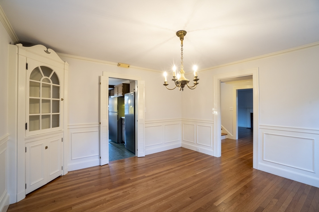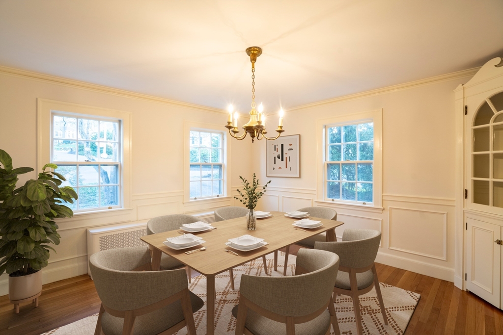 Charming Follen Hill Center Entry Colonial featuring a classic through hall, high ceilings, and detailed crown and picture mouldings. The spacious entry opens to a front-to-back fireplaced living room with rear sunroom/ den, and a formal dining room with built-in china cabinets. Kitchen sliders lead to a relaxing mahogany deck with a flagstone patio below. Recent updates include freshly painted interior and exterior, 2025 roof, gleaming hardwood floors, updated electrical service, and a newer heating system. Ideally located near Tower Park, the Lexington Community Center, Minuteman Bikeway, Wilson Farm, Great Meadow, MBTA bus line, and Route 2.