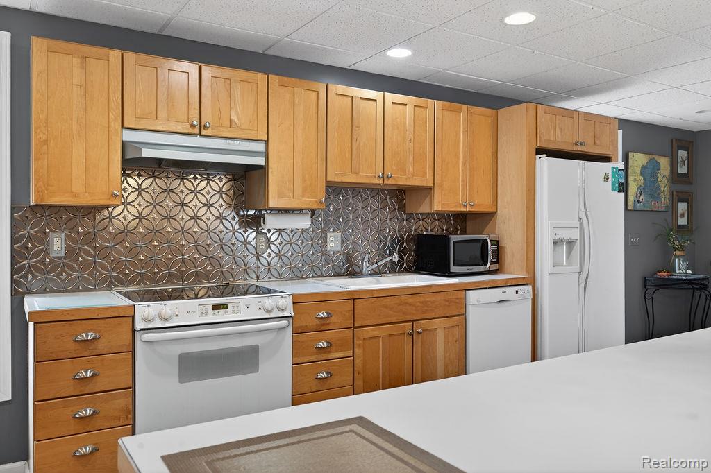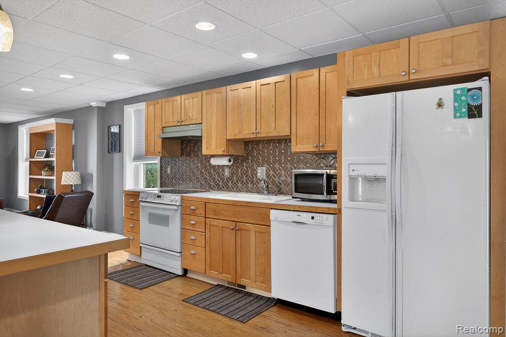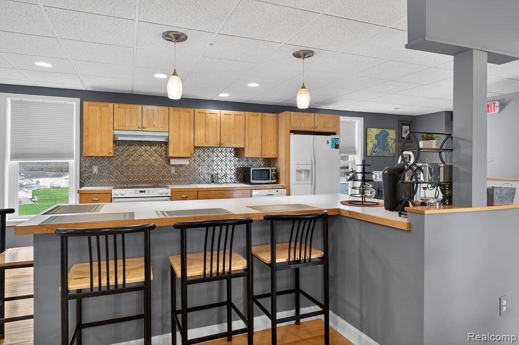 The Ultimate Live-Work Lake St. Clair Gem! Rarely does a property with multiple opportunities like this come to market. Fully rehabbed in 2018 and meticulously maintained, this 1907 registered historic treasure sits directly across from Lake St. Clair. The lower level boasts a 500 sq. ft. modern office featuring LVT flooring, a private half-bath, and dedicated laundry. Two separate entrances provide a professional flow for clients. The office connects to the "Dream Garage" consisting of a 1000 sq ft heated, insulated workspace with 11ft ceilings, two 10ft garage doors, a half-bath, a double utility sink, insulted walls and a sound-proofed air compressor room. Perfect for a contractor, car enthusiast, or high-end workshop. The upper level is currently running as an Airbnb and is a show stopper offering an open-concept area encompassing the kitchen, dining, and living areas. Truely perfect for grand scale entertaining, the kitchen includes an large island, wood cabinetry with tons of storage, a dedicated coffee bar, and a dining area large enough for an 8-person table with room to spare. You'll also find pristine hardwood floors featuring a custom artistic inlay in the living area and premium updated windows to ensure a quiet interior. The generous primary bedroom has double closets with dual access to the sleek, updated bathroom featuring a large ceramic tile shower and modern fixtures. The large second bedroom is located on opposite wing of the unit to ensures maximum privacy for residents or guests. Perfectly situated for the water/boater enthusiast, you are directly across from Lake St. Clair with marinas nearby. The property is zoned commercial with grandfathered residential zoning. Live upstairs & run your empire below, convert back to fully residental, or capitalize on three separate rental streams (Office, Garage, and Airbnb). Click on virtual tour button to see rooms. The property is truely one of a kind!