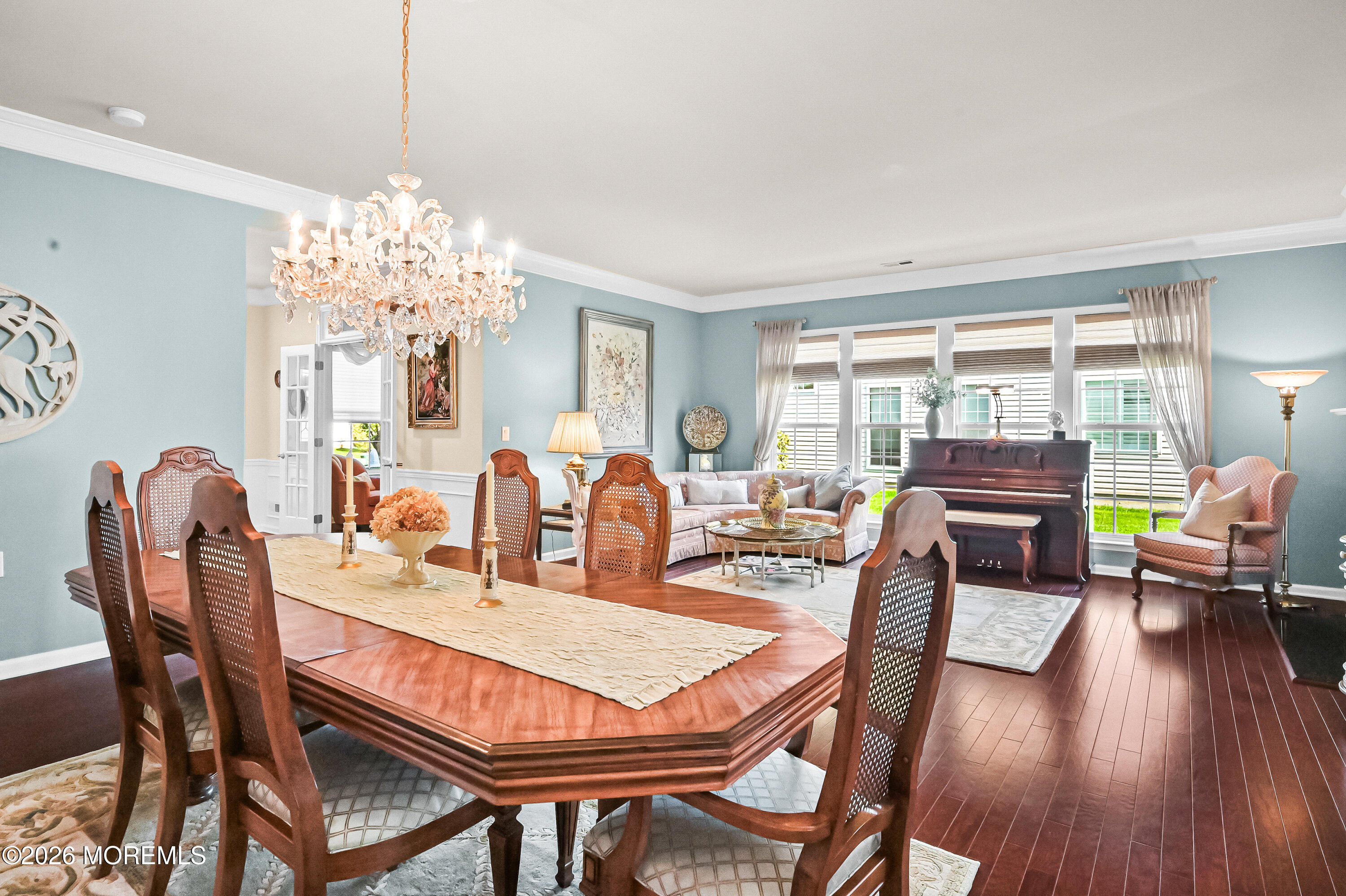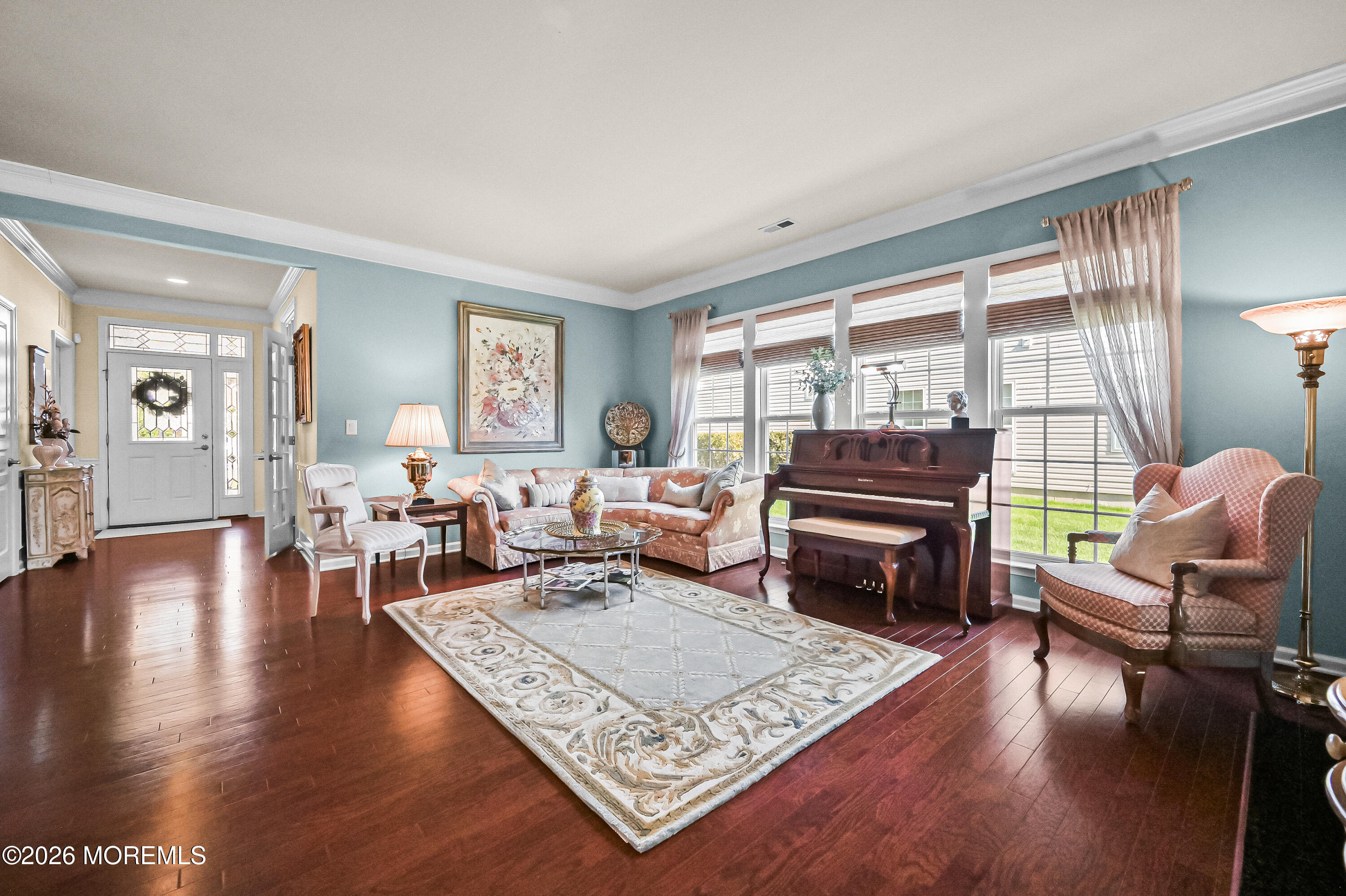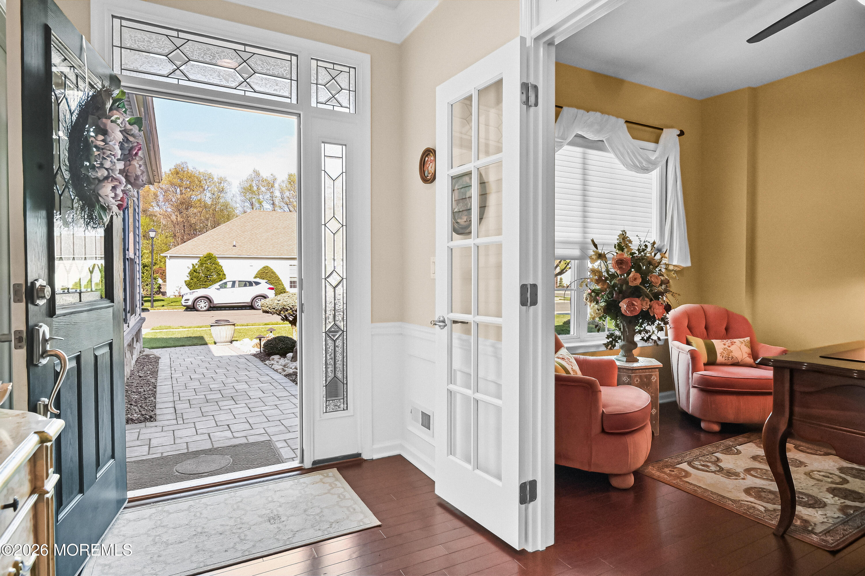 This is a coming soon listing and cannot be shown until April 24th. Here it is! This meticulous 2-bedroom EXPANDED ranch is now available. The original owners spared no expense in providing upgrades and additions that are timeless and unique compared to the other ranches in this highly desirable community, Equestra at Colts Neck. An additional 6 feet has been added on to the back of the home, providing a larger eat-in kitchen, gaining additional cabinets and a butler station, as well as enhancing the primary suite, making it larger & more exquisite. The paver patio is just off the kitchen. It has been raised & expanded to provide ample space for entertaining or relaxing in the sun. The addition of 2 beautiful trees makes this space extremely private and serene. The rest of the home is absolutely beautiful! Move-in ready paint colors, gleaming hardwood floors, decorative moldings, a bonus room used as a home office, plantation shutters, custom window treatments, an upgraded appliance package, and a double-sided gas fireplace that provides ambiance and heat in the cooler months. Newer energy-efficient upgrades include a Generac generator, a whole-house humidifier, an in-duct air purification system, new HVAC, and automatic outdoor lighting. Conveniently located only 2 blocks from the community pools and clubhouse. Don't miss the park-like walking path! There are too many amenities to list, but if you have been waiting for a home like this to come on the market in Equestra, then you probably know all about it & know why the inventory doesn't last here! Make your appointment today!