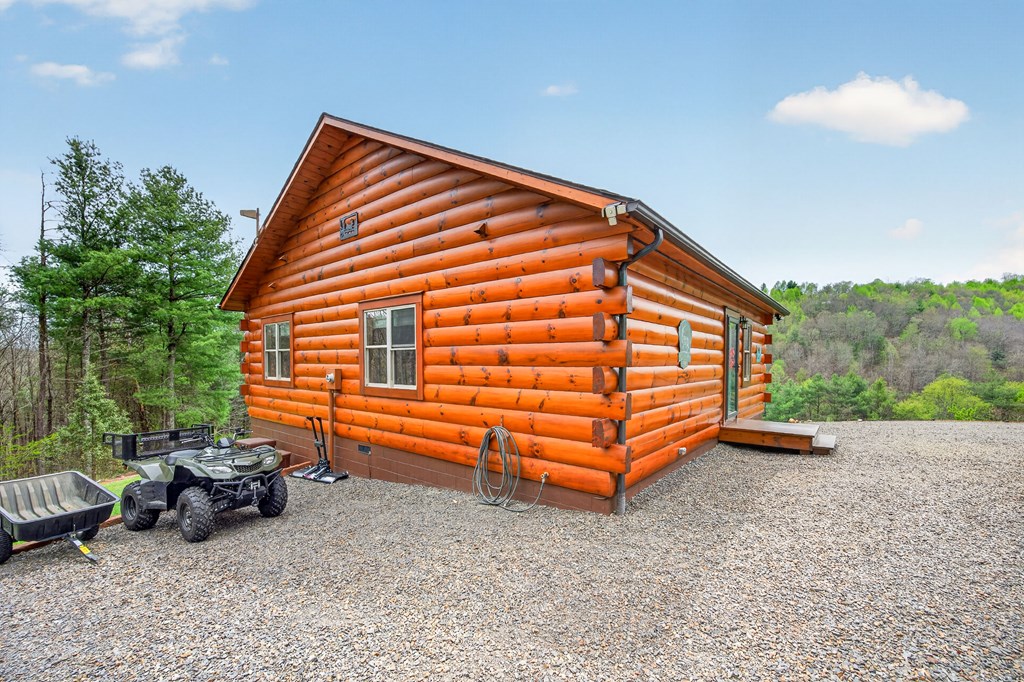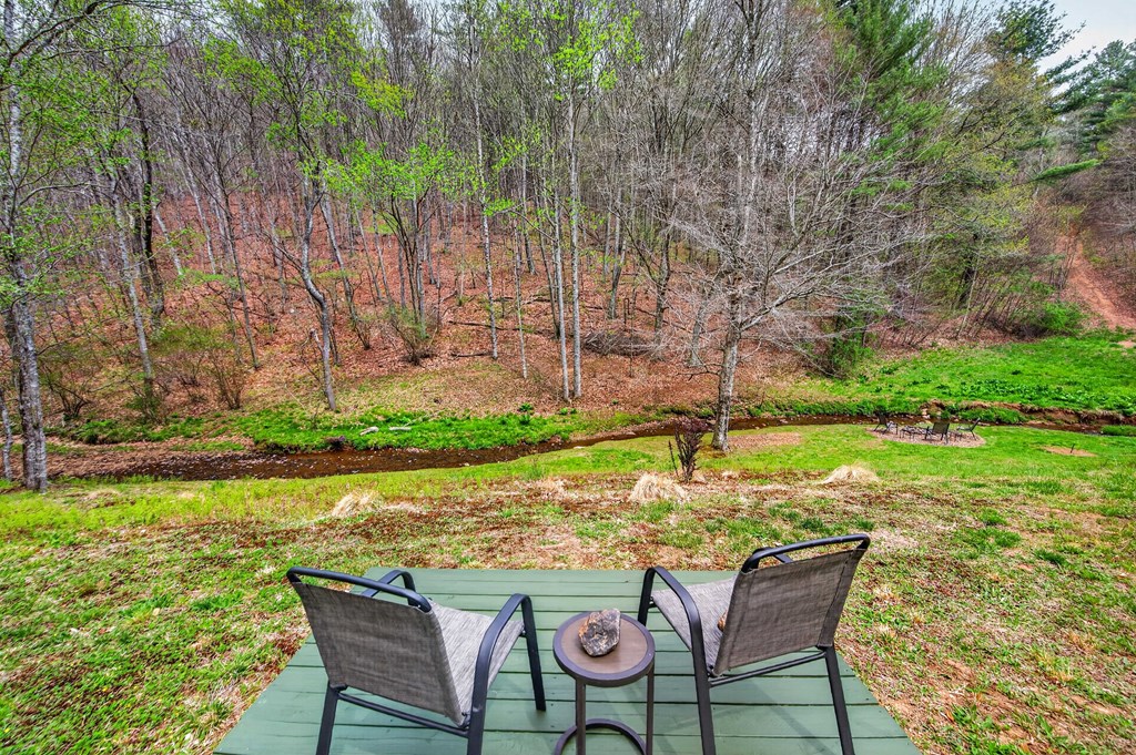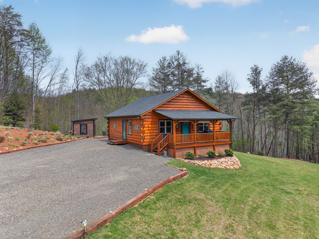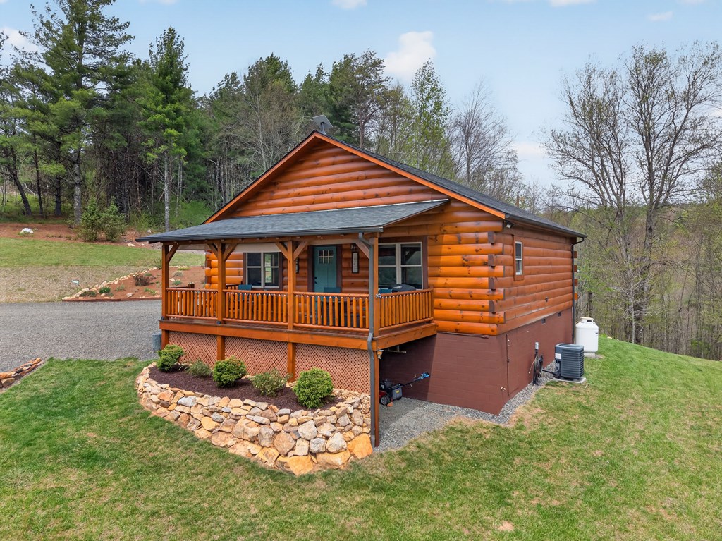 Take a breath and settle in, this is the kind of place people picture when they think about owning a cabin in the mountains. Set on 10.449 acres, this 2 bedroom, 1.5 bath log home offers a level of care and condition that is hard to find. Built in 2018 and meticulously maintained, it feels practically new. The home has been recently stained and sealed, the driveway has fresh gravel, and everything about the property reflects attention to detail. Step outside and you will understand what makes this property special. A beautiful creek runs through the land, with four thoughtfully placed sitting areas where you can relax and listen to the water. There is a horseshoe pit by the creek, solar lighting for evenings, and multiple ways to access it including an ATV trail, two walking trails, and a separate drivable entrance that lets you pull right up to the water for easy gatherings. Apple and plum trees add to the setting and make it feel like your own private retreat. The home conveys fully furnished, including all window treatments, furniture, appliances, and decor, making it ready to enjoy from day one. There is no formal HOA, only protective covenants and restrictions, keeping the community relaxed and enjoyable. Complete privacy with no visible neighbors. With two lots included, there is room to expand or build an additional home if desired. Whether you are looking for a full time residence, a weekend escape, or a vacation rental, this property offers the flexibility to fit your plans.