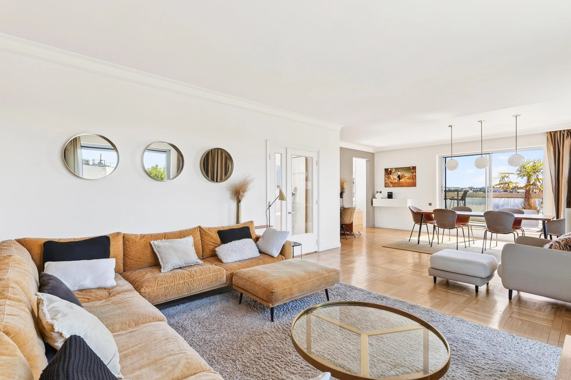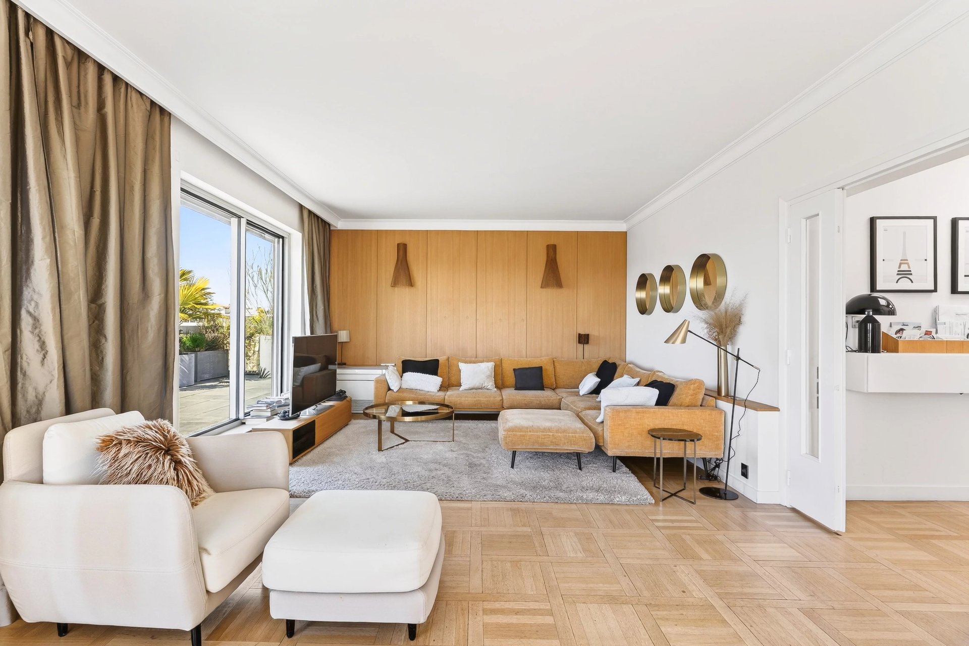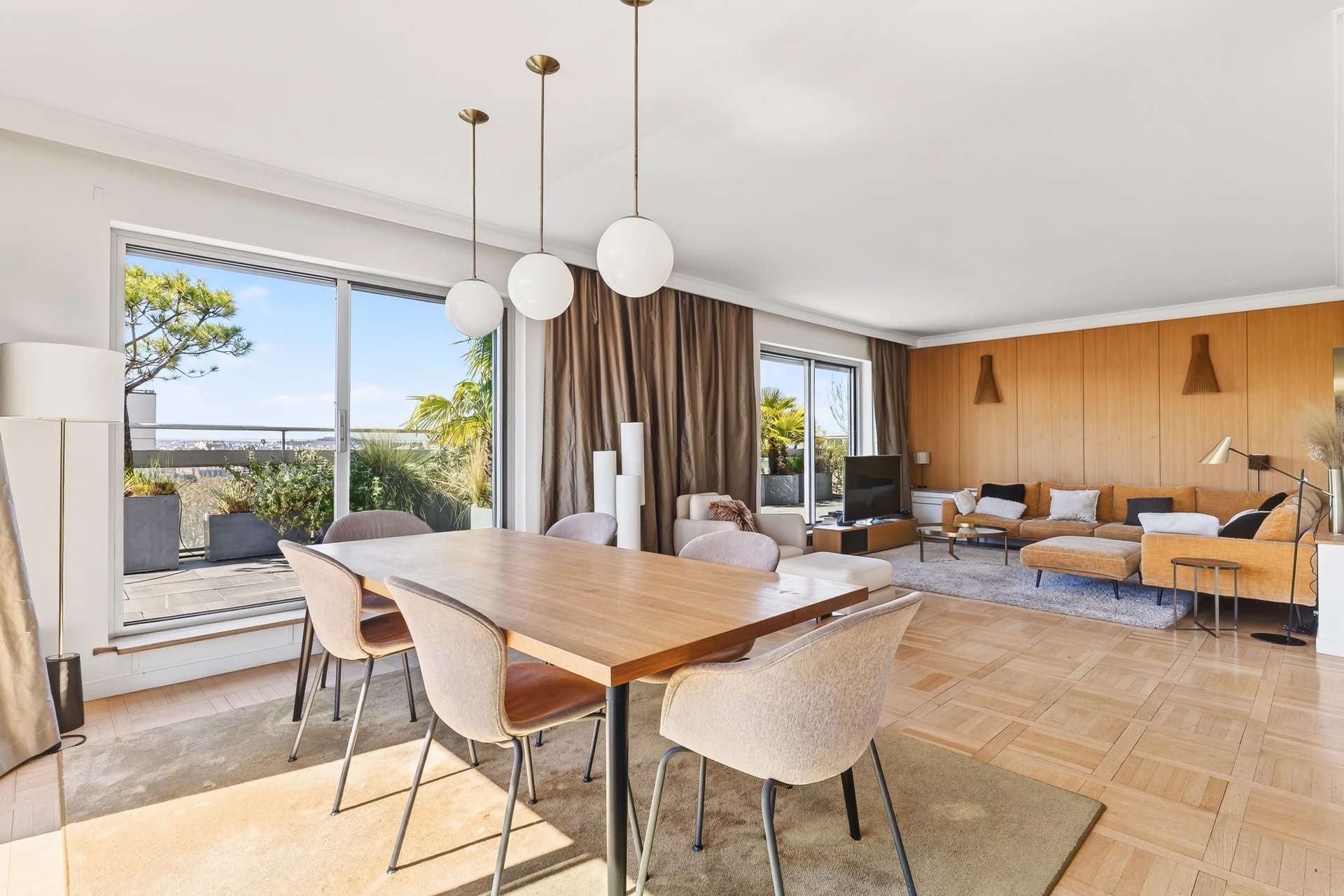 Facing the tennis courts on Boulevard Péreire, on the eighth and top floor of a prestigious 1970s building, a superb penthouse of 125 sq m opens onto a sunny terrace of over 120 sq m.