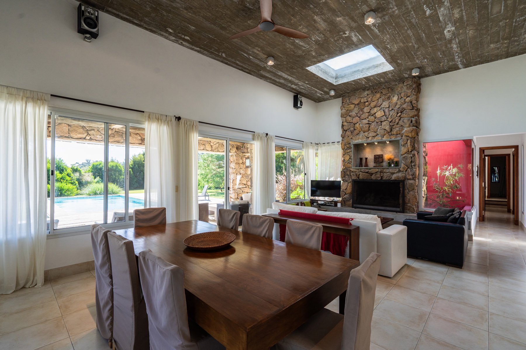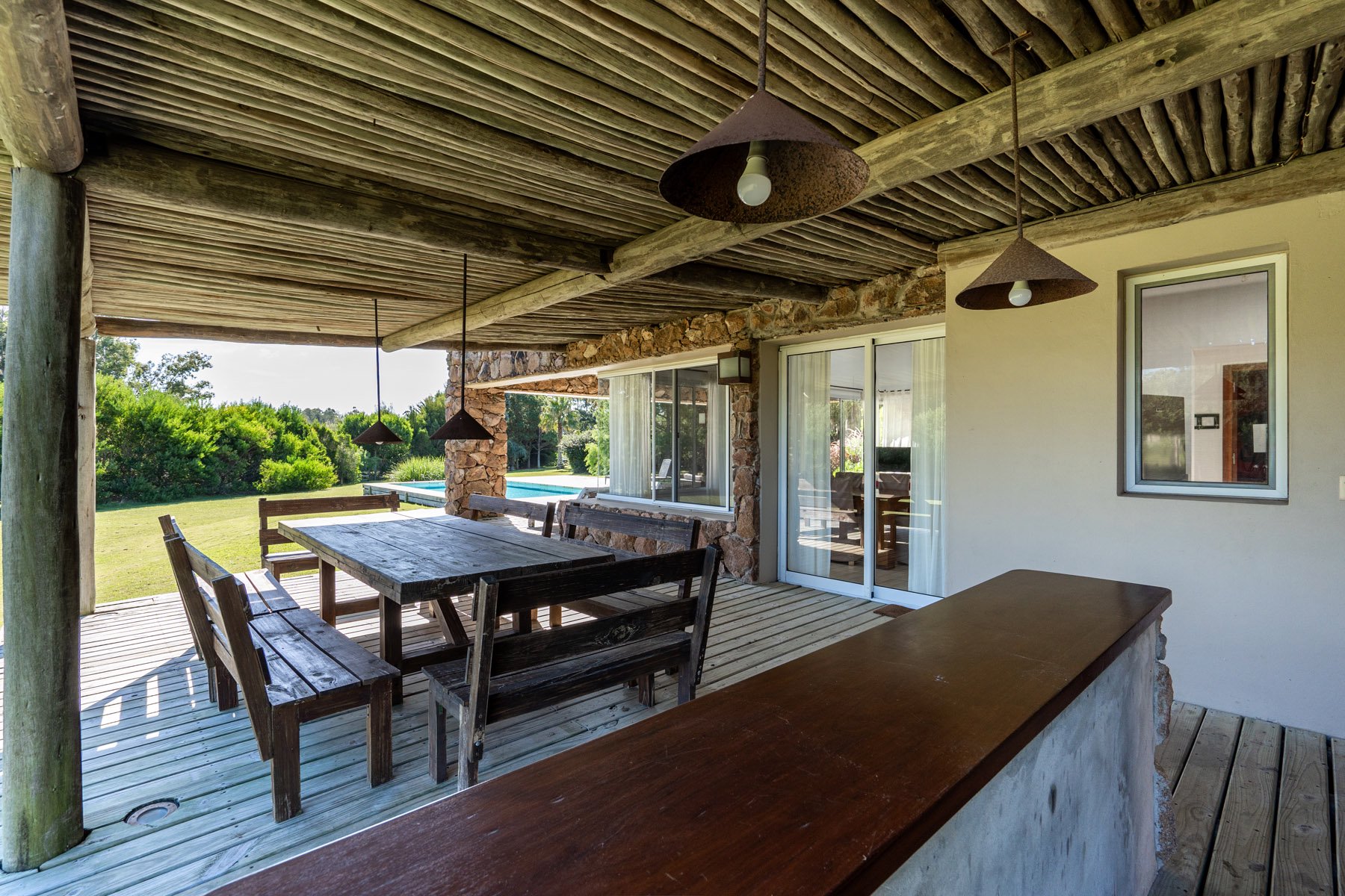 Discover this charming single-story house located in the exclusive neighborhood of Chacras El Quijote, just 15 minutes from the vibrant center of La Barra. This property combines comfort and style in an unparalleled natural setting.The home features 3 spacious bedrooms and 2 bathrooms (one of them en suite), a bright living room equipped with a wood stove, and a semi-integrated kitchen with the dining area, creating the perfect space to enjoy unforgettable moments with family or friends.The house stands out for its wide perimeter gallery that connects to a private pool and a comfortable barbecue area, ideal for enjoying the outdoors. Additionally, it includes a service room and a laundry area in an independent module, providing greater functionality and space.Equipped with underfloor heating, it guarantees exceptional comfort during the winter.Residents of El Quijote enjoy a variety of top-notch services, including:- Running water and underground electricity- Club House with pool, restaurant, wifi, and clay tennis court- Equestrian and aquatic areas- Guest dormitories- 24/7 security with access control and mobile patrolling- Maintenance of gardens and common areas- Activities for children and teenagers (summer camp and night shuttle)- Additional services such as kayaking, housekeeping, barbecue, and shoppingThis property is ideal for both year-round living and enjoying vacations in one of the most sought-after areas in the region.
