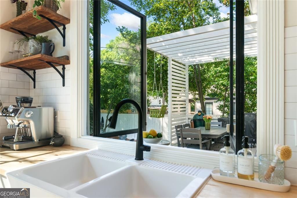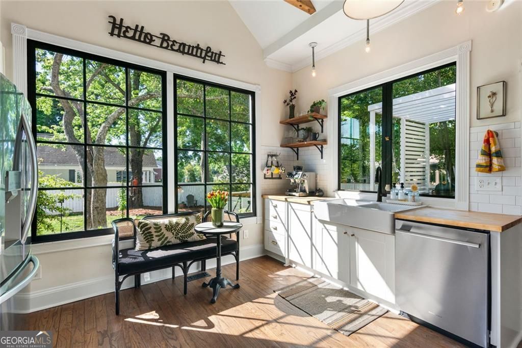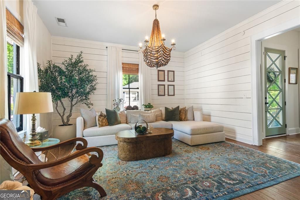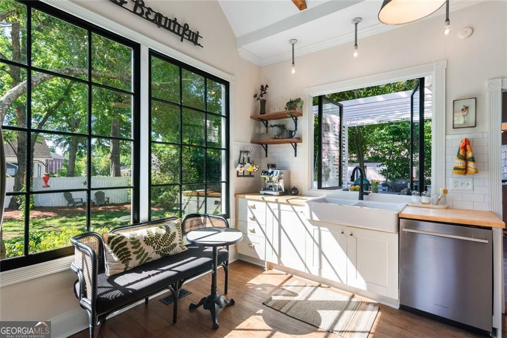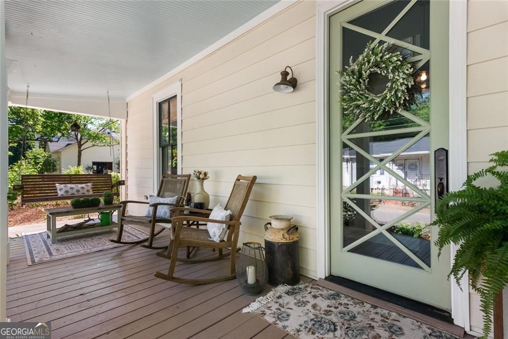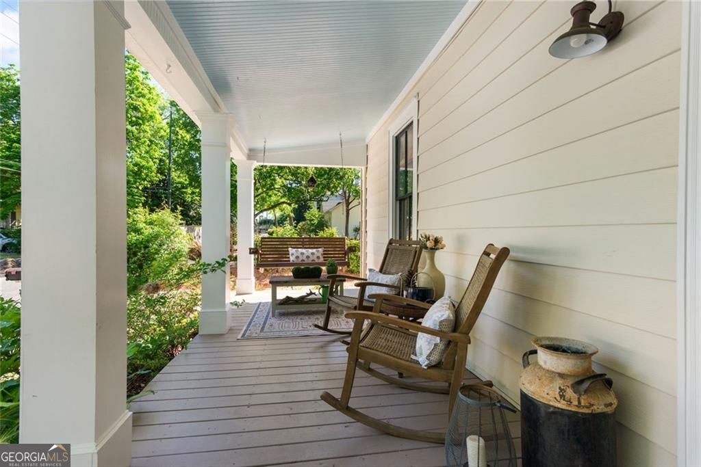 Set on a corner lot just steps from Marietta Square, this fully renovated 1910 historic home blends timeless character with modern comfort. Featuring 4 bedrooms and 2.5 baths, it offers the rare opportunity to enjoy thoughtful updates while staying true to the home's original charm. Inside, you'll find 10-foot ceilings, original hardwood floors throughout the main level, and a stunning stained-glass window in the primary suite. The kitchen is a true standout, with beamed ceilings, oversized windows overlooking the yard, and a pass-through to the deck, making it as functional as it is beautiful. The inviting front porch is ideal for slow mornings, while the backyard feels private and tucked away despite its unbeatable in-town location. Just a short stroll from Downtown Marietta, you'll enjoy easy access to the farmers market, festivals on the Square, and a wide variety of restaurants and shops. The Mountain to River Trail is only a couple of blocks away, along with highly sought-after West Side Elementary, adding even more appeal to the lifestyle this location offers.The main-level primary suite includes a clawfoot tub that nods to the home's historic roots. Upstairs, three additional bedrooms share a dual-vanity bath. Meticulously maintained, the home also features fresh paint, new appliances including a BlueStar range, a tankless water heater, dishwasher, and designer lighting and grasscloth wallcovering. This is one of those rare homes that lives just as beautifully as it looks.