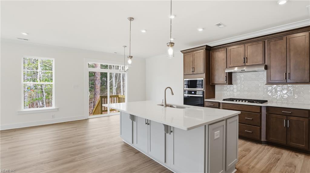 AVAILABLE IMMEDIATELY! This desirable single-level home offers effortless living with a gourmet kitchen featuring granite countertops, a center island, pantry, and separate breakfast area. A formal dining room sits just off the kitchen, while the spacious family room is perfect for entertaining. A charming pocket office provides the ideal work-from-home or study space. The primary suite includes two walk-in closets and a luxury en-suite bath with a soaking tub, walk-in shower, and double granite vanities. Easy-maintenance EVP flooring throughout completes this exceptional home. Directions- Head North on Rt 17, right on Tidemill Dr., right on Merrick Dr., to 1st right onto Beckwith Dr., right on Swiss Lane.