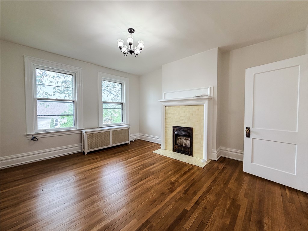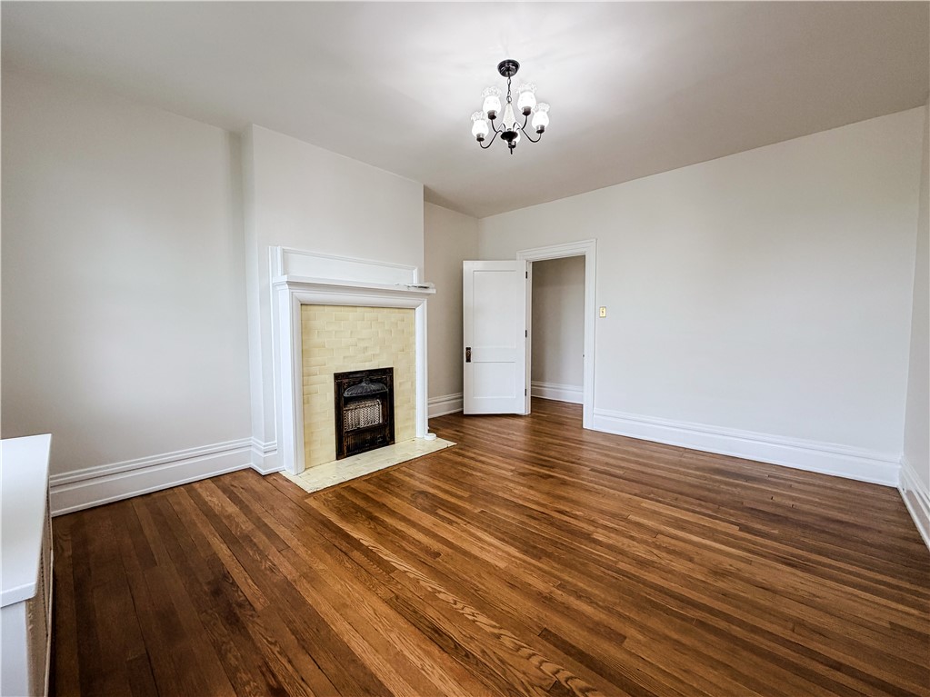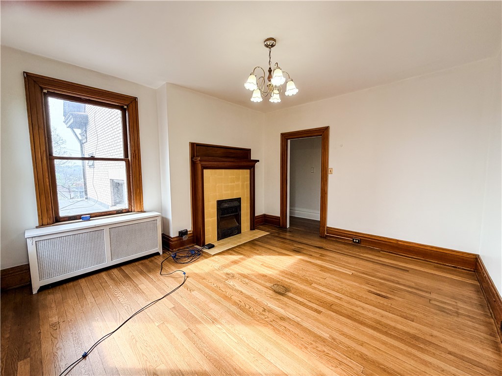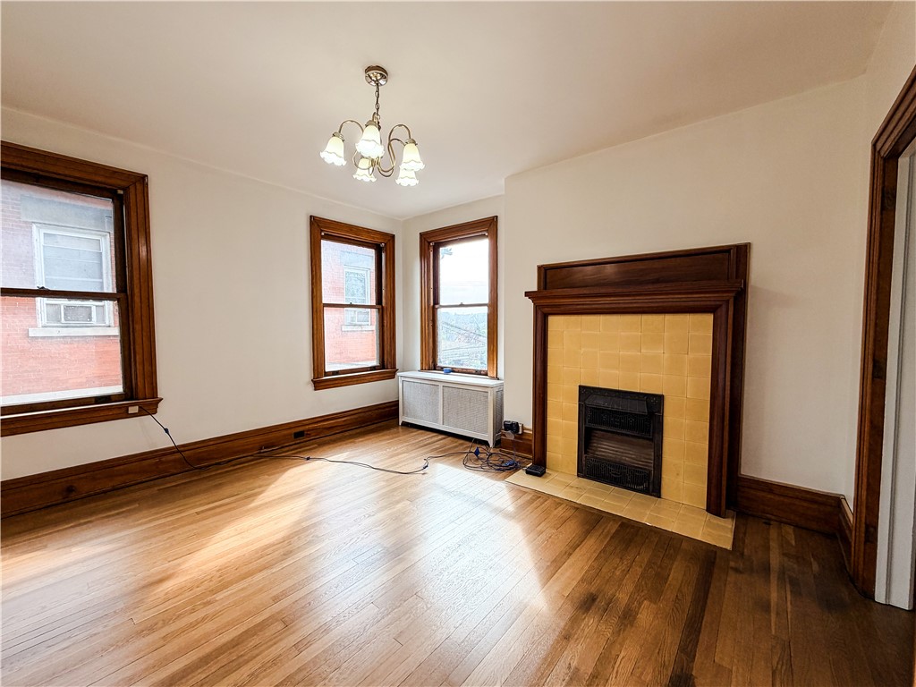 Don't miss this beautifully refreshed second-floor one-bedroom, one-bathroom apartment located in a character-filled quadplex perched atop a hill. This inviting unit has been completely repainted and features recently restored hardwood floors, creating a bright, clean, and welcoming living space ready for its next tenant. All utilities are included in the rent, offering exceptional value and simplified monthly living. Approaching the property, you'll be greeted by concrete steps leading to an expansive front porch, available for use by all residents - perfect for relaxing and enjoying the elevated views. Inside the unit, you'll immediately notice the tall ceilings and fresh neutral paint that enhance the open, airy feel throughout. To the right of the entry, the living room features large windows that fill the space with natural light, along with a decorative fireplace that adds warmth and character. The bedroom offers similarly tall windows, fresh paint, and another decorative fireplace, creating a cozy yet spacious retreat. The bathroom includes a soaker tub and a beautiful stained glass window, adding charm and unique detail. The kitchen provides access to a small private porch, reserved exclusively for this unit - perfect for enjoying morning coffee or fresh air. Additional highlights include a private rear entrance leading directly to off-street parking behind the building, offering convenience and added privacy. This distinctive unit combines historic charm, fresh updates, and unmatched convenience with utilities included, all ready for immediate occupancy. Schedule your showing today - this beautiful unit won't last long!