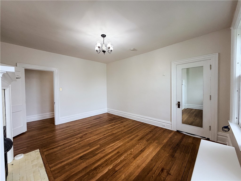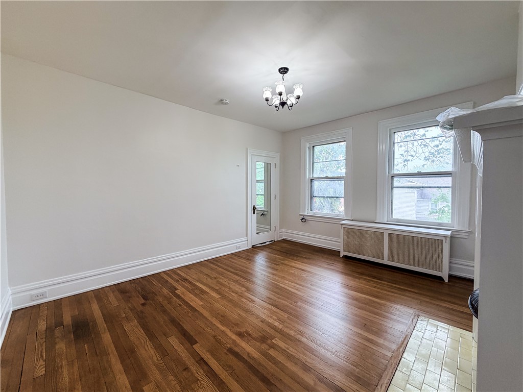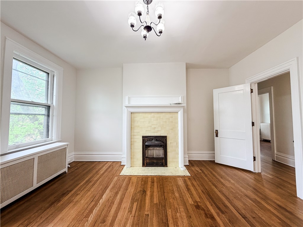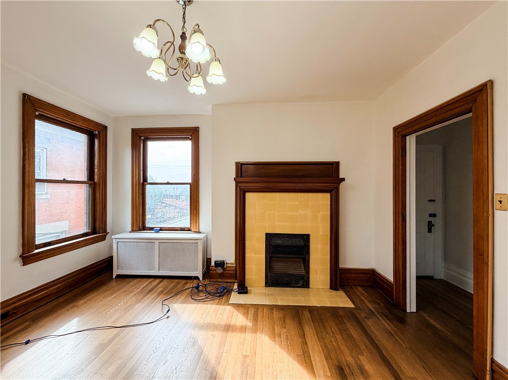 Don't miss this beautifully refreshed second-floor one-bedroom, one-bathroom apartment located in a character-filled quadplex perched atop a hill. This inviting unit has been completely repainted and features recently restored hardwood floors, creating a bright, clean, and welcoming living space ready for its next tenant. All utilities are included in the rent, offering exceptional value and simplified monthly living. Approaching the property, you'll be greeted by concrete steps leading to an expansive front porch, available for use by all residents - perfect for relaxing and enjoying the elevated views. Inside the unit, you'll immediately notice the tall ceilings and fresh neutral paint that enhance the open, airy feel throughout. To the right of the entry, the living room features large windows that fill the space with natural light, along with a decorative fireplace that adds warmth and character. The bedroom offers similarly tall windows, fresh paint, and another decorative fireplace, creating a cozy yet spacious retreat. The bathroom includes a soaker tub and a beautiful stained glass window, adding charm and unique detail. The kitchen provides access to a small private porch, reserved exclusively for this unit - perfect for enjoying morning coffee or fresh air. Additional highlights include a private rear entrance leading directly to off-street parking behind the building, offering convenience and added privacy. This distinctive unit combines historic charm, fresh updates, and unmatched convenience with utilities included, all ready for immediate occupancy. Schedule your showing today - this beautiful unit won't last long!