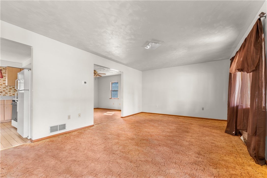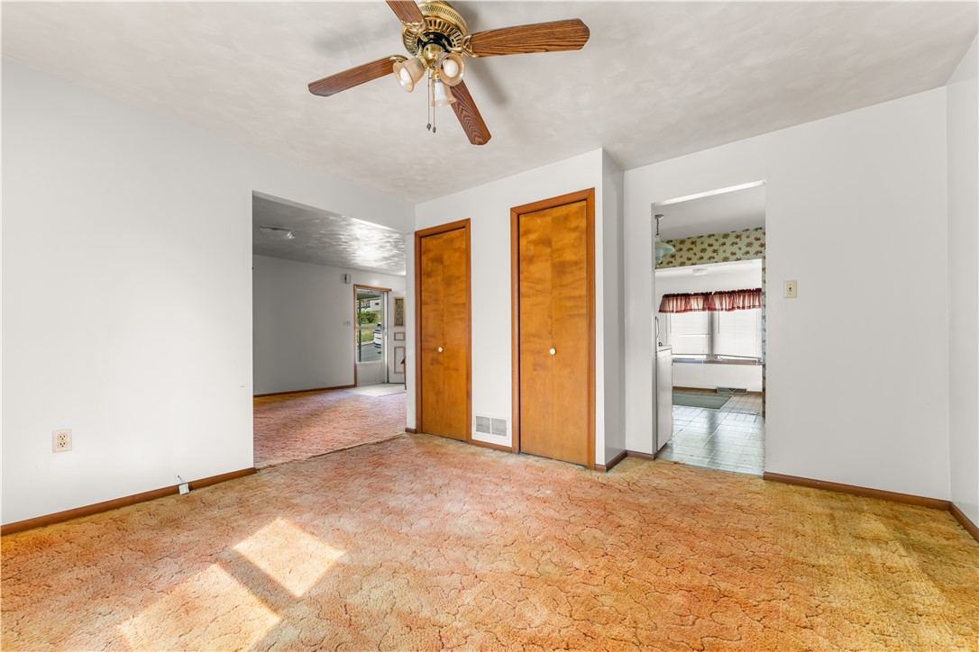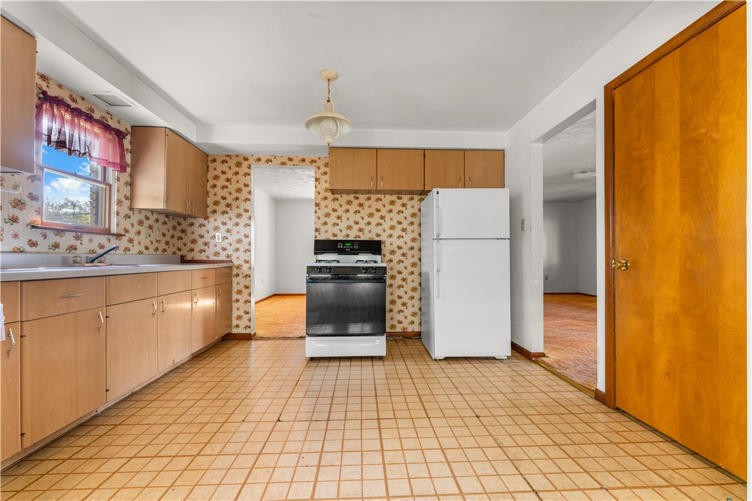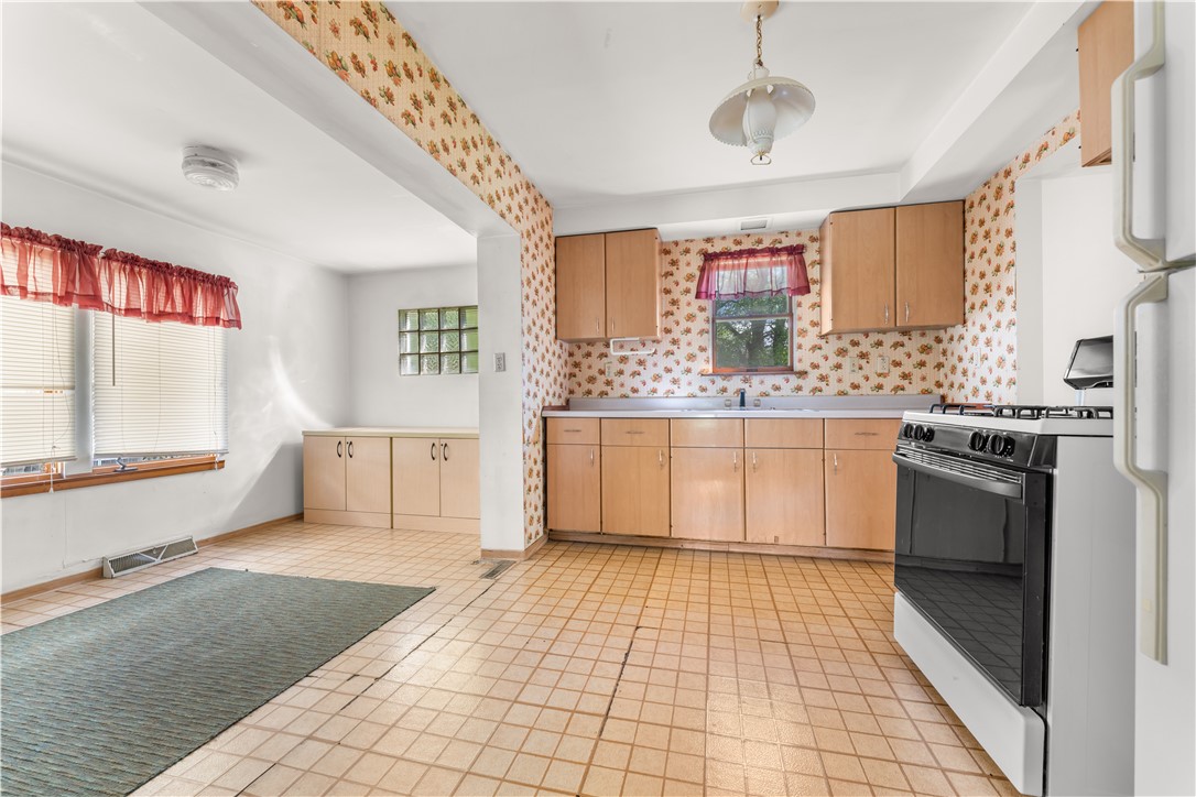 Great Opportunity. Kitchen features a gas stove and a refrigerator. Cute Breakfast nook off the kitchen with a built-in buffet and door to the outdoors. Place your grill right outside the door. Large Living Room and Dining Room Space. Three Full baths. A 2 Car Detached garage with full storage above the garage. Water heater and furnace were replaced in 2025. Make this home your own!