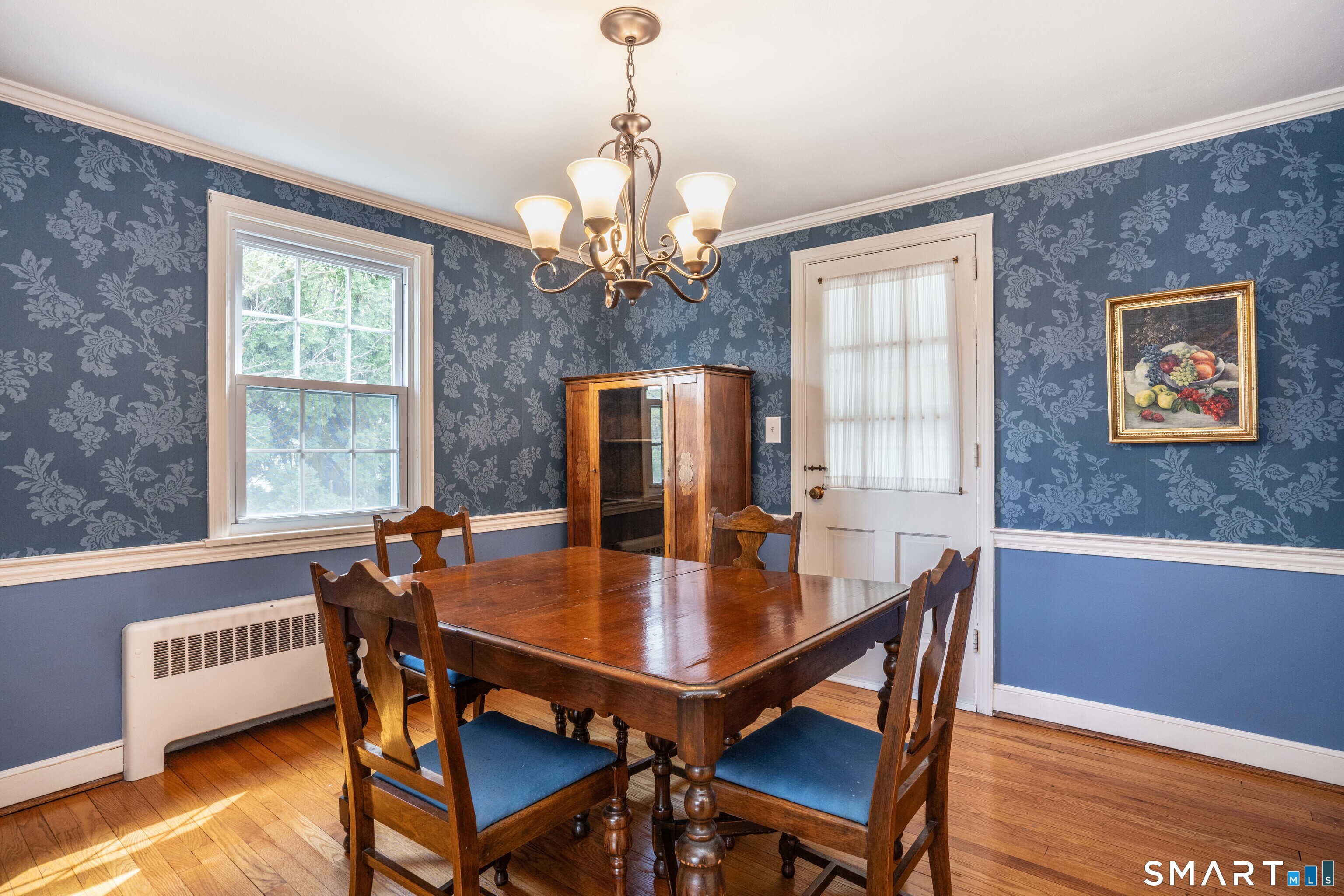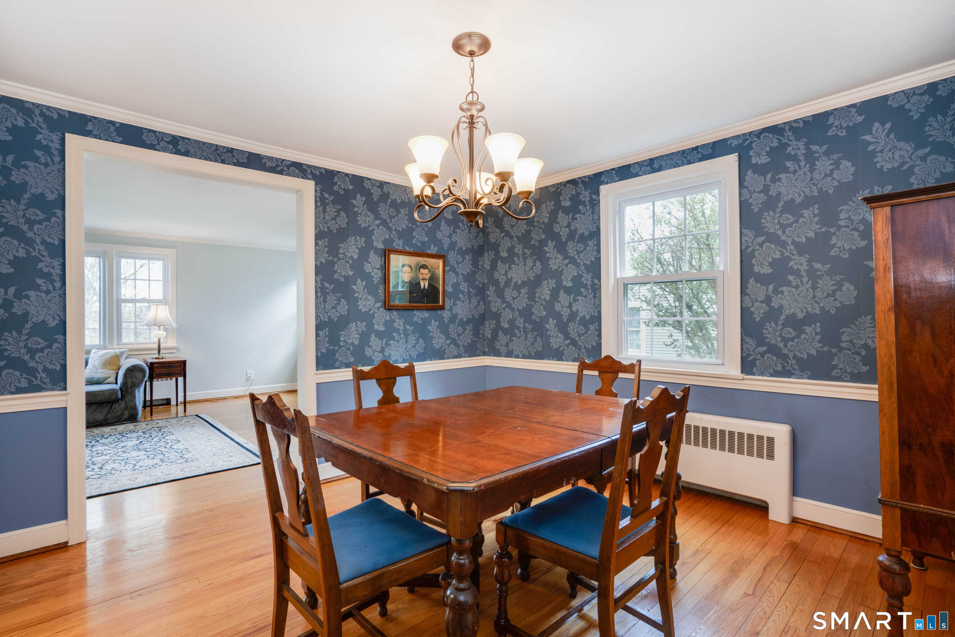 Welcome to 49 Foxridge! This charming 4-bedroom, 2-bath Cape offers great space in a highly sought-after neighborhood. Step into the foyer and into the spacious formal living room, where a wood-burning fireplace serves as the focal point. A beautiful picture window brings in plenty of natural light and overlooks the front yard, with views of Rockledge Golf Course across the street. Refinished hardwood floors run throughout the home, adding to its charm and character. The formal dining room provides plenty of space for a full dining set and additional furniture, and offers direct access to a wonderful screened-in porch- perfect for summer nights. It also flows easily into the eat-in kitchen, which features ample cabinet and counter space along with room for casual dining set. The main level includes two bedrooms (one currently used as a den) and a nicely updated full bath. Upstairs, you'll find two additional spacious bedrooms, including the owner's suite with two large closets and there is another full bath in the hall. The finished basement adds valuable extra living space along with plenty of storage. Additional highlights include a Buderus gas boiler, replacement windows, a private yard, and a one-car garage. A must see!