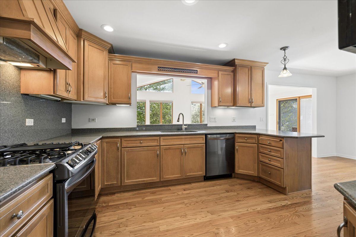 A rare find in North Hoffman.. A Raised ranch with a large addition that gives you way more space than the exterior lets on. The addition lets in wonderful light, and is the perfect addition to what normally is a very small footprint. Upstairs is three bedrooms, a full bath, an updated kitchen with separate dining space, hardwood floors, and an exit out to the backyard. The downstairs portion of the addition gives the possibility of a main level bedroom, with a walk in closet. This space can also be used as an office, a play room, or just a nice separate TV room. The entire house has been painted, new carpet, new fans, a refreshed ground floor bathroom. The house sits on a corner lot that looks over the lake and South Ridge Park. The above-ground pool has a full deck built around it with it's own fence, for security and functionality. The side yard is perfect for sports or garden beds, tons of potential over there. Walk to Whiteley Elementary, and attends Thomas Jefferson Middle School and Fremd High School.