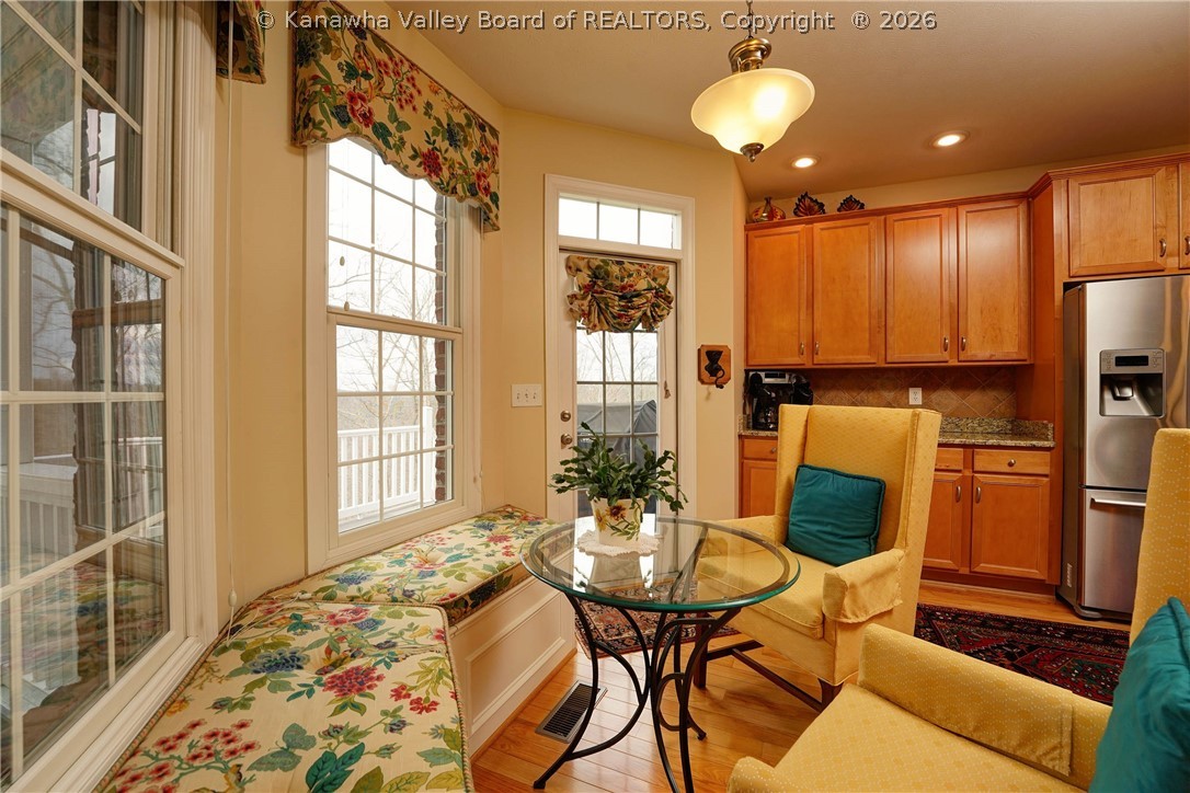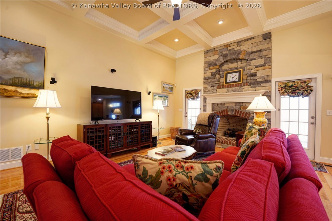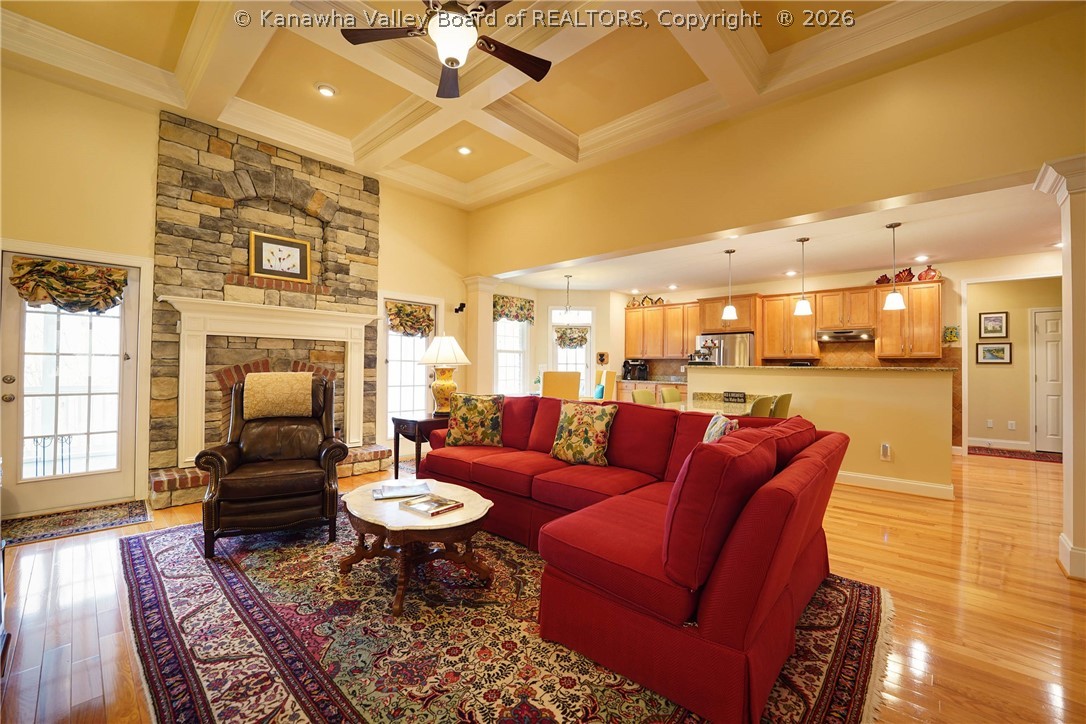 Coming to market for the very first time in The Ridges, South Charleston's premier gated community just off Corridor G and moments to Southridge shopping + dining. This beautifully custom-built, all-brick residence offers over 5,000 square feet of thoughtfully designed living space with 6 bedrooms and 5baths. From the moment you step inside, you'll notice impeccable craftsmanship with coffered ceilings, a modern kitchen, and built-in dining seating that flows seamlessly to a screened upper deck with sweeping sunset views over the Appalachian Mountains. Enjoy the ease of main-level living, plus a full basement suite that truly lives like its own retreat, complete with an extended deck, fireplace, wet bar, and more. A Generac generator adds peace of mind, while abundant storage and a private, exclusive street of just four homes make this offering even more special. Meticulously maintained and thoughtfully designed, this is a rare opportunity you don't want to miss
