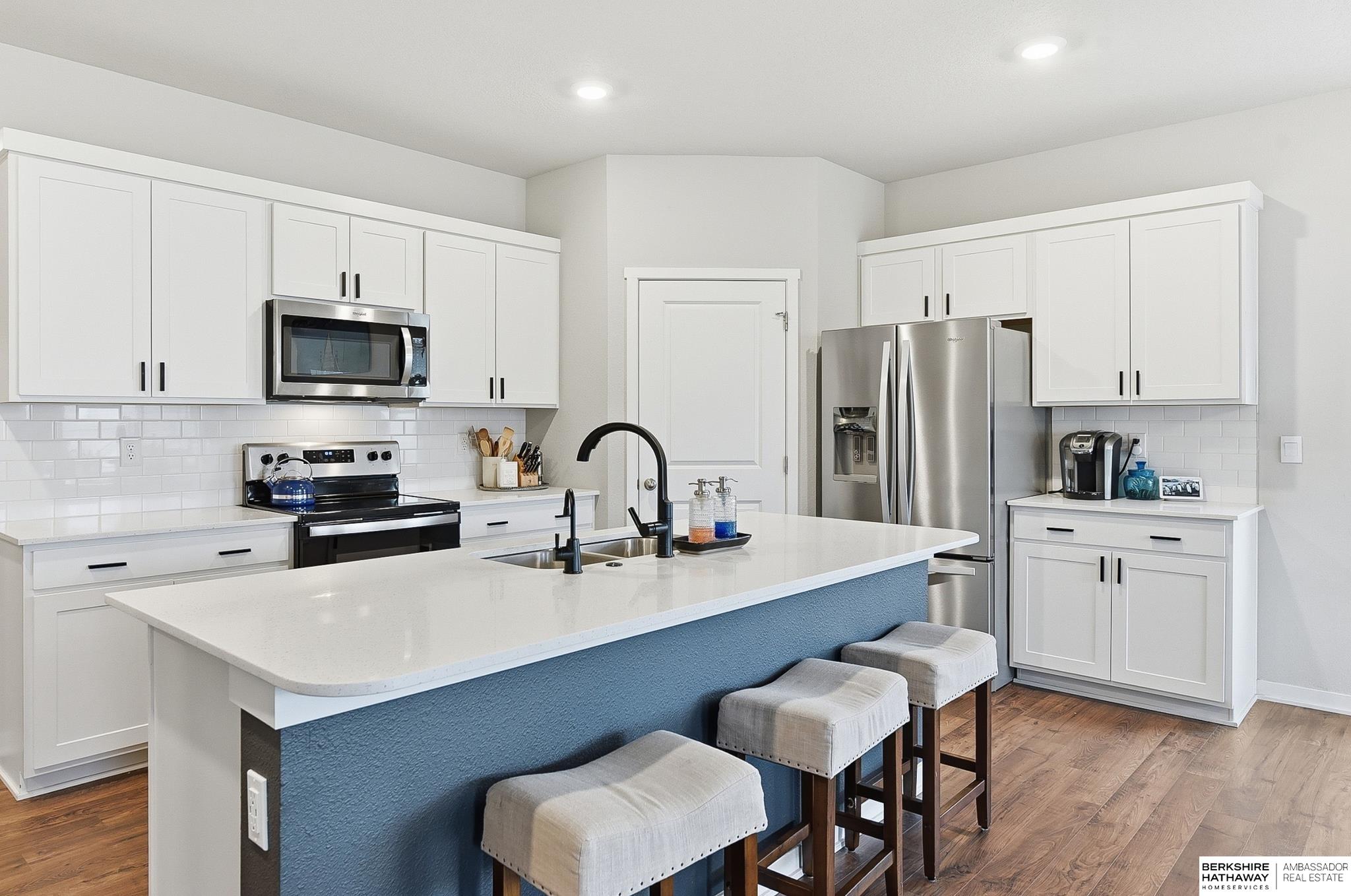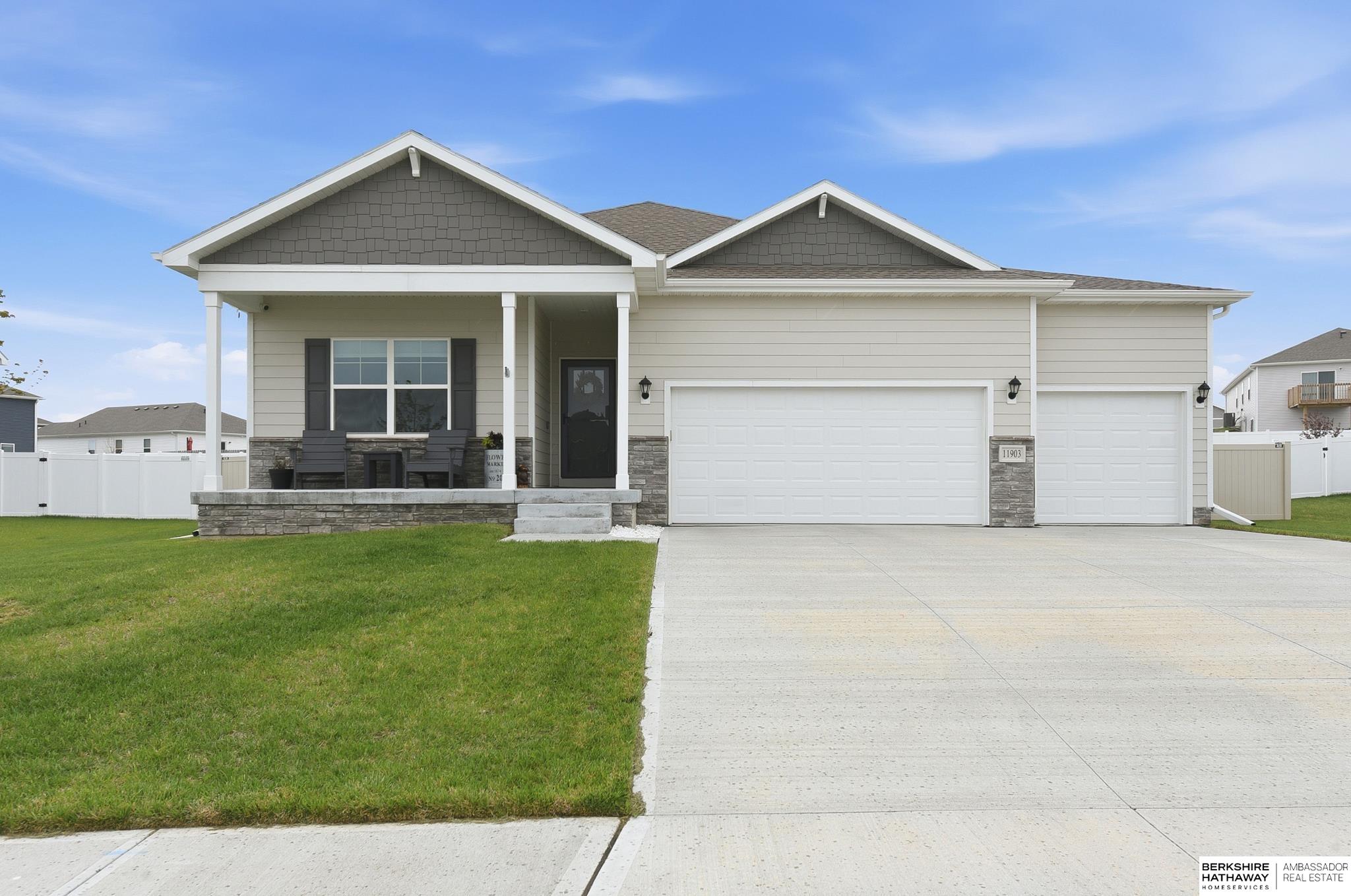 Welcome to 11903 S 117th Street in Papillion's sought-after Belterra neighborhood, located within the highly desired Papillion-La Vista School District! This 4 bed, 3 bath home offers a rare 3-car garage and an open, light-filled layout with engineered wood flooring throughout the main living areas for easy maintenance. The kitchen features a large center island, quartz countertops, beautiful cabinetry, appliances, and a corner pantry. Two spacious bedrooms are positioned at the front, while the private primary suite is tucked in the back with a walk-in closet and luxurious bath. Downstairs you'll find a huge rec room and additional bedroom with walk-in closet and full bathroom. Step outside to a spacious patio and massive flat backyard - perfect for entertaining, relaxing, or play. Skip the wait to build with this better than new home ready for you!