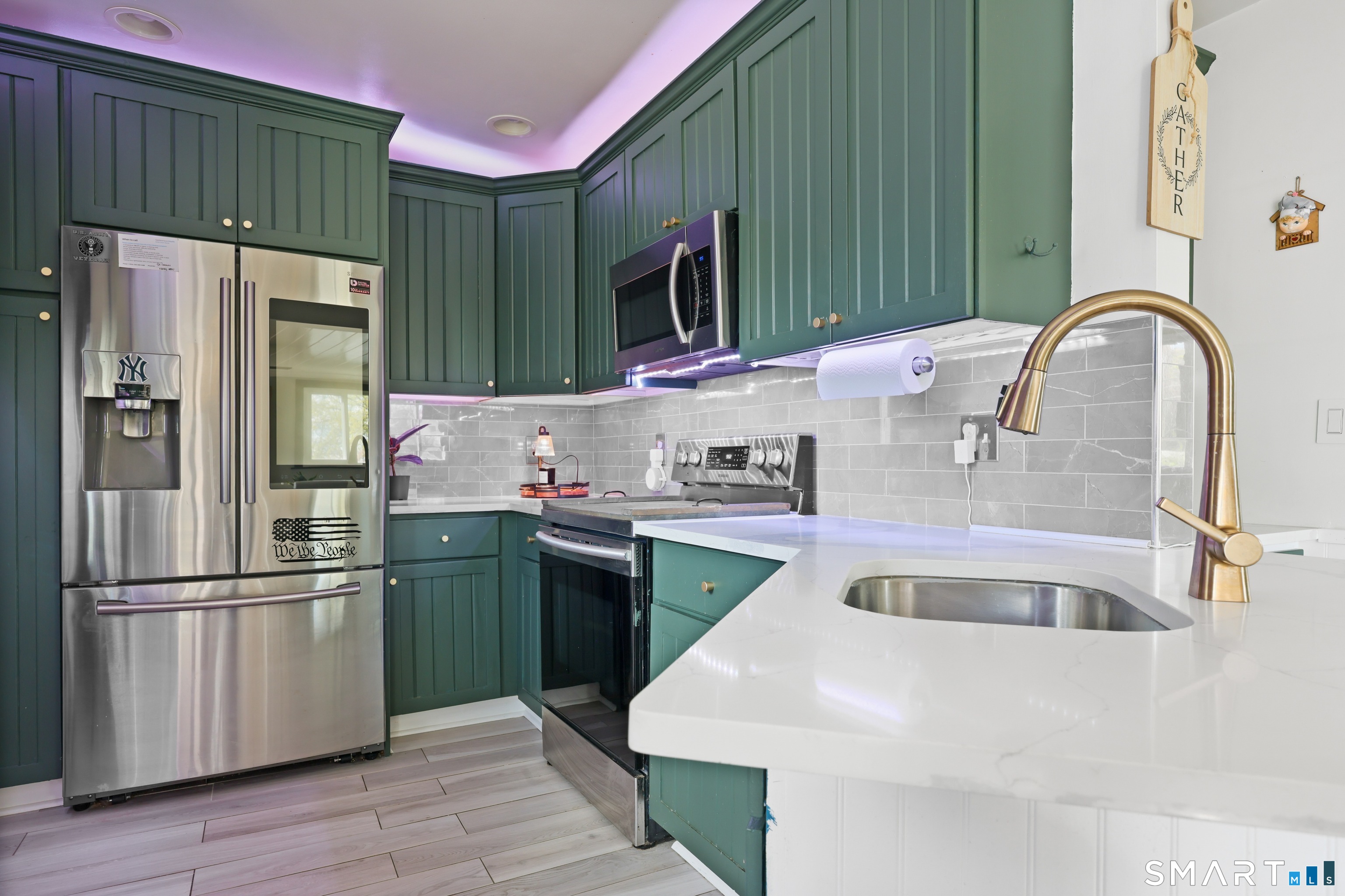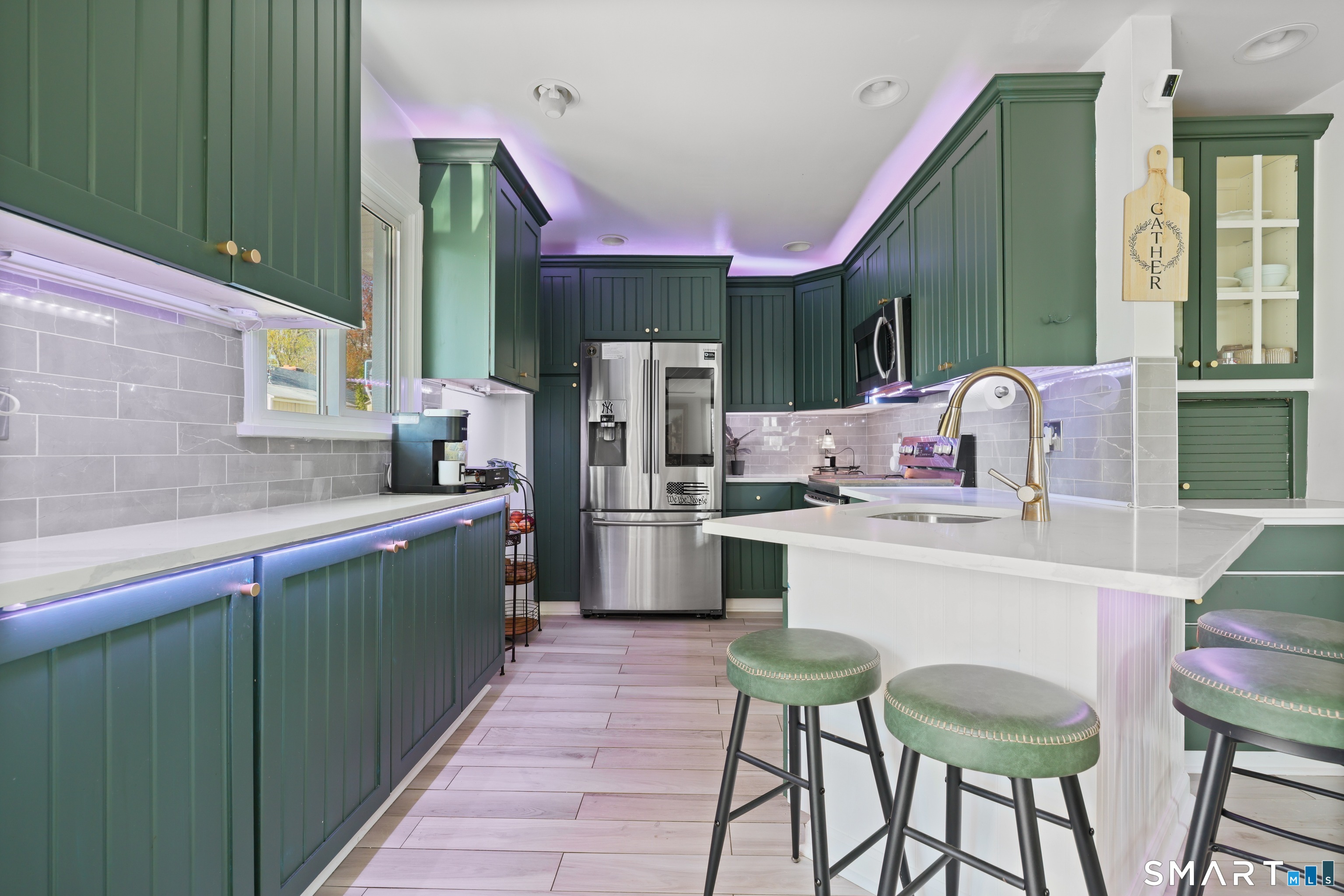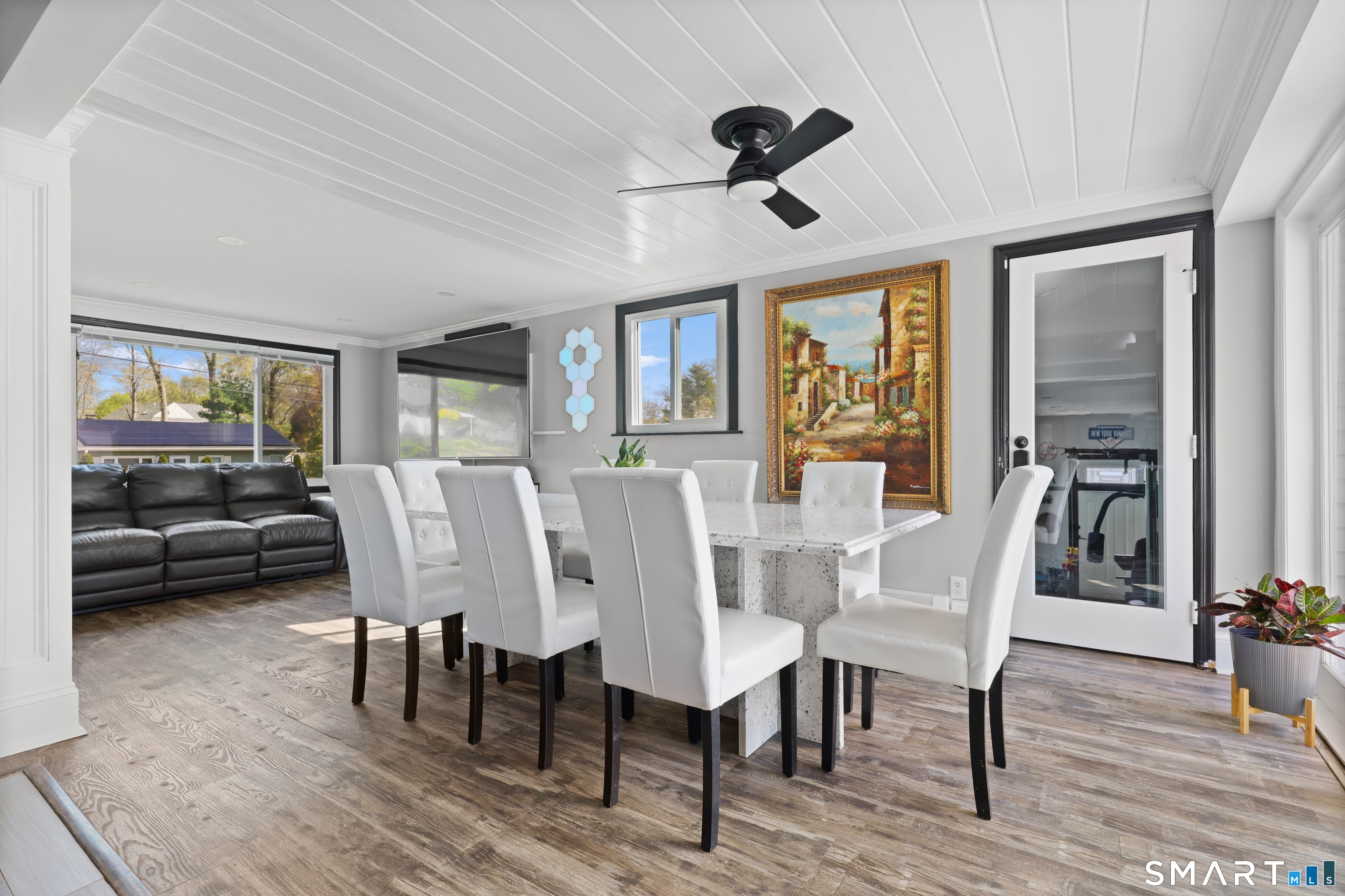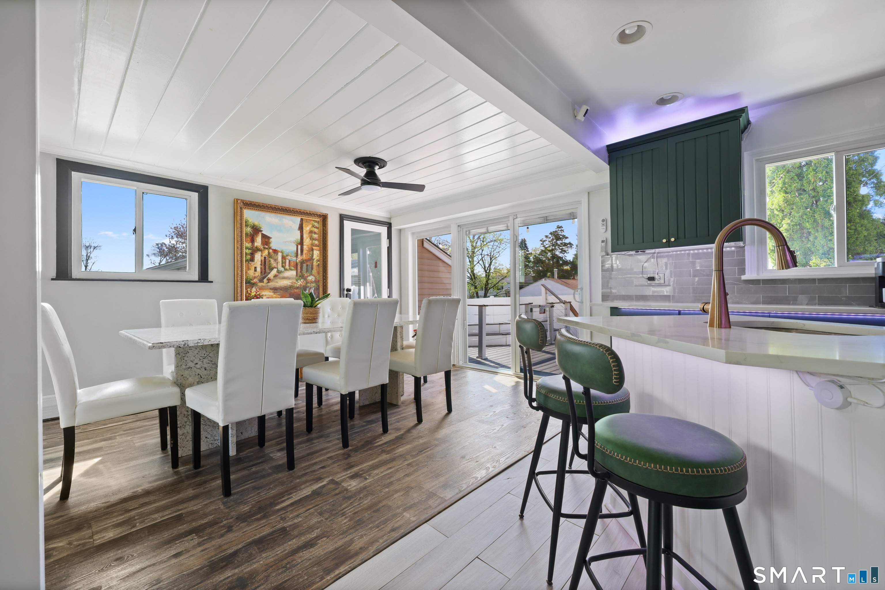 Renovated 4-bedroom, 2-bathroom expanded Cape in Springdale, Stamford, Connecticut. This 1,944-square-foot home features an open floor plan with a fully updated kitchen, quartz countertops, stainless steel appliances, and tile flooring. A dining area with a detailed architectural ceiling connects to the main living space, offering seamless flow for everyday living and entertaining. The primary bedroom includes a vaulted ceiling, creating an airy, spacious retreat. Both full bathrooms have been updated with modern finishes. A dedicated bonus room on the main level provides flexible space - ideal as a home office, gym, or studio. The rear of the home opens directly to a deck and patio - a true flat entertaining space. This home sits near the Springdale Metro-North train station, offering a quick commute to Grand Central. Near local shops and restaurants, with easy access to the Merritt Parkway and I-95. A move-in-ready, updated home with flexible space and a commuter-friendly location.