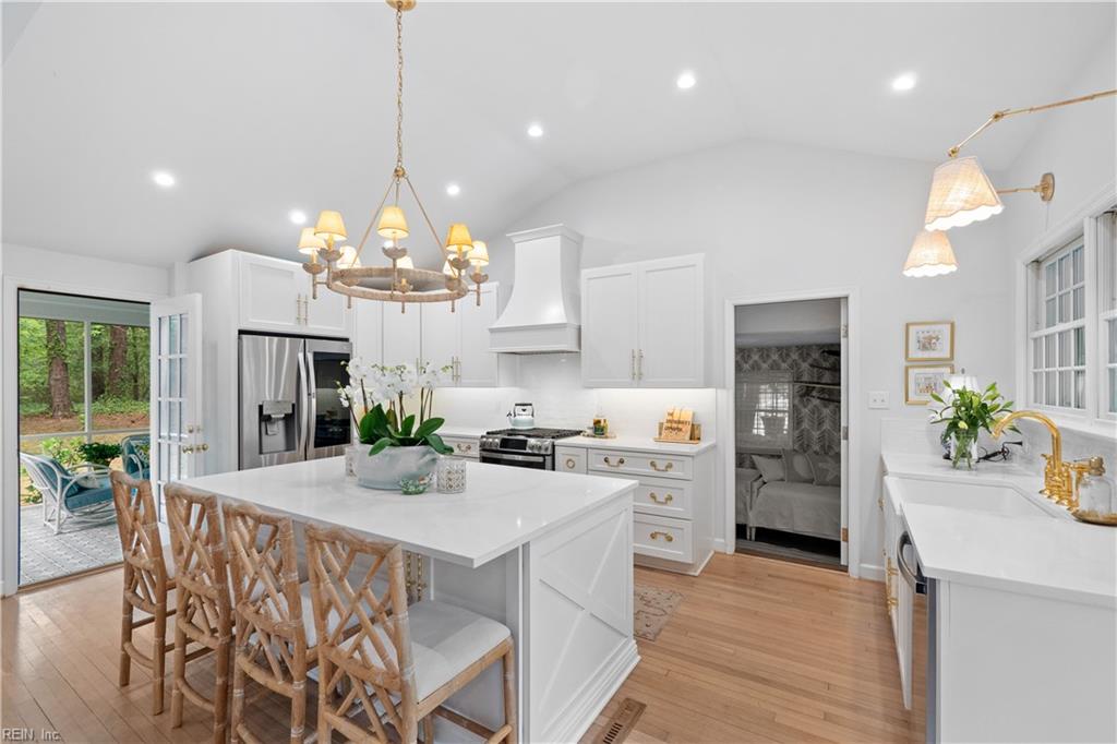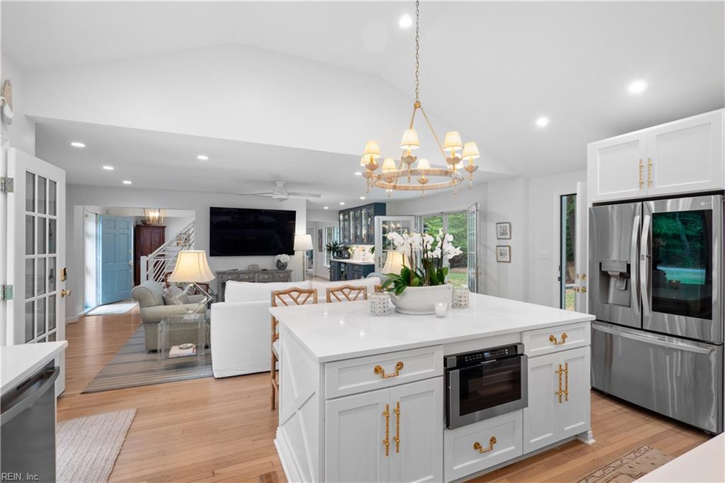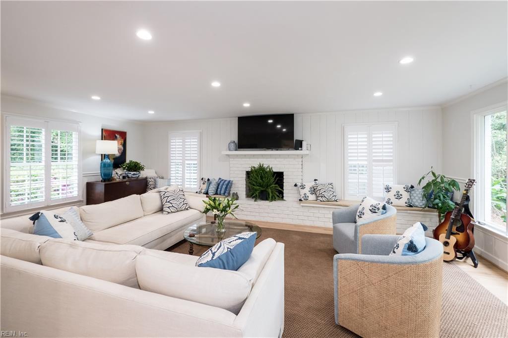 Classic elegance and endless style meet in this stunning four-bedroom, two-and-a-half-bath home offering timeless charm and natural seclusion in Princess Anne Hills. Set on a generous lot backing directly to First Landing State park and just four blocks from the ocean. The renovated kitchen impresses with a cathedral ceiling and large island, flowing seamlessly into the family room and built-in bar. The dining room and great room with gas fireplace create effortless spaces for entertaining and everyday living. Upstairs, four bedrooms, two renovated bathrooms, and a private study. Step outside to a screened porch with painted floor and fireplace overlooking a brick patio and private backyard framed by the park. Classic curb appeal and ample parking. Princess Anne Hills living at its very best.