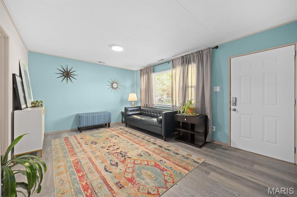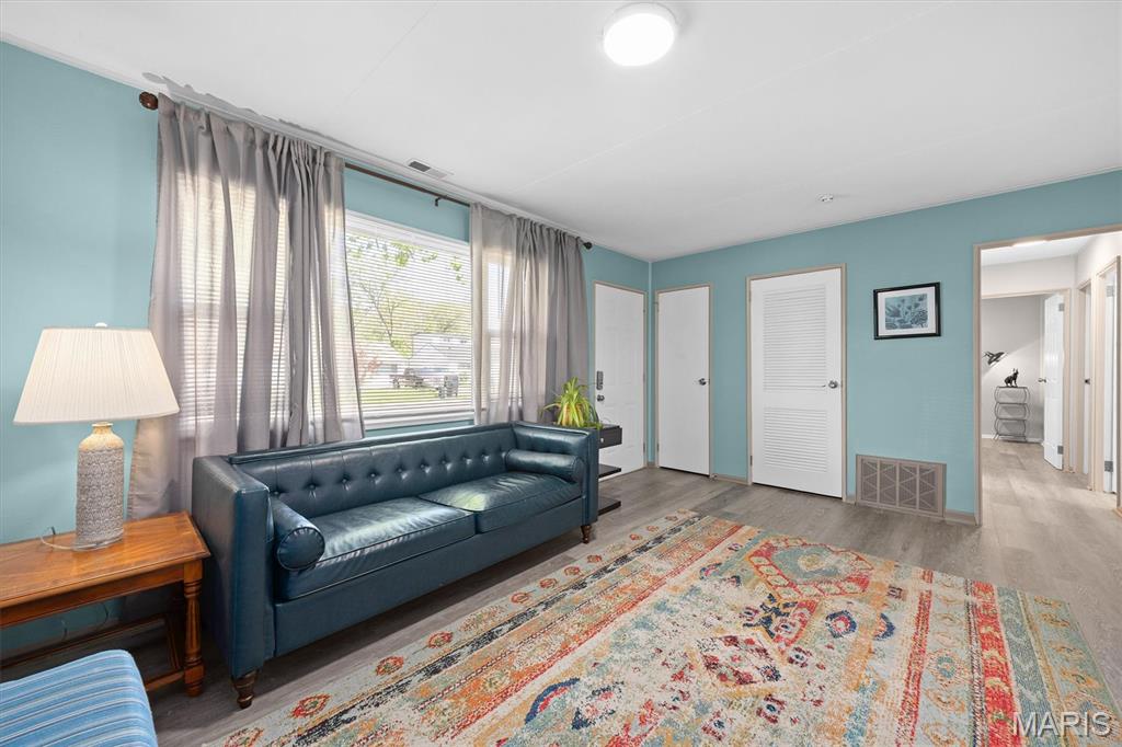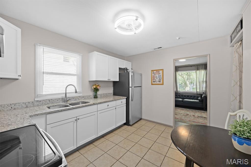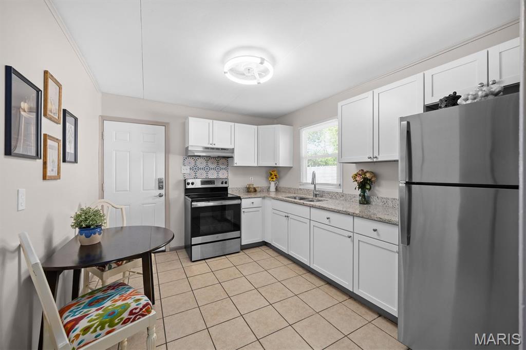 SHOWINGS START SATURDAY, APRIL 25, 2026. Welcome to the cutest little starter home to hit the market - cute as a button and truly move-in ready! This 3-bedroom, 1-bath ranch offers easy, low-maintenance living all on one level and is a perfect opportunity for first-time buyers or investors alike. Refreshed curb appeal enhances the charm and complements the home's sleek retro-modern vibe as you enter into the naturally lit living room, which flows seamlessly into an efficient eat-in kitchen featuring granite countertops and stainless-steel appliances. Just off the kitchen is a convenient laundry and pantry area with washer and dryer included - completing the appliance package. The refreshed full bathroom and three well-appointed bedrooms complete the main level. Exit outside to a partially fenced backyard that offers a balance of privacy and openness, along with the convenience of an additional storage area with its own entrance. Conveniently located near shopping, city park, Memorial Hospital, Highways 15 & 161, and just 20 minutes to downtown St. Louis. Well maintained, easy to own, and ready for immediate occupancy - don't miss this one!