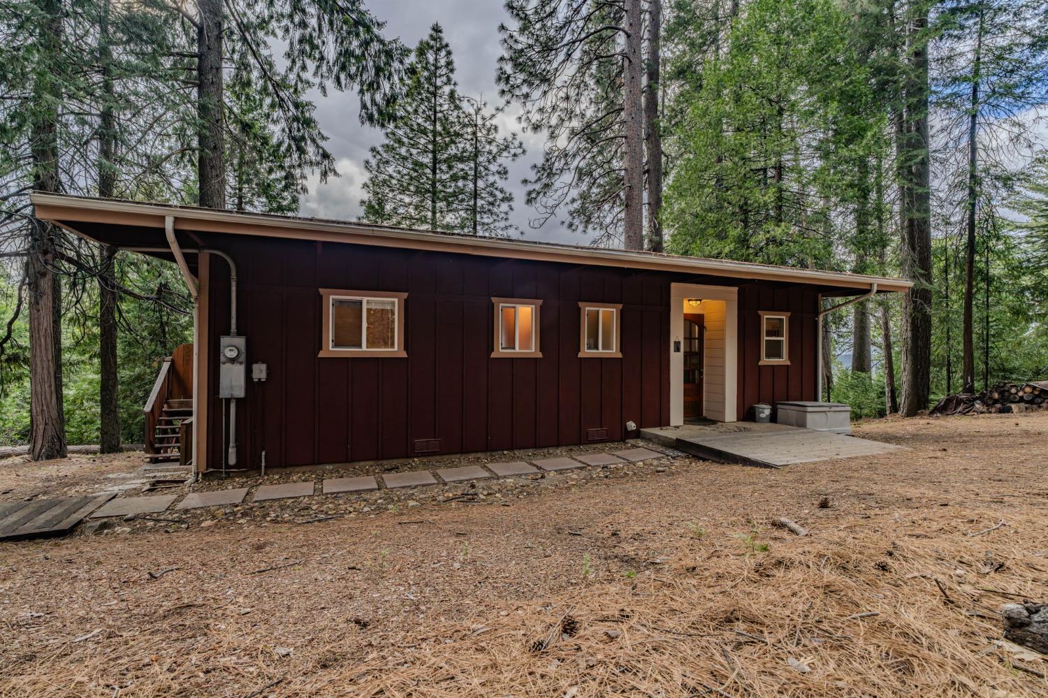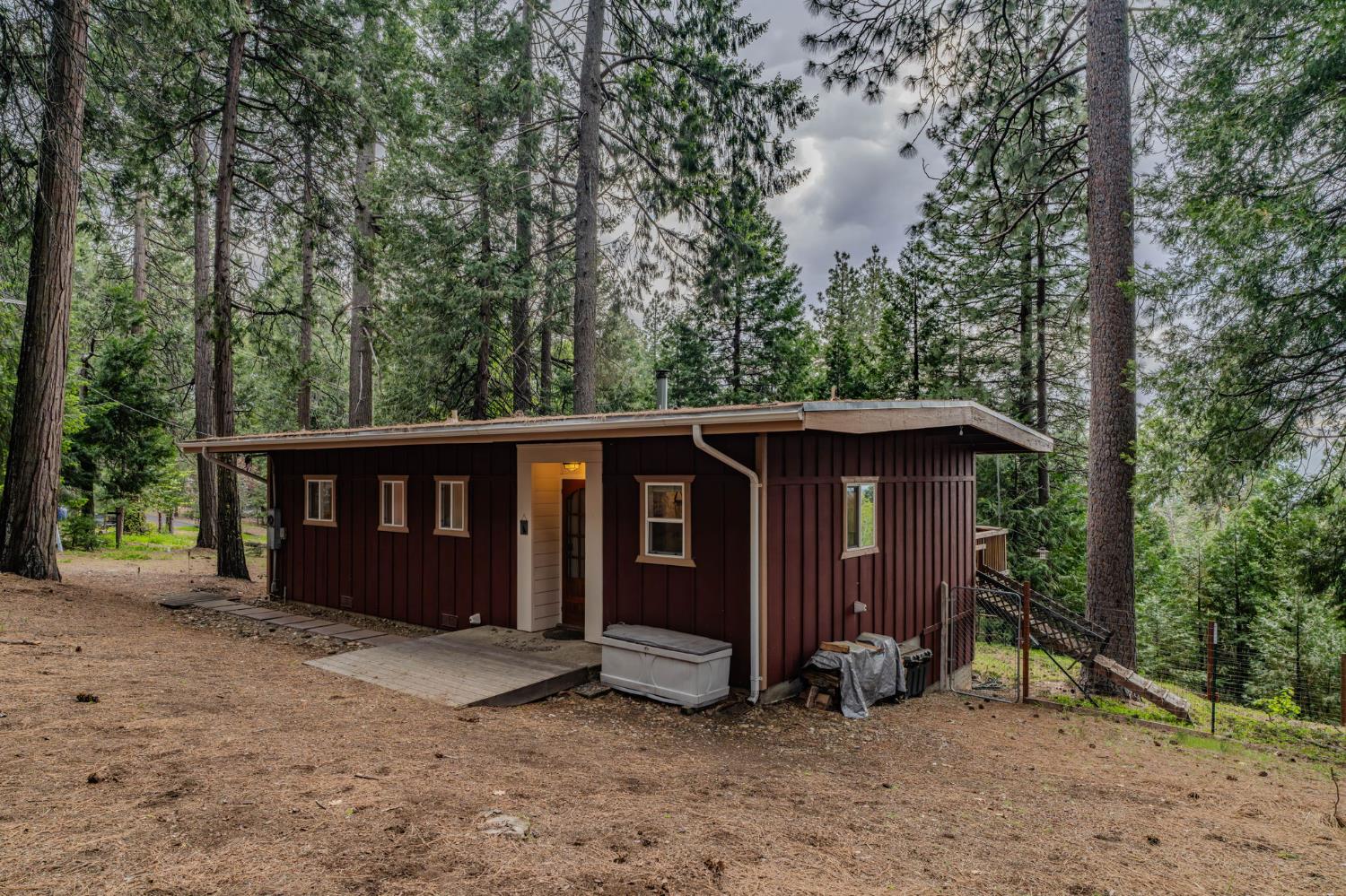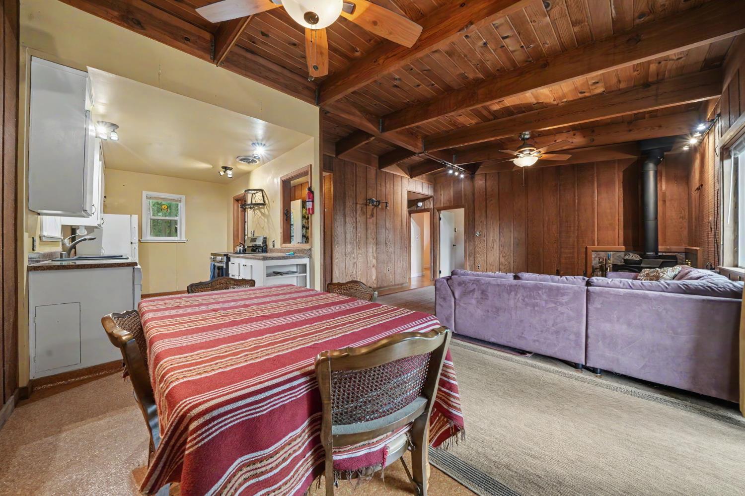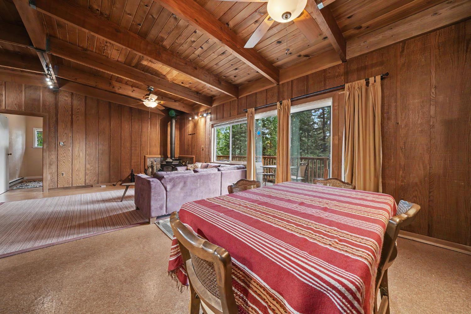 Cabin-style setting 1.18 usable acres Wraparound deck Wood stove Well + septic Approx. 40 min to Kirkwood Ski Resort Approx. 90 min to Sacramento Set in the pines of Amador County, 21016 Sierra Circle Dr offers a mountain retreat with a cottage feel, usable land, and a layout that makes the most of its 949 sq ft. This 2-bedroom, 1-bath home features exposed wood-beam ceilings, a warm living area anchored by a wood stove, and an open living and dining flow. The wraparound deck extends the living space outdoors and captures a peaceful treed outlook, creating an easy spot for morning coffee, weekend gatherings, or a quiet evening in the fresh mountain air. The 1.18-acre parcel offers room to enjoy the setting, garden, spread out, or simply appreciate the extra outdoor space. Well and septic add practical value to the property, while the cabin-inspired design gives the home a comfortable, tucked-away feel. Whether you are looking for a full-time residence, a weekend basecamp, or a Sierra getaway, this Pioneer property puts you within approximately 40 minutes of Kirkwood Ski Resort and about 90 minutes of Sacramento.