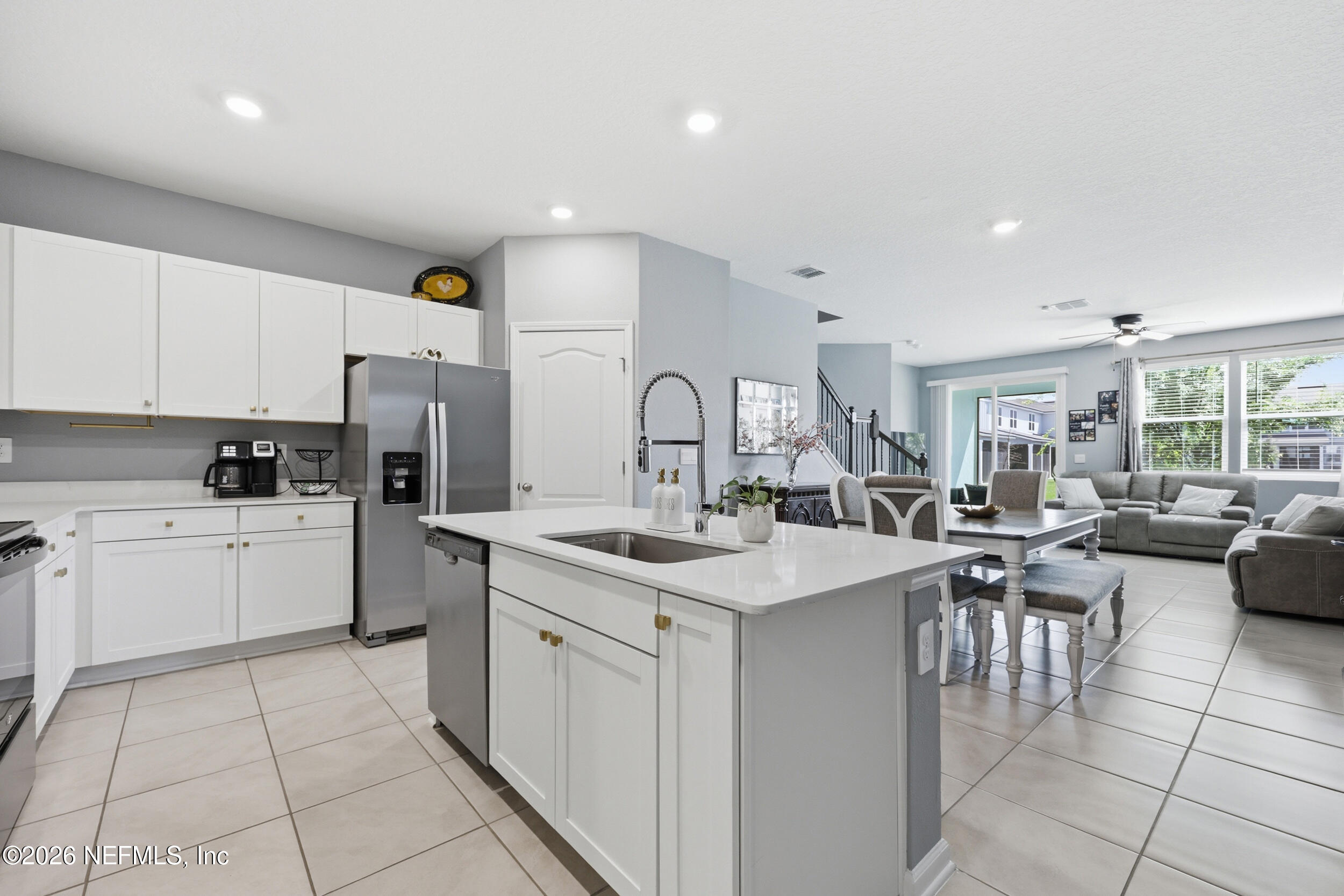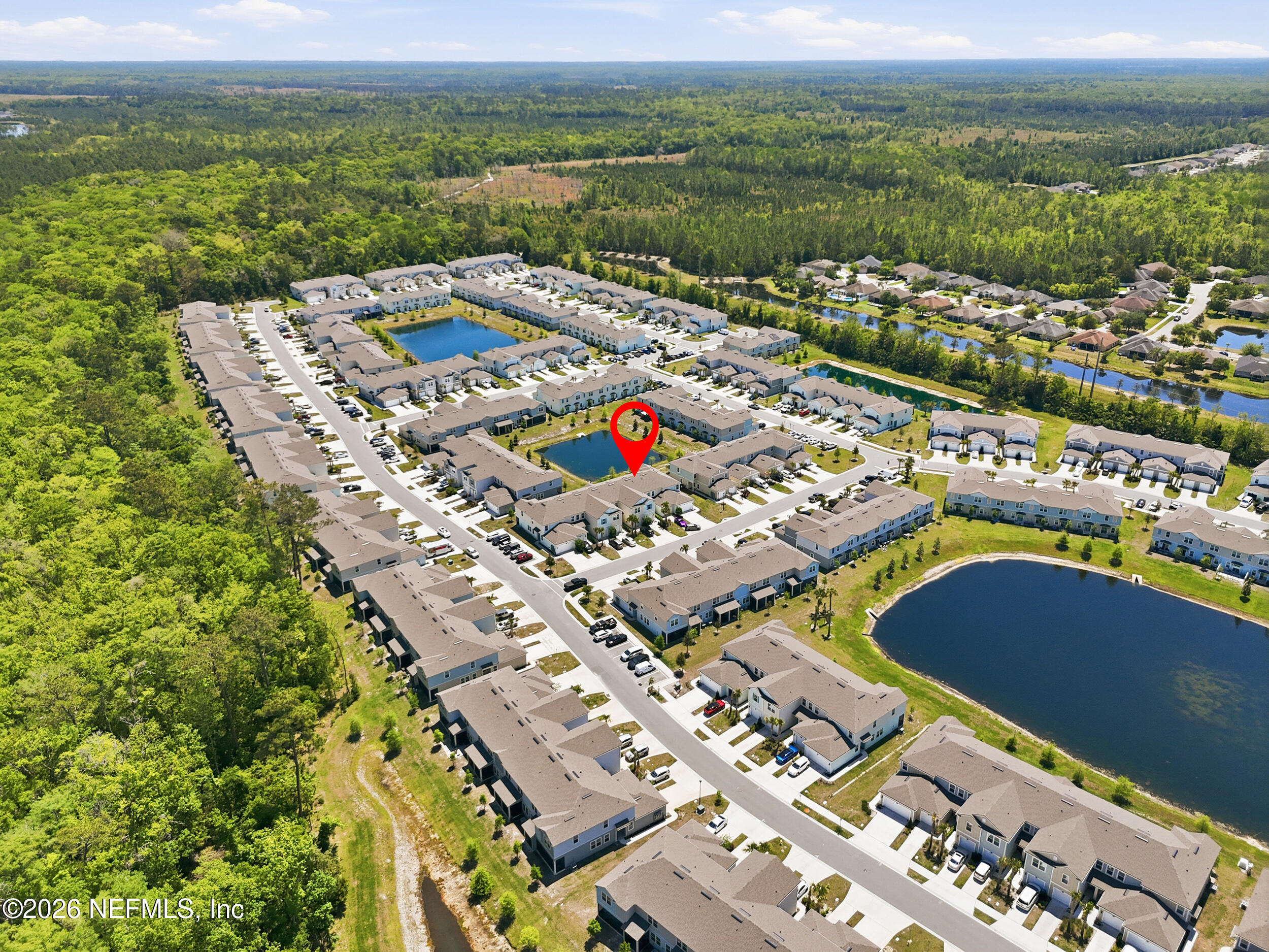Tucked inside Bridgewater, this nearly new 2024 home offers the ease of modern living without the wait to build! Step inside to soaring 12 ft ceilings and a bright, open layout centered around a beautifully finished kitchen with quartz countertops, stainless steel appliances, and upgraded gold accents. Mornings start with peaceful water views from the screened-in patio, thoughtful upgrades carry throughout, including upgraded interior paint, ceiling fans, blinds in every room, enhanced window security, and smart home features that put the front door lock, garage, thermostat, lighting, and video doorbell at your fingertips. Upstairs laundry adds everyday convenience, with a half bath downstairs for guests. Located just minutes from I-95, shopping, and dining, Bridgewater offers a low HOA and amenities including a pool, fitness center, dog park, playground, volleyball court, and scenic walking paths.