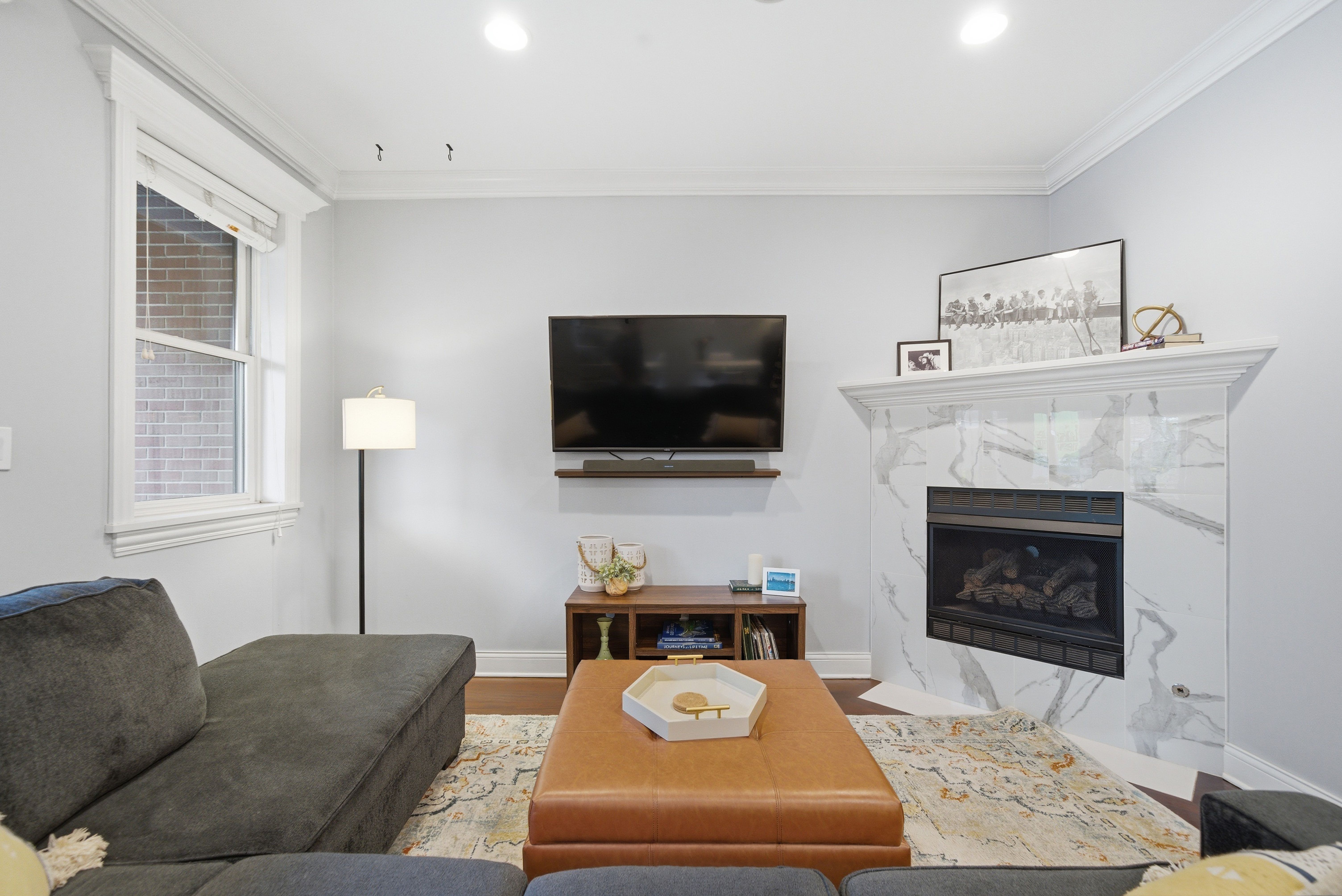 Located in the heart of Lakeview's highly desirable Southport Corridor, this extra-wide 2 bed / 2 bath condo stands out with two private outdoor spaces and exterior parking included. The wide floor plan offers larger room sizes and an open, comfortable flow with hardwood floors throughout, crown molding, and a spacious living area with fireplace plus room for dining. The kitchen is finished with white shaker cabinetry, quartz countertops, marble backsplash, and ample storage. The generous primary suite features a walk-in closet and oversized bathroom with double vanity, soaking tub, heated floors and separate steam shower. Enjoy outdoor living from the full-width front terrace or the rear deck off the primary suite. Unbeatable location just steps to Whole Foods Market, Target, Southport's shops and restaurants, parks, and easy transit access.