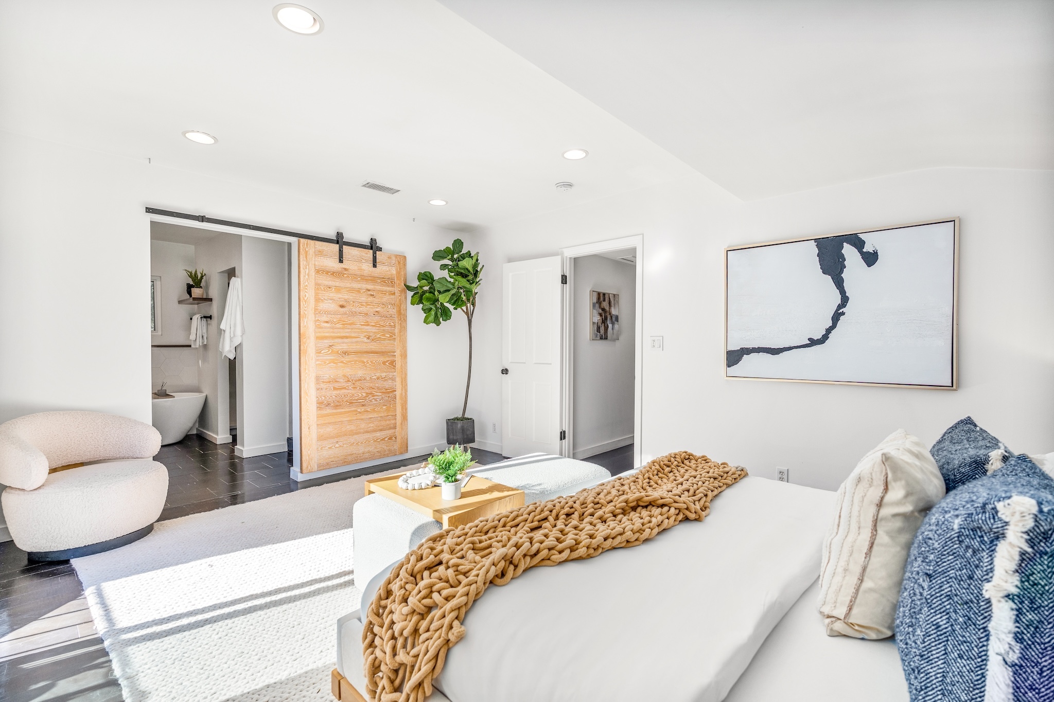This stunning, recently remodeled Contemporary home features a bright, open plan, high-end materials, and serene canyon views in one of the best locations in lower Nichols Canyon. Designer details include high-end fixtures, custom cabinetry, french doors, and hardwood floors throughout. Outdoor entertaining spaces include a newly constructed patio and lounge area with fire pit complemented by mature landscaping creating a private oasis. Master Bedroom features a rolling barn door and picturesque balcony, while the spa-like bathroom includes dual sinks, soaking tub, and rainfall glass shower. This well-appointed 3 bedroom home features a unique indoor-outdoor flow and is perfect for enjoying the best of the quintessential Southern California lifestyle. Property is also for sale.