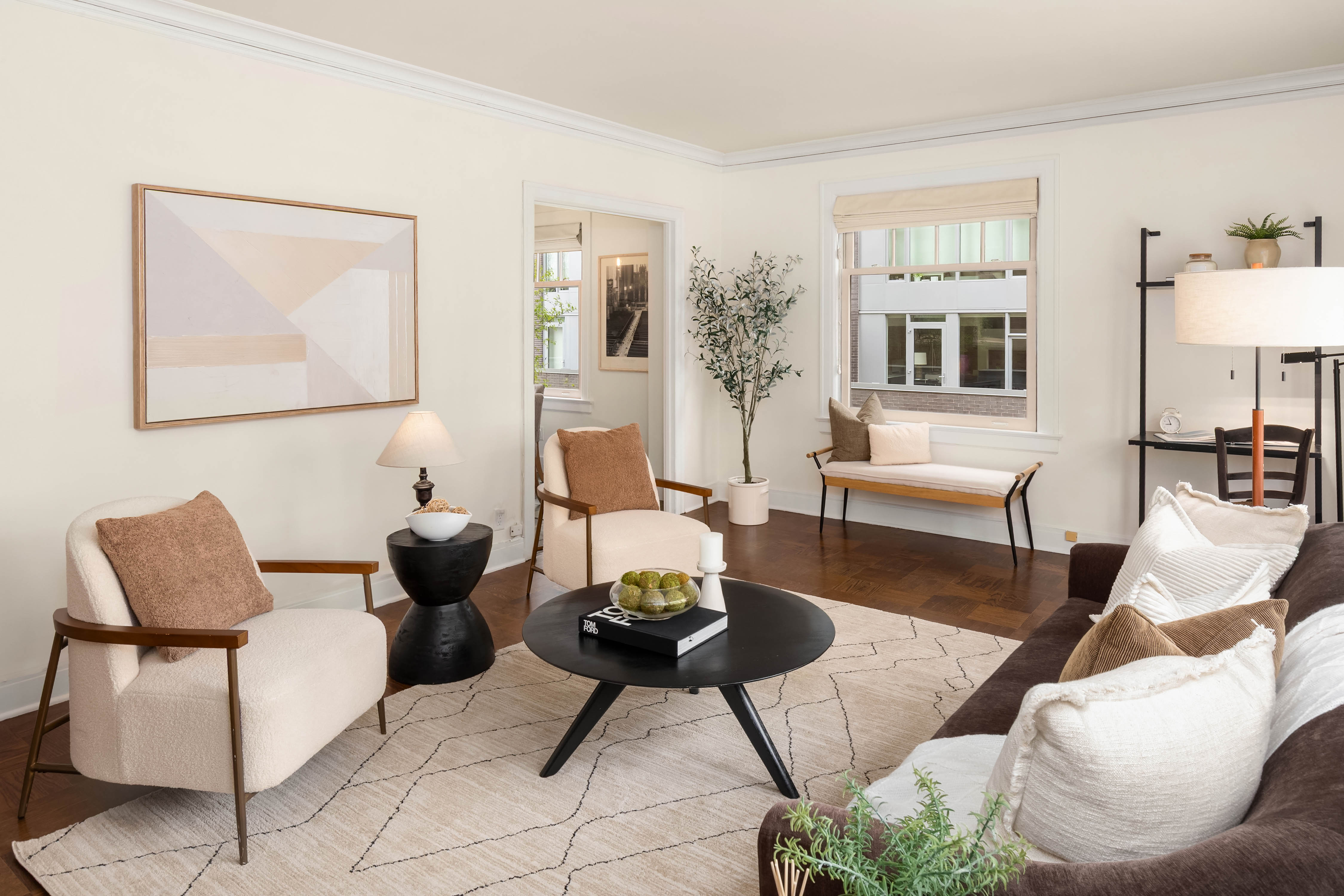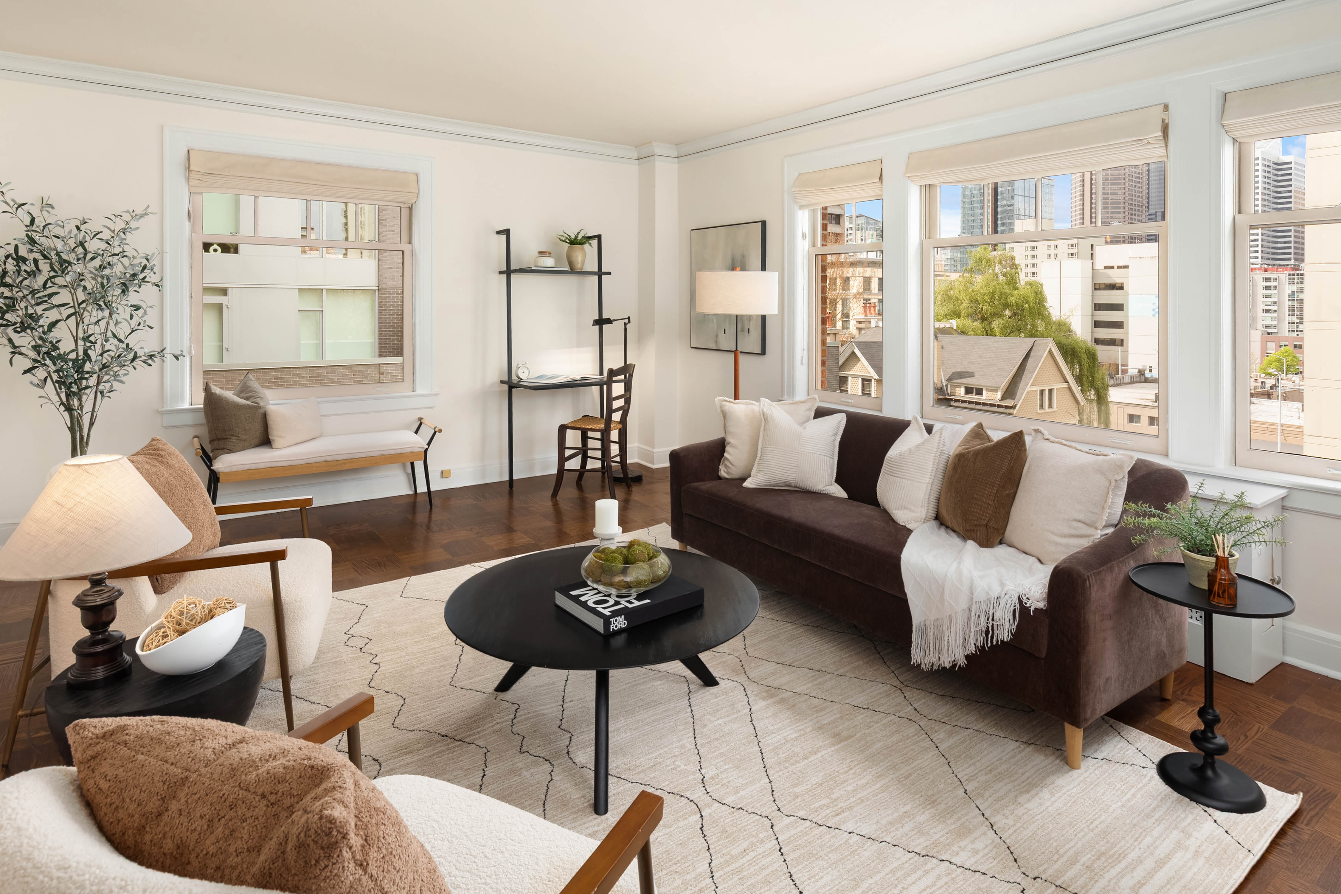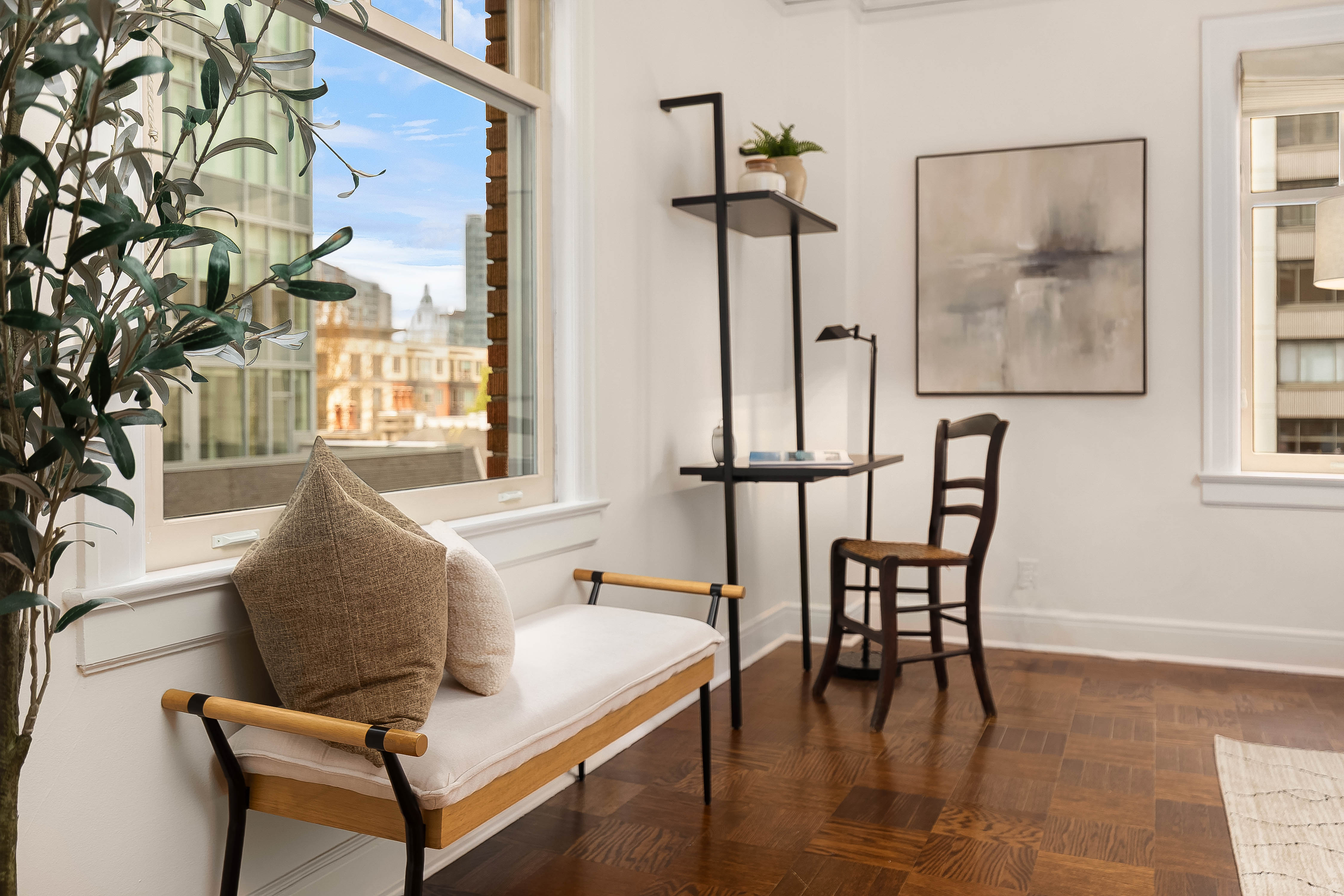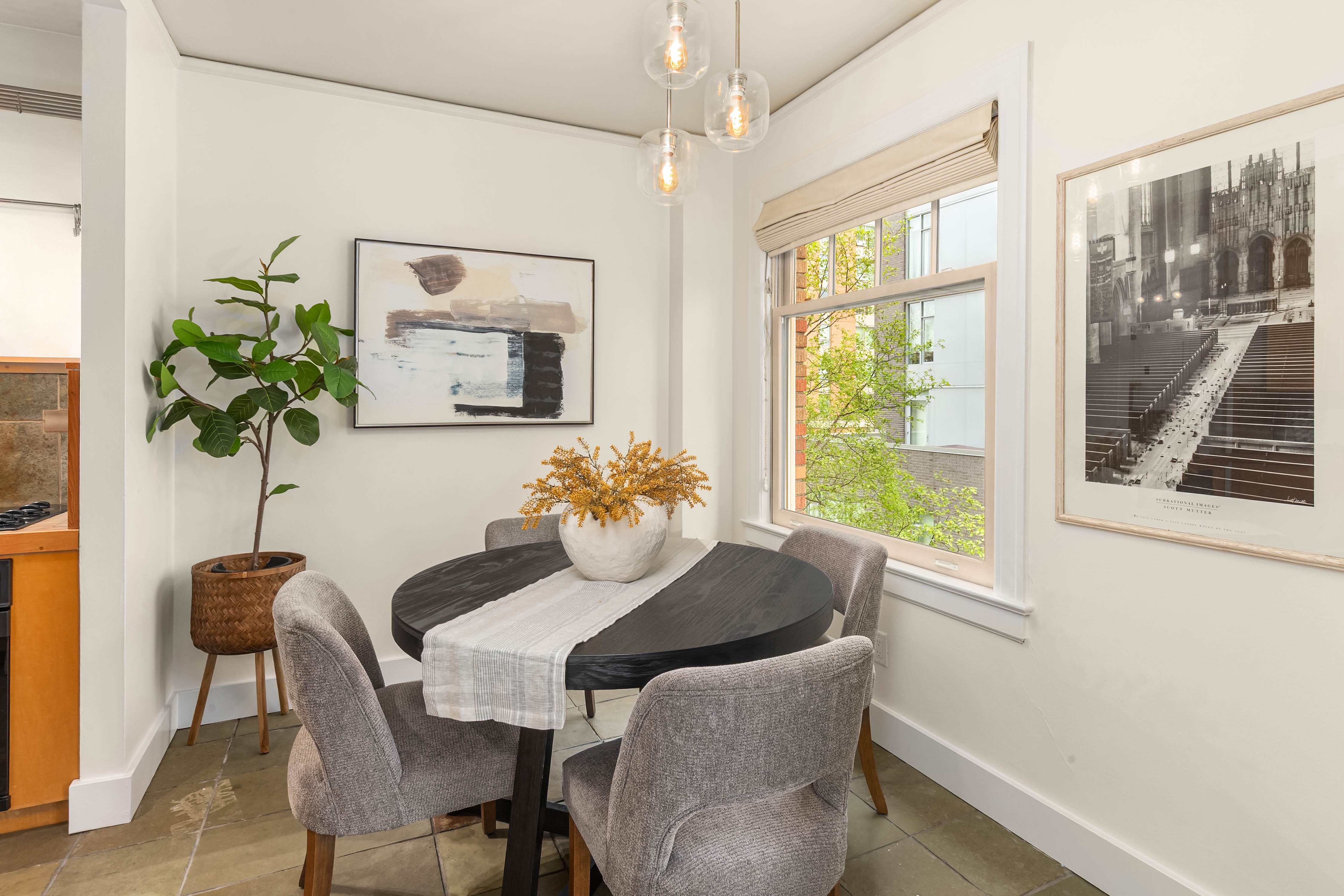 Step into timeless sophistication at The Gainsborough, an iconic residence where historic charm meets refined modern living. Rich in heritage with distinctive Art Deco character, this treasured landmark offers an elevated city lifestyle framed by elegance and authenticity. Bathed in natural light, this southwest-facing corner home showcases captivating city views, while the rooftop garden and patio unveil sweeping vistas of the city skyline, water views, and surrounding mountains. Inside, classic details blend seamlessly with thoughtful updates, including hardwood parquet floors, an updated kitchen and a formal dining room designed for memorable entertaining. Two generously sized bedrooms offer versatility for guests, a home office, or both, perfectly suited for today’s lifestyle. Everyday comforts are elevated with in-unit washer/dryer hookup in a separate storage room, secure garage parking, a dedicated mail room, and a stunning, impeccably maintained lobby that makes a lasting first impression. Constructed of solid concrete and steel, The Gainsborough exudes an old Hollywood ambiance while benefiting from significant modern upgrades, including a new roof, updated plumbing, and renovated elevators. The secure, elegant entry and well-managed building ensure both peace of mind and enduring value. Ideally located with a Walk Score of 98 and Transit Score of 99, you are just moments from premier dining, theaters, nightlife, and the best of vibrant city living.