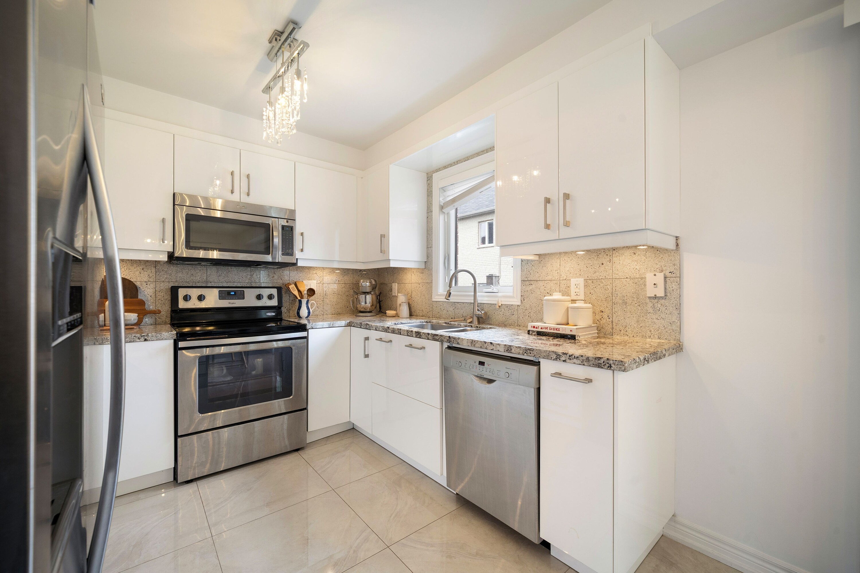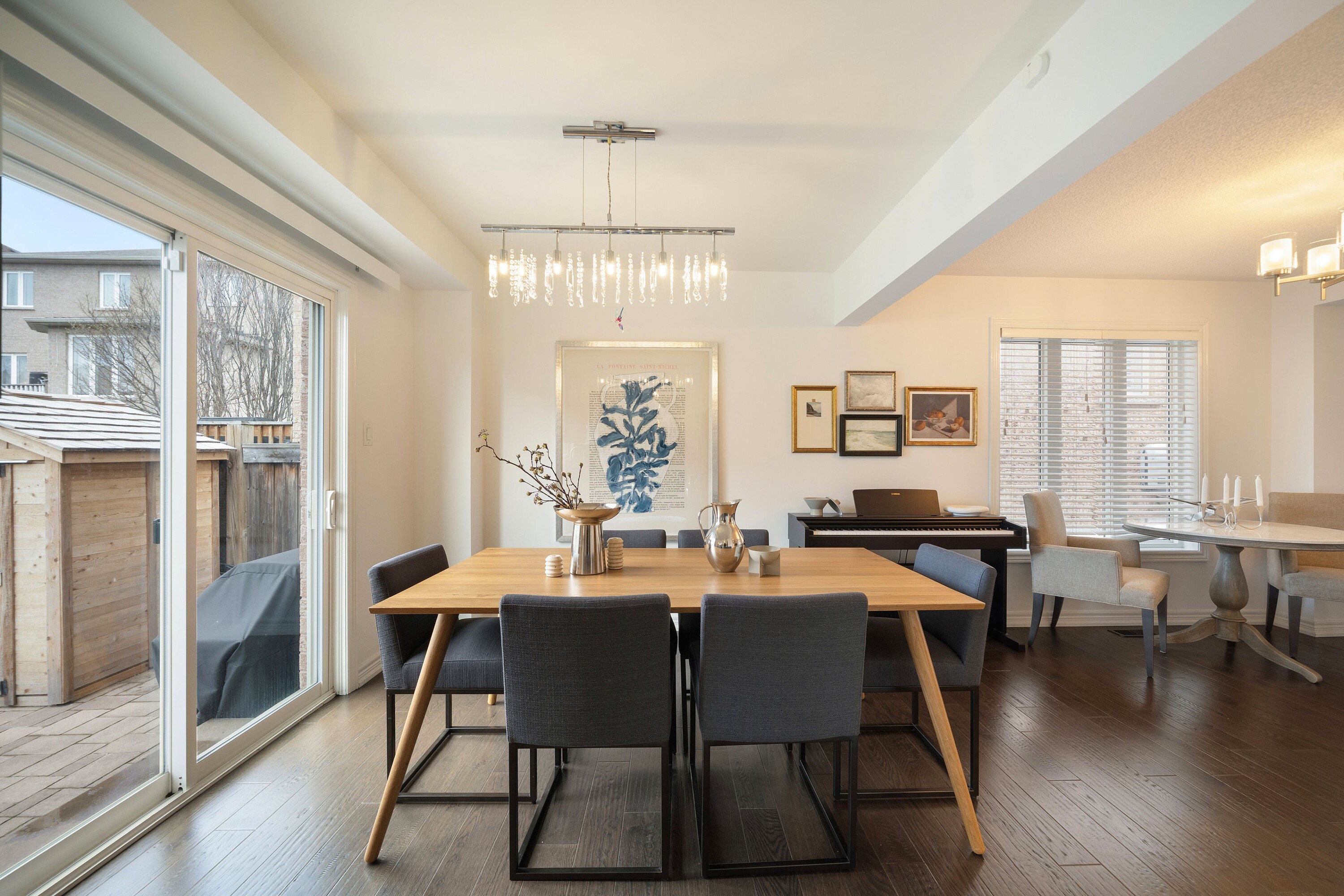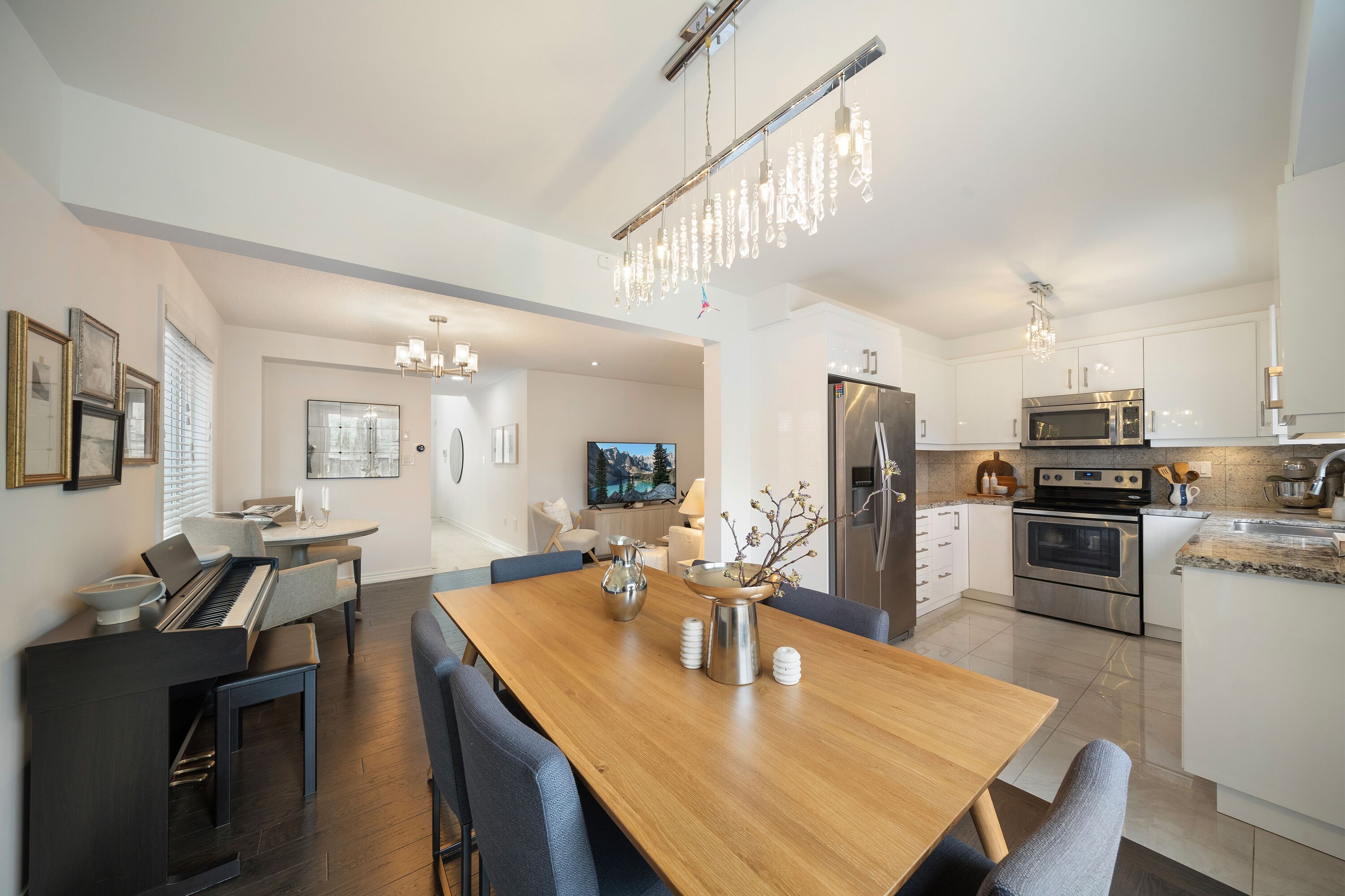 This spacious and beautifully maintained home in the highly sought after Thornberry Woods community offers an exceptional layout, with approximately 2,000 square feet of total interior living space, generous principal rooms, and tasteful finishes throughout. A grand double height entrance welcomes you into an impressive tiled foyer, creating a bright and elegant first impression from the moment you arrive. The inviting living room flows seamlessly into the dining area, both enhanced by rich hardwood flooring and large windows that fill the home with natural light. The bright, family sized updated kitchen overlooks the private backyard and features sleek tile flooring, granite countertops, and ample cabinetry, offering both functionality and style. A convenient powder room completes the thoughtfully designed main level. Upstairs, a staircase featuring a brand new runner leads to the private second floor. The spacious primary bedroom offers a walk in closet and a well appointed renovated four piece ensuite, creating a comfortable retreat. Two additional bedrooms provide generous closet space and peaceful views of the backyard, ideal for family, guests, or a home office. A renovated four piece family bathroom completes the second level. The finished lower level adds valuable additional living space, featuring a large recreation room perfect for relaxing or entertaining, along with a dedicated office area, generous storage, a three piece bathroom, and a separate laundry room, ideal for growing families or those working from home. Outside, the home continues to impress with a private driveway accommodating up to three vehicles, along with a built in one car garage. The super private backyard showcases a large interlock patio, perfect for outdoor dining and entertaining, as well as a grassy area ideal for children and outdoor enjoyment. A wonderful opportunity to own a spacious, move in ready home in the highly desirable Thornberry Woods and Patterson community, close to parks, fantastic schools, transit, and everyday amenities.