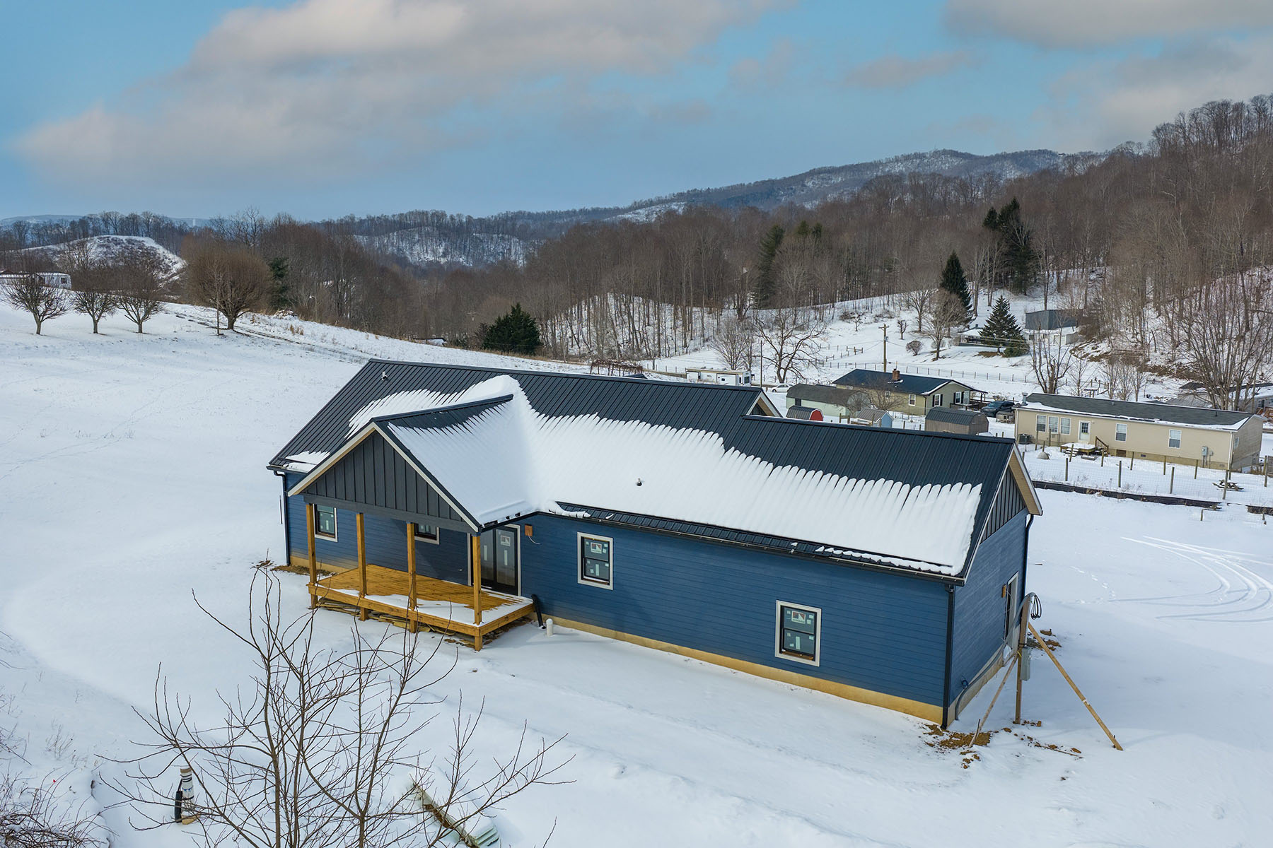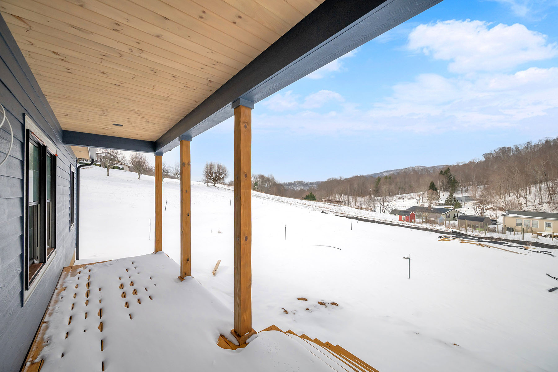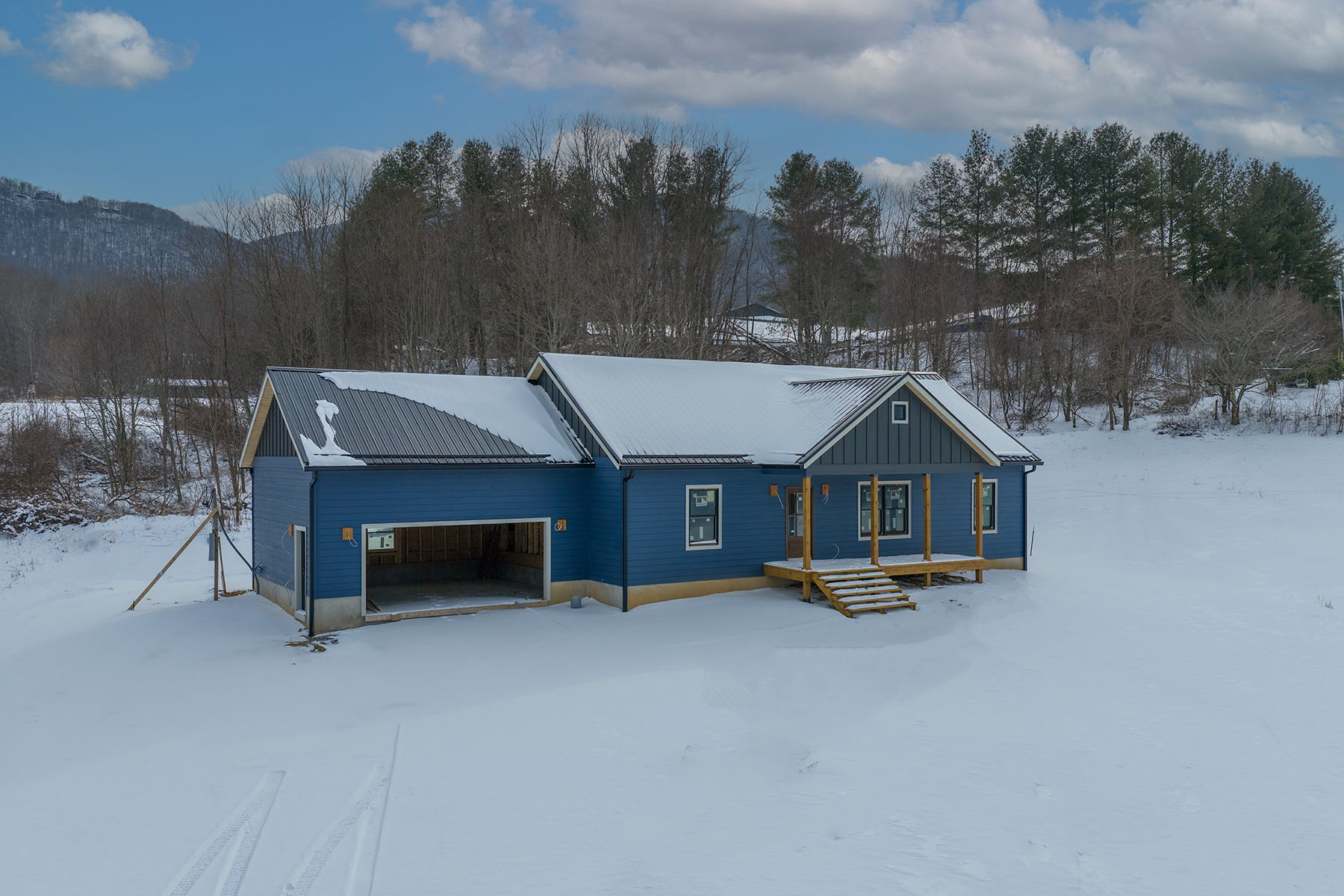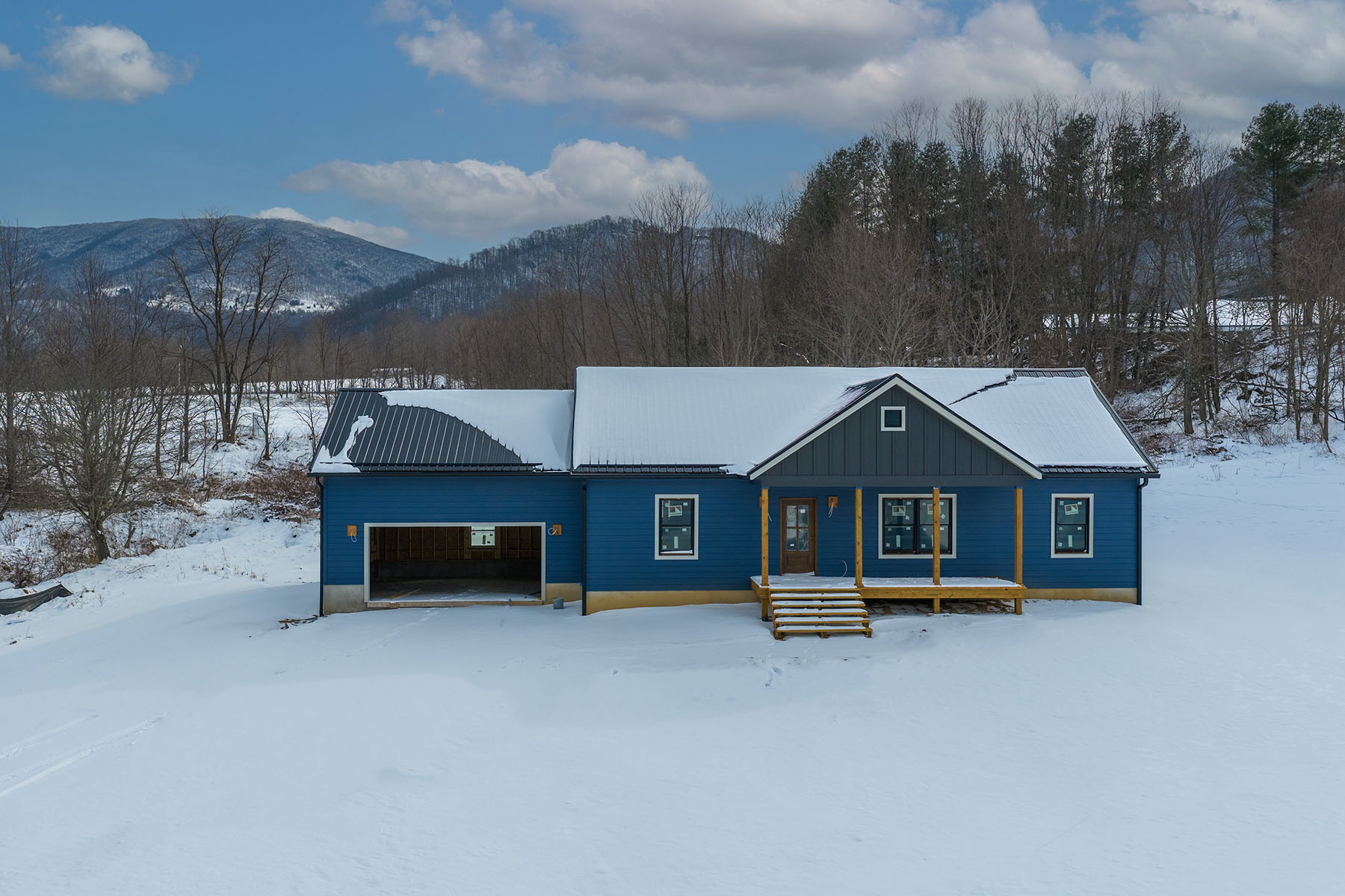 A rare opportunity to personalize your new construction residence, now underway on a flat, fully usable and unrestricted 1.14-acre parcel with expansive long-range mountain views. Ideally positioned just minutes from Boone and Valle Crucis, North Carolina, and Mountain City, Tennessee, this one-level residence offers a flexible lifestyle setting suited for primary or second-home living. With 1,425 square feet of interior space, the home features three bedrooms and two full baths. The main-level primary suite includes a walk-in closet and double vanity, offering privacy and convenience. Construction is in progress, with foundational elements complete. For a limited time, buyers may select final interior finishes, allowing for personal design choices without expense or timeline of a custom build. The open-concept kitchen is appointed with granite countertops and a large island with seating, flowing seamlessly into a spacious living room filled with natural light and oriented toward mountain vistas. A dedicated dining area opens directly onto the covered back porch, creating an easy connection between indoor and outdoor living. A second covered porch extends from the front of the home. Durable, low-maintenance smart siding complements the home's thoughtful design. Luxury vinyl plank flooring runs throughout, offering durability and aesthetic appeal. The home is built on an encapsulated crawlspace and has a low-maintenance metal roof. Additional features include an attached two-car garage and a functional mudroom with laundry access. The level acreage offers a wealth of possibilities for outdoor enjoyment. With no zoning restrictions, the property is suitable for a mini-farm, garden, small livestock, or future enhancements such as a workshop or guest structure. Whether you envision a personal retreat or a productive homestead, the land supports a range of lifestyle needs while maintaining a sense of privacy and open space. This is a rare chance to shape your vision within a professionally designed framework. Act quickly, as the opportunity to select finishes will only remain available for a short period as construction continues. Home is actively under construction, completion date 2026, Certificate of Occupancy has not yet been received. Square footage measurements are estimated based on the builder's plans. Professional square footage measurements will be done once interior walls are complete.