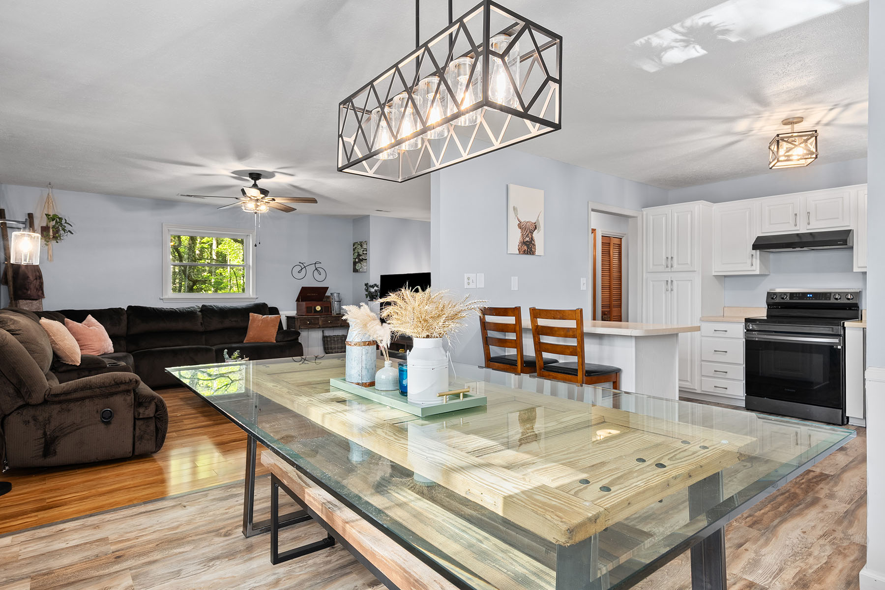 Welcome to 84 Chisholm St. This property offers space, flexibility and a peaceful wooded setting on approximately 1 acre, just minutes from downtown Saluda. This three-bedroom, two-and-one-half-bath split-level residence features 2,331 square feet with hardwood, luxury vinyl and carpet throughout the main living areas. Kitchen was recently updated and new paint in main bathrooms. The primary suite is an oasis that includes an expansive adjoining sitting room that can serve as a home office, study or private retreat. Step outside the primary bedroom to enjoy the Aqua Living G6 Tranquility hot tub surrounded by mature oak trees and natural privacy. The finished basement provides an ideal secondary living space for entertaining, movie nights or game-day gatherings. Relax on the back deck with a cup of coffee or grilling out with family. Laundry is located in the finished basement with an additional hookup available in the main level sitting room. Built in 1986, this home combines comfort and versatility with easy access to Saluda's restaurants, specialty shops, art and music venues, plus nearby outdoor recreation including hiking, biking and mountain adventures. Come discover what 84 Chisholm St. has to offer.