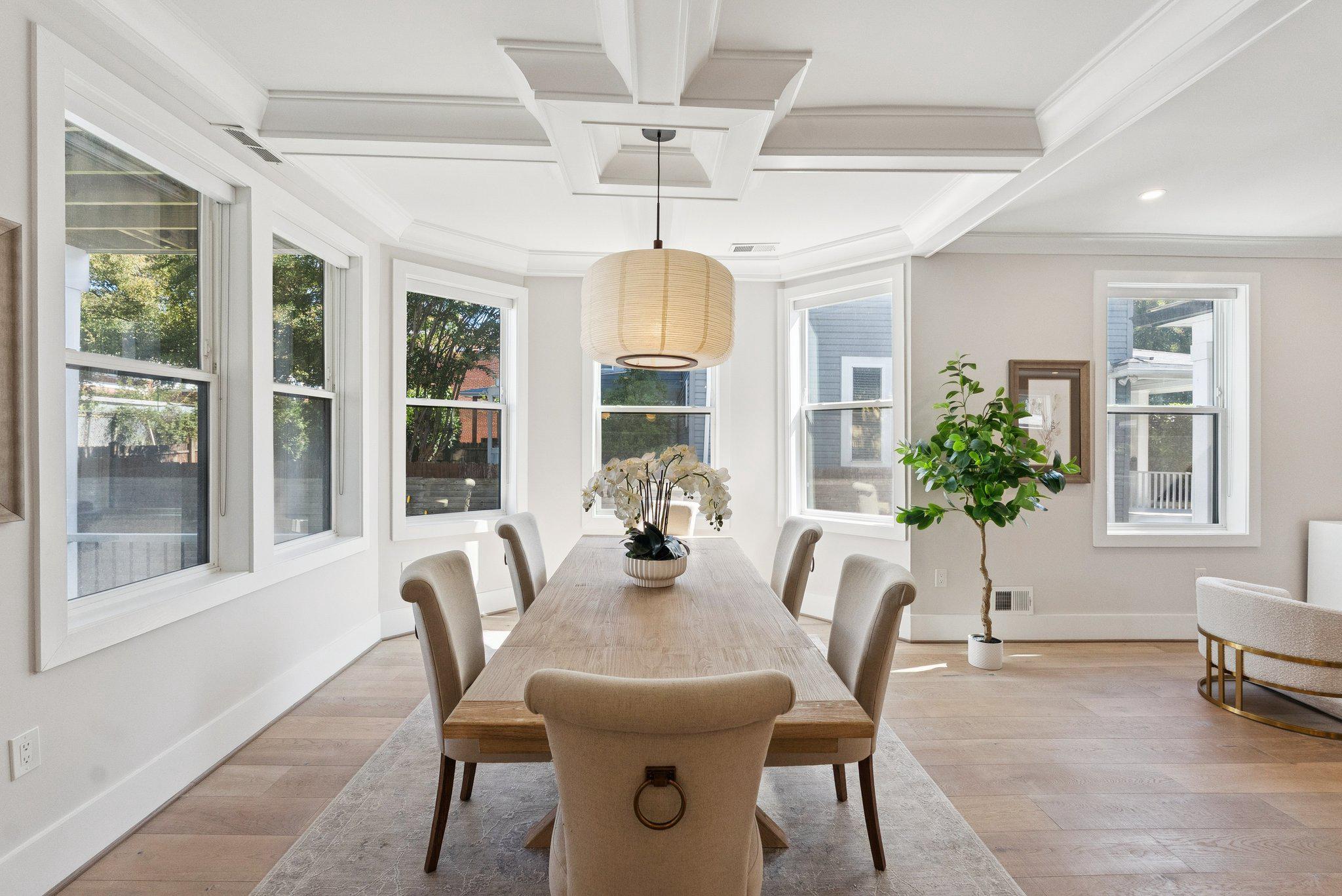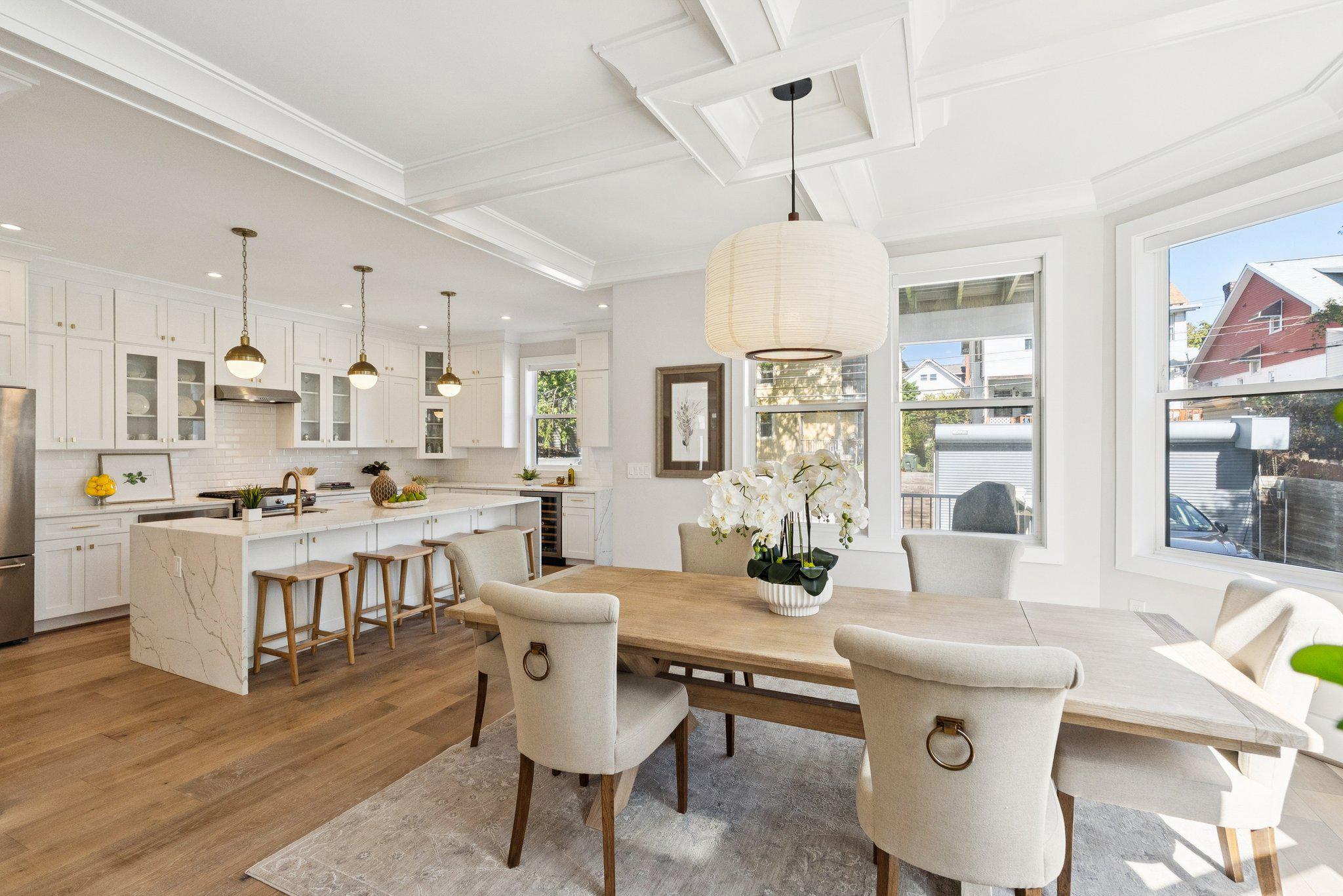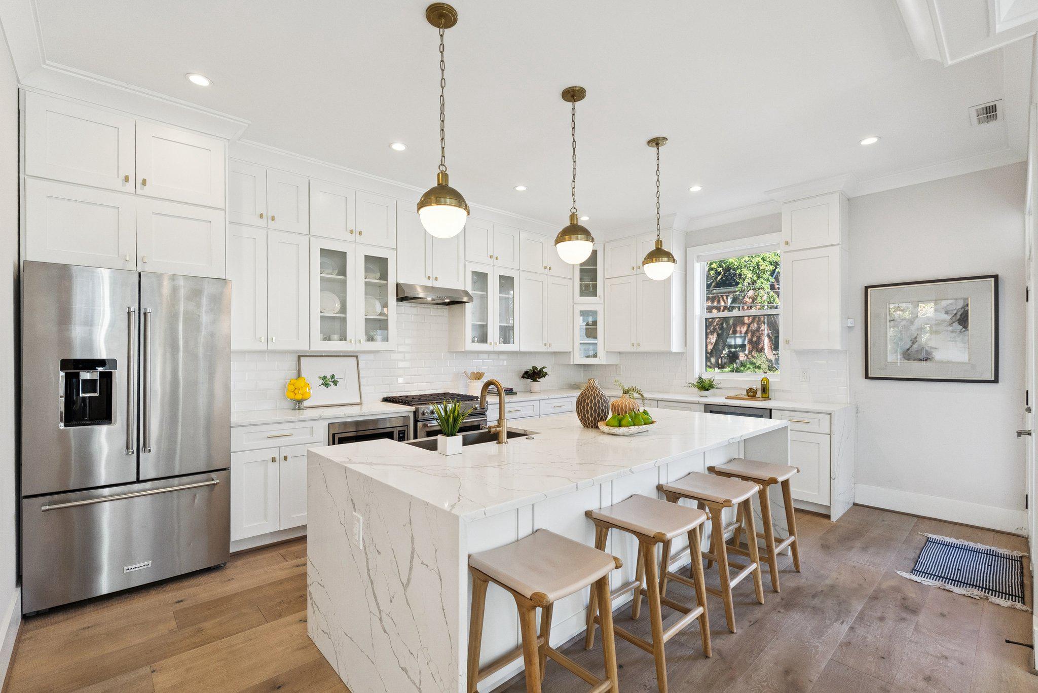 Set on one of 16th Street Heights' most beloved tree-lined blocks, this modern farmhouse delivers a storybook façade with effortless sophistication.Outdoor season starts on the wraparound front porch and continues on the deck off the kitchen ready for grilling season. The back yard is perfect for cutting gardens, veggie gardens, or a good soccer practice field. Inside, warm wood and crisp white details make a welcoming first impression. The living room is spacious enough to host and comfortable enough to unwind in. Light pours through oversized windows. The kitchen anchors the main level with custom cabinetry, quartz countertops, brass pendants, and an eat-in island. It’s polished, yet not too precious for everyday living. The coffered dining room sits just beside. Wrapped by windows it is refined and equally suited to a weeknight dinner or a weekend dinner party.Upstairs, the primary suite has its own private deck perfect for quiet coffee talks or late night wine wind downs. The bath has a soaking tub, separate shower with spa panel, and a double vanity. Two additional bedrooms, a hall bath, and second-floor laundry round out this level.The top floor is vaulted, light-filled, and flexible. Make it an office, studio, music room, workout space, or simply extra room to spread out. This level has its own full bath.The lower level has two separate entrances, kitchenette, full bedroom, separate laundry, and living space. It’s ready for guests, an au pair, or potential rental income.Outside enjoy the wraparound porch, rear deck, private backyard, and secure off-street parking. In DC, that combination is hard to find.16th Street Heights offers Rock Creek Park trails nearby, top public and private schools, and easy access to downtown DC and Maryland.