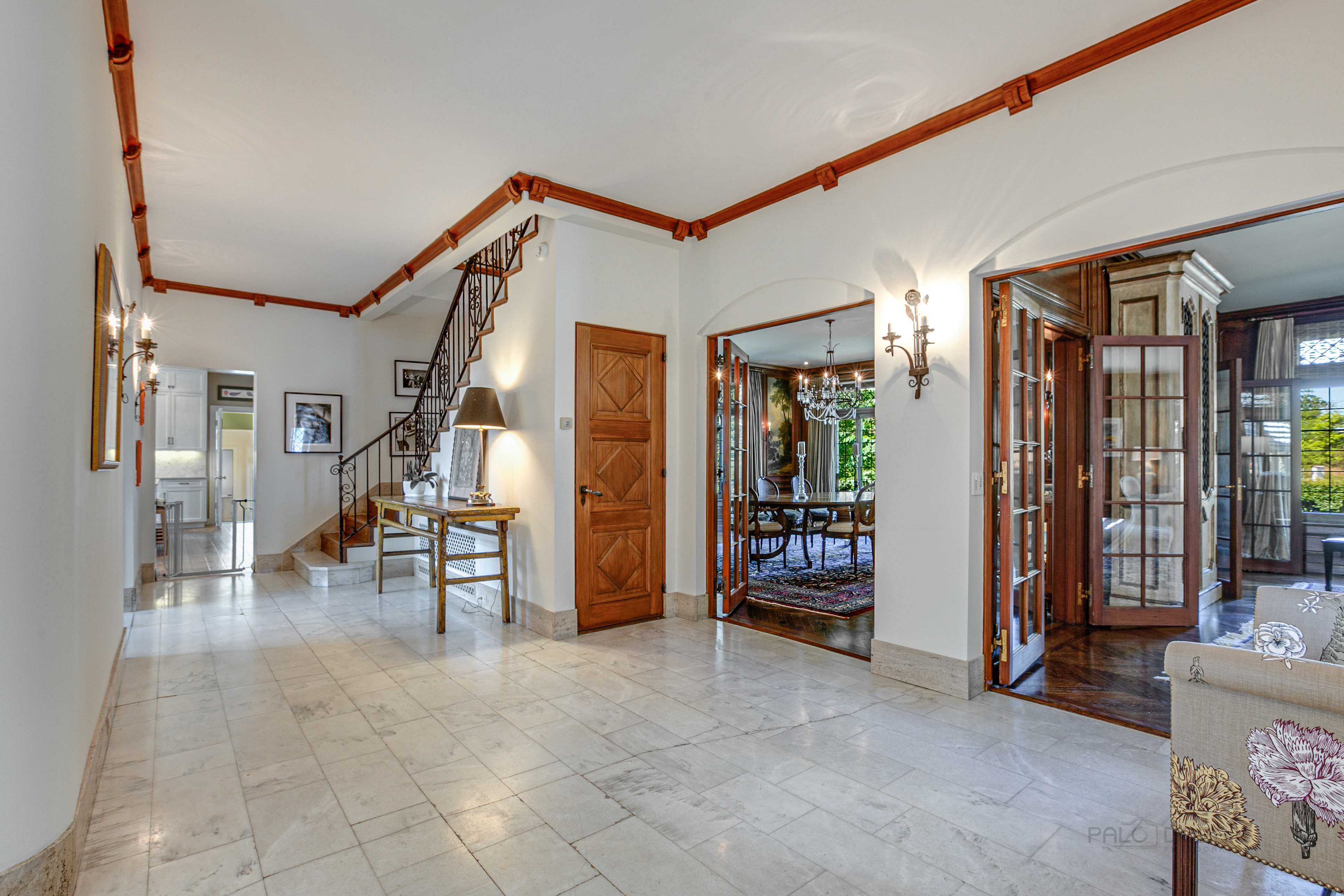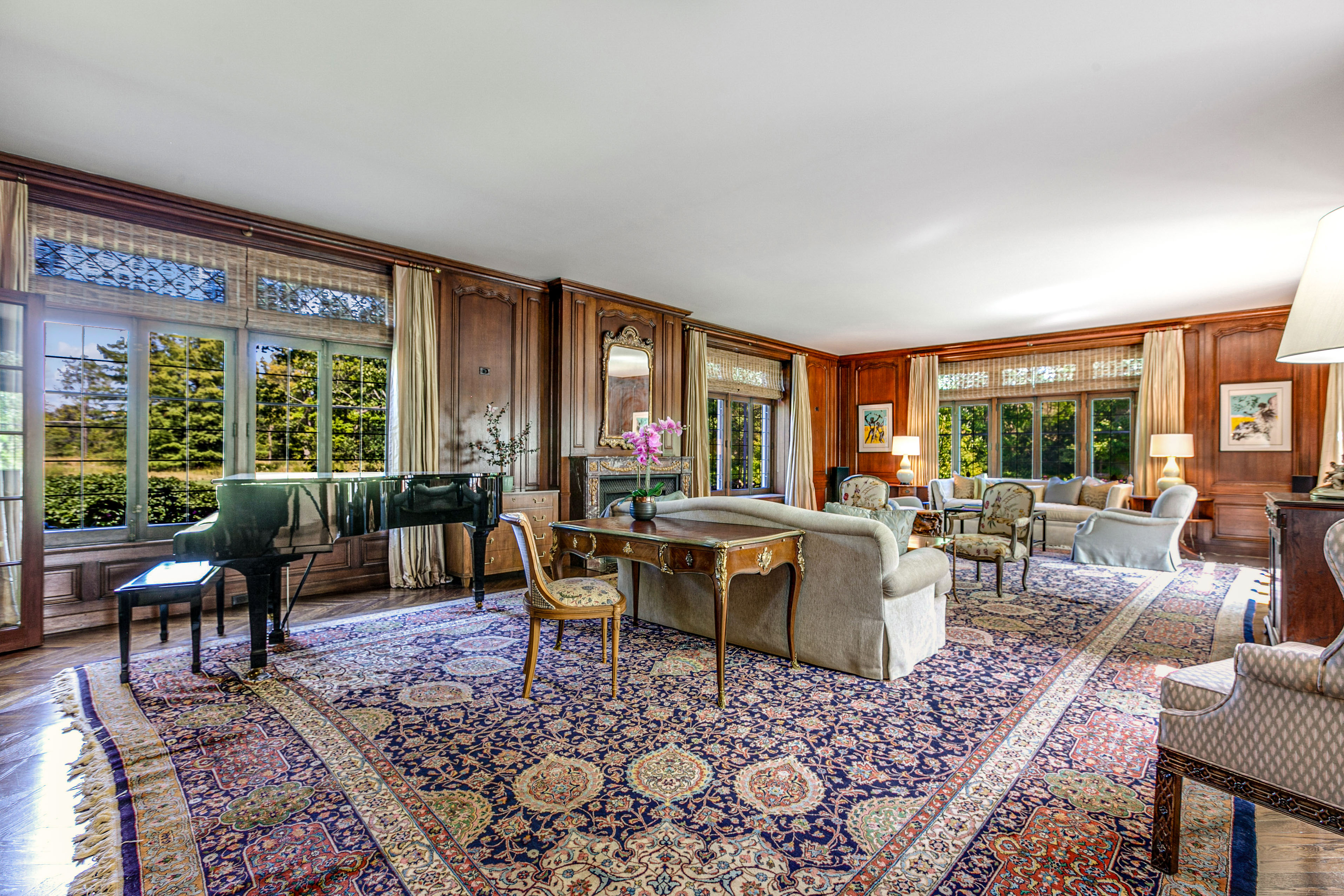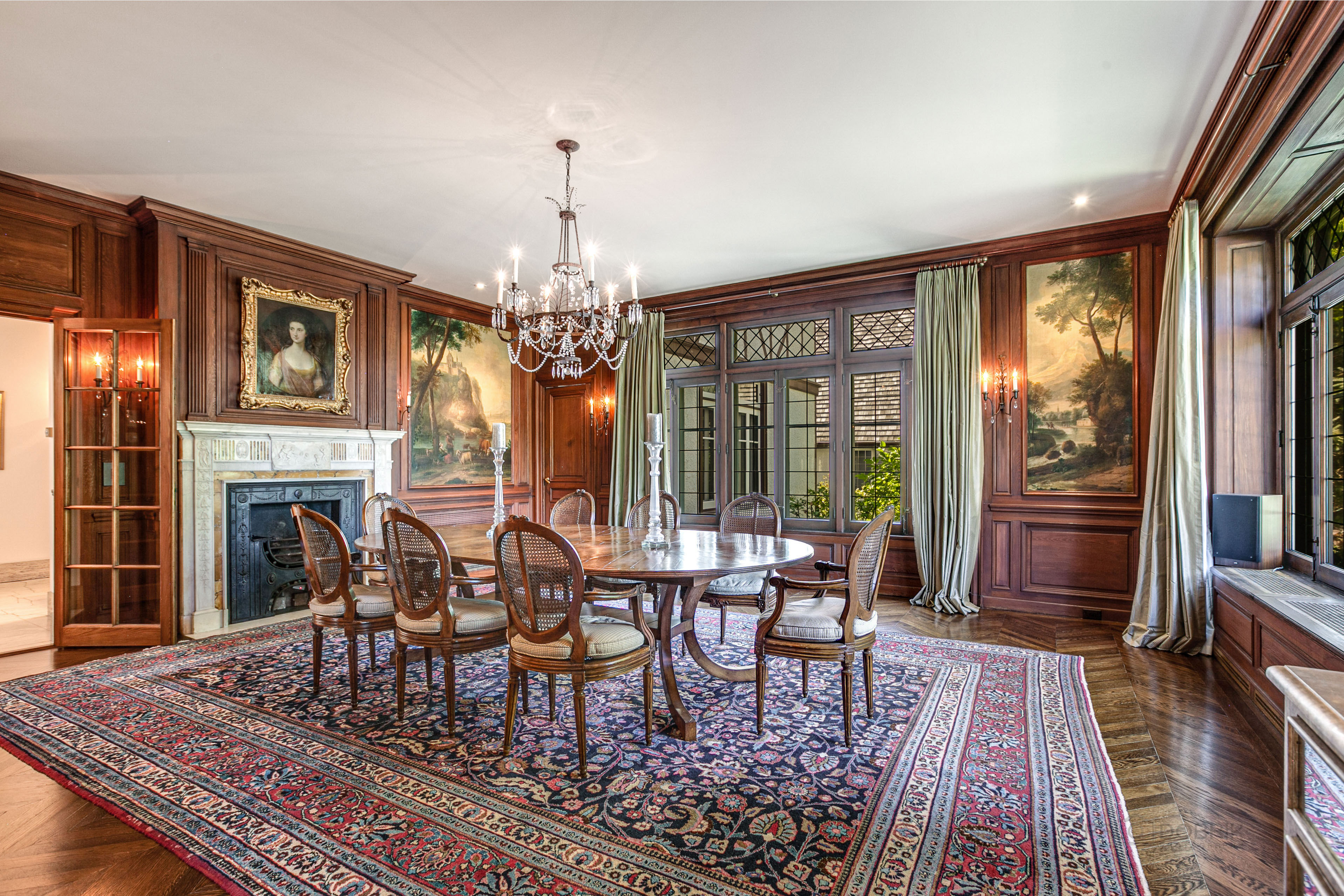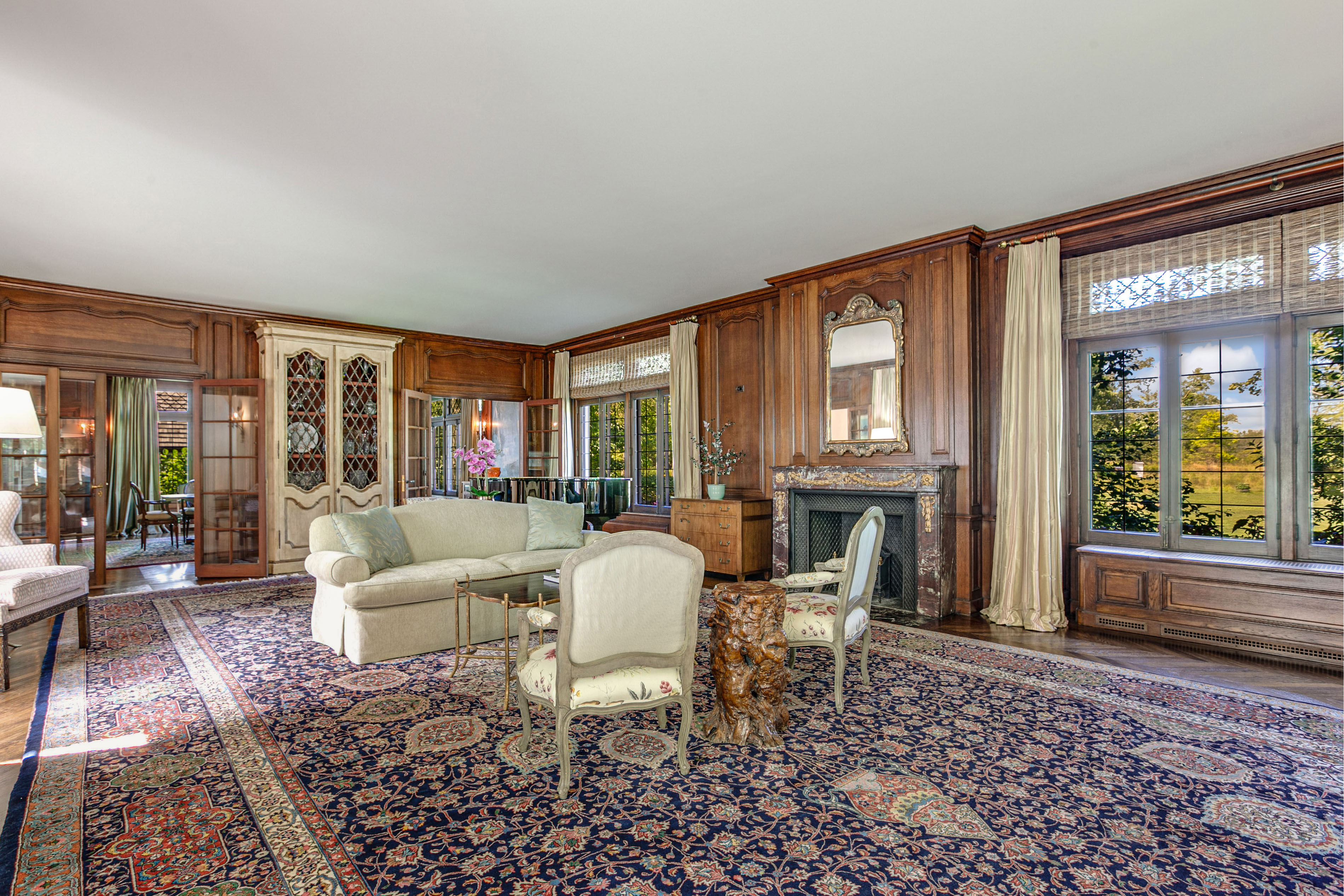 This sprawling Tudor style estate is nestled on nearly 10 enchanting acres. Fully fenced, this amazing property borders a public prairie reserve that has been restored to and beyond the historic Jens Jensen design. The grounds are the design pallet that has created award winning gardens across the entire North-Shore and Wisconsin. Featuring a butterfly garden, an organic potager garden, orchard, vineyard, sprawling lawns, and a stocked fishing and water lily pond. The homes interior has been masterfully decorated and restored to its century old elegance. From the original unique ceiling moldings to the Walnut paneling and bookcases this home is beyond compare. The living room features 10 foot ceilings and is perfectly scaled for entertaining and gathering with family and special friends. The elegant dining room with fireplace and leaded glass windows make seasonal dining inside a very special occasion. Across the marble foyer from the dining room is a Southern facing Cypress paneled library that takes full advantage of the properties fabulous vistas and natural light. Altounian builders expertly crafted the chef's kitchen outfitted with fabulous white shaker cabinets, top-of-the-line appliances and exceptional details and finishes. Adjoining the kitchen via the pool breezeway is the bright and airy family room with seamless access to the terrace, a sleek fireplace and a custom bar, as well as access to a pool bathroom. Above the four car garage is a vaulted ceiling three room in-law suite, with full bath, currently being used as an exercise room, yoga studio and craft space. On the 2nd level you will find four beautiful en-suite bedrooms and baths, including the spacious primary suite with luxurious bath and enormous closet. Venture outdoors and enjoy your own private oasis. The entertainment area revolves around a pool and spa, an outdoor fireplace, multiple gathering areas with seating for thirty, and a pergola dining terrace, featuring an all stainless steel kitchen that can easily accommodate twelve - all working in perfect harmony to create an unparalleled al fresco dining experience. Offering almost 6,000 square feet of living space and a one-of-a-kind outdoor haven this home has been crafted to meet your every need - indoors and out. Horses are allowed, and there is the possibility to also subdivide the property.