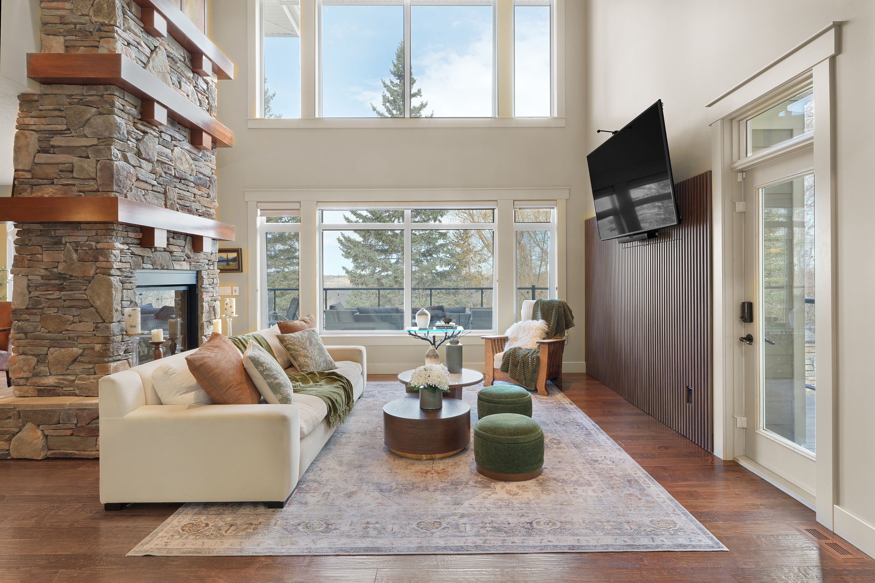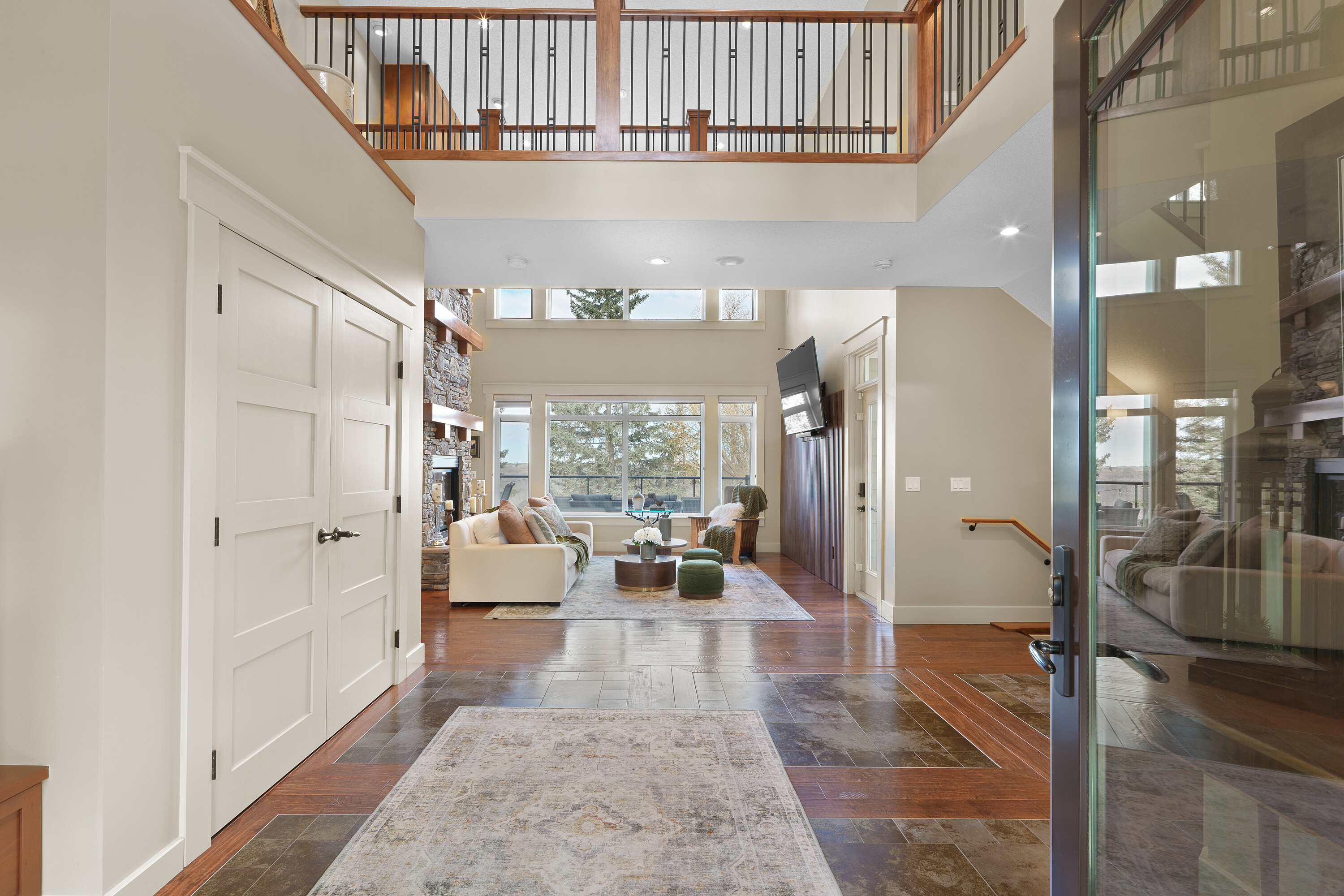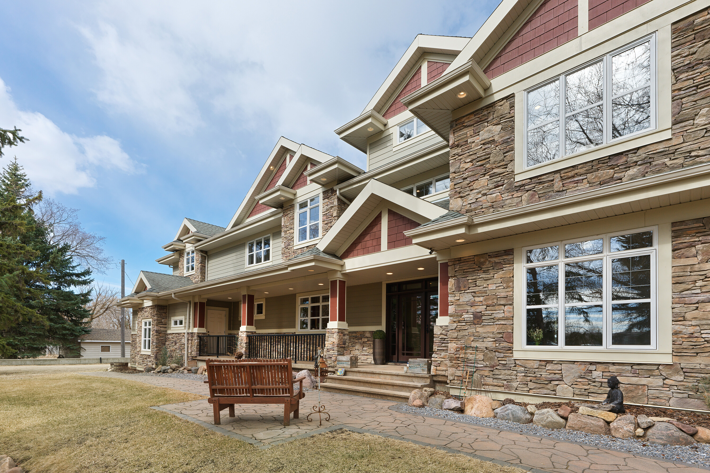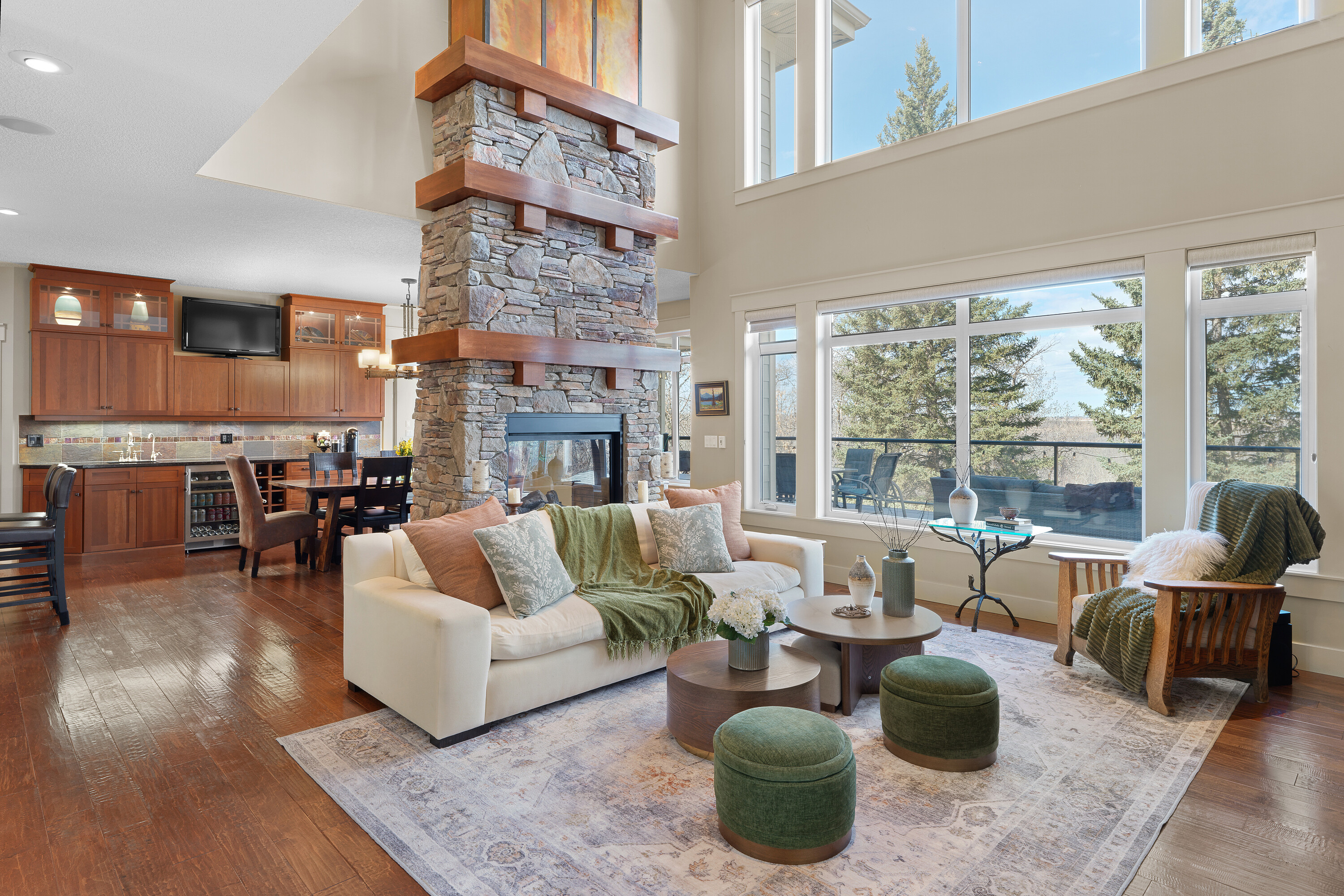An extraordinary river-valley estate on 1.3 acres, this custom 4-bed, 5-bath walkout residence delivers refined luxury and breathtaking west-facing panoramas. Grand interior volumes are anchored by a dramatic two-storey double-sided fireplace wrapped in stone and copper, complemented by solid oak hardwood, expansive windows, and timeless granite finishes. The gourmet kitchen features panel-ready appliances and custom maple cabinetry, opening to a full-length Trex deck and a serene 3-season sunroom suspended above the valley. The walkout level offers heated concrete floors, a second stone fireplace, and seamless indoor-outdoor living. The primary suite captures uninterrupted sunset views, while additional bedrooms and living spaces provide exceptional comfort and scale. A heated 4-car garage and two large detached sheds complete this rare luxury offering on prestigious Windermere Drive