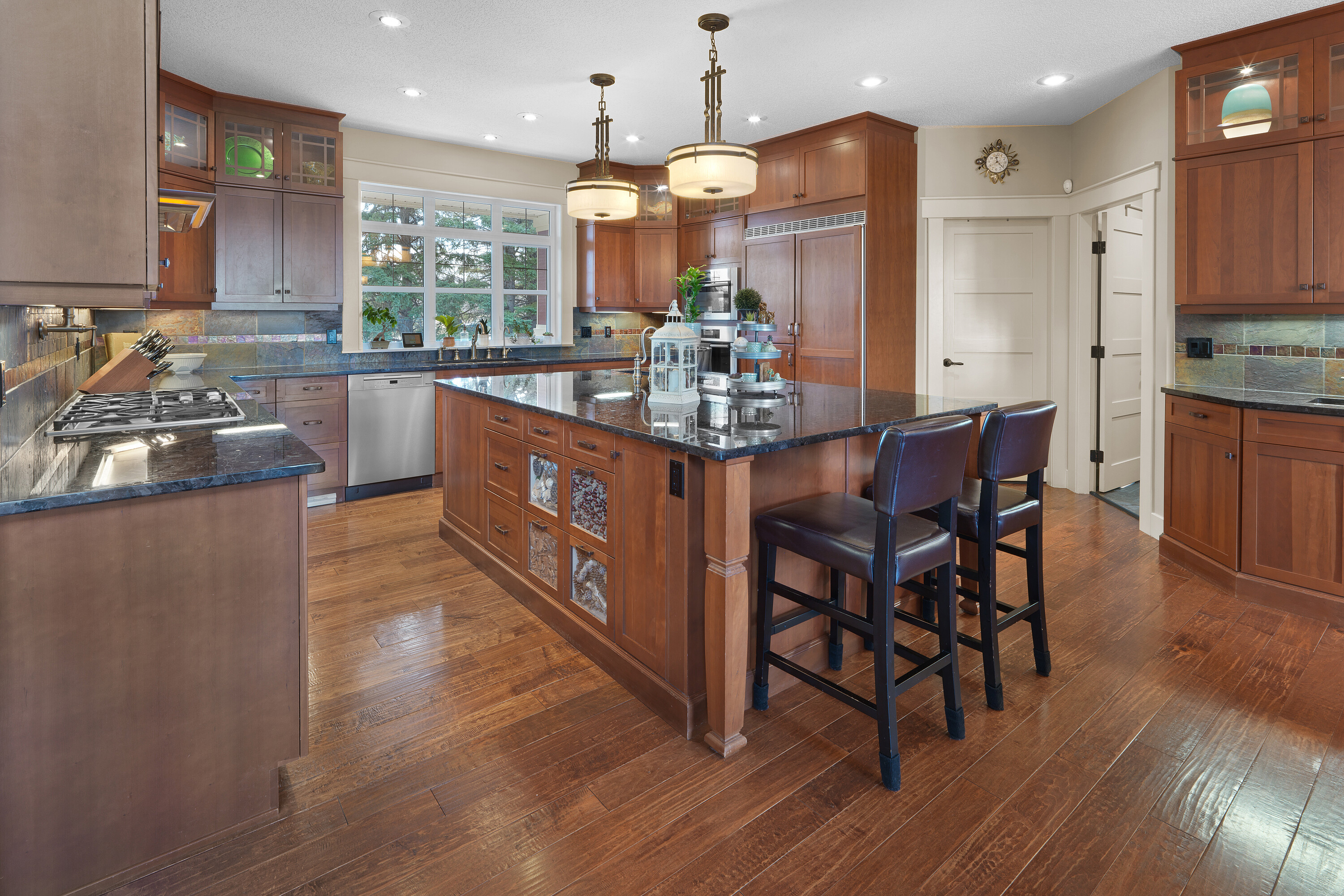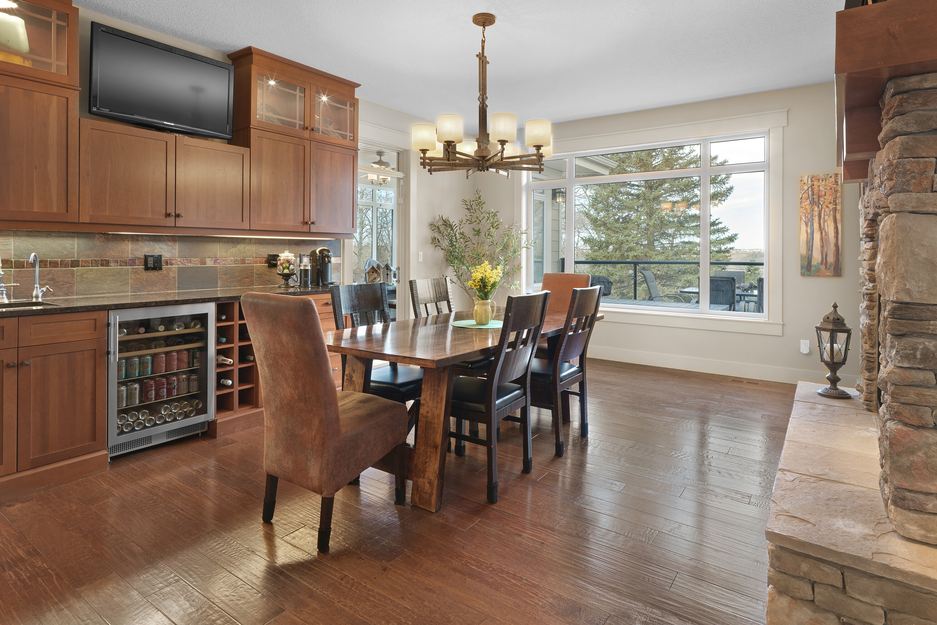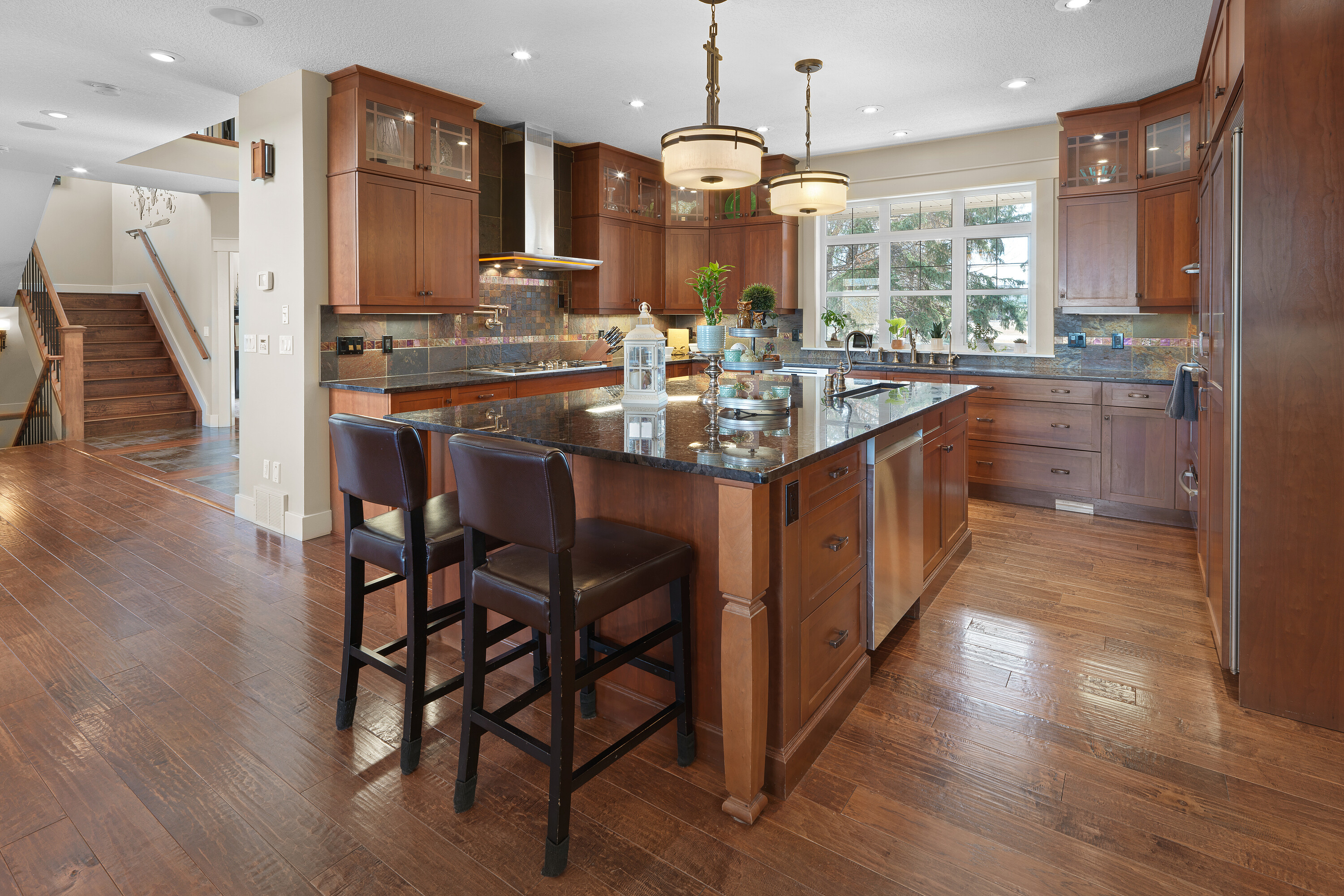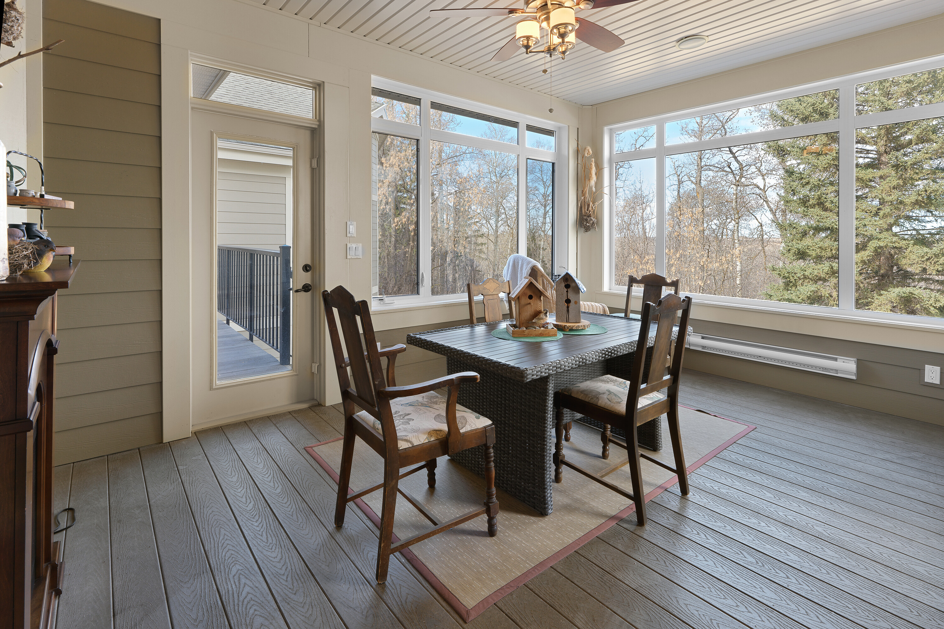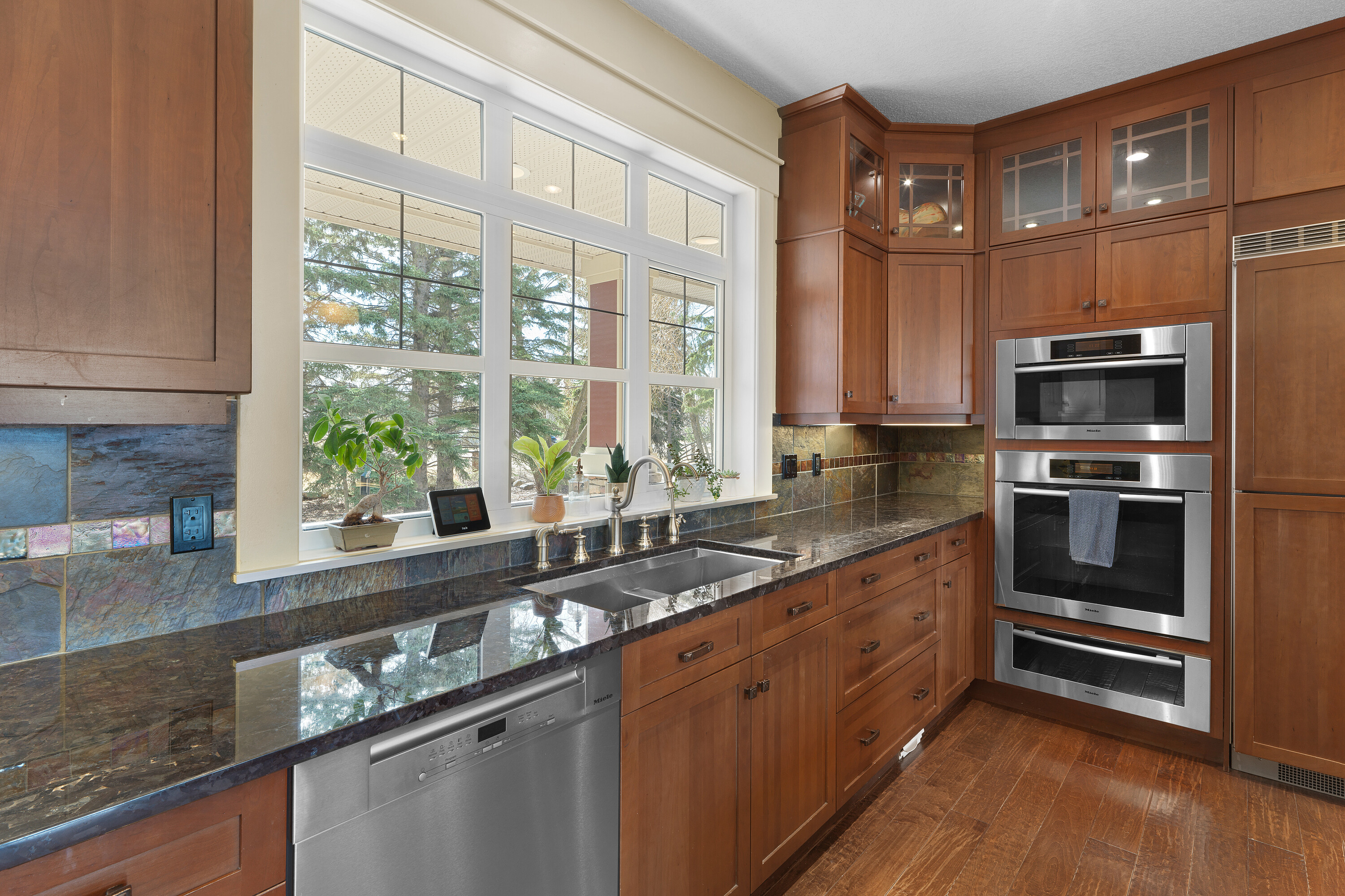 An extraordinary river-valley estate on 1.3 acres, this custom 4-bed, 5-bath walkout residence delivers refined luxury and breathtaking west-facing panoramas. Grand interior volumes are anchored by a dramatic two-storey double-sided fireplace wrapped in stone and copper, complemented by solid oak hardwood, expansive windows, and timeless granite finishes. The gourmet kitchen features panel-ready appliances and custom maple cabinetry, opening to a full-length Trex deck and a serene 3-season sunroom suspended above the valley. The walkout level offers heated concrete floors, a second stone fireplace, and seamless indoor-outdoor living. The primary suite captures uninterrupted sunset views, while additional bedrooms and living spaces provide exceptional comfort and scale. A heated 4-car garage and two large detached sheds complete this rare luxury offering on prestigious Windermere Drive