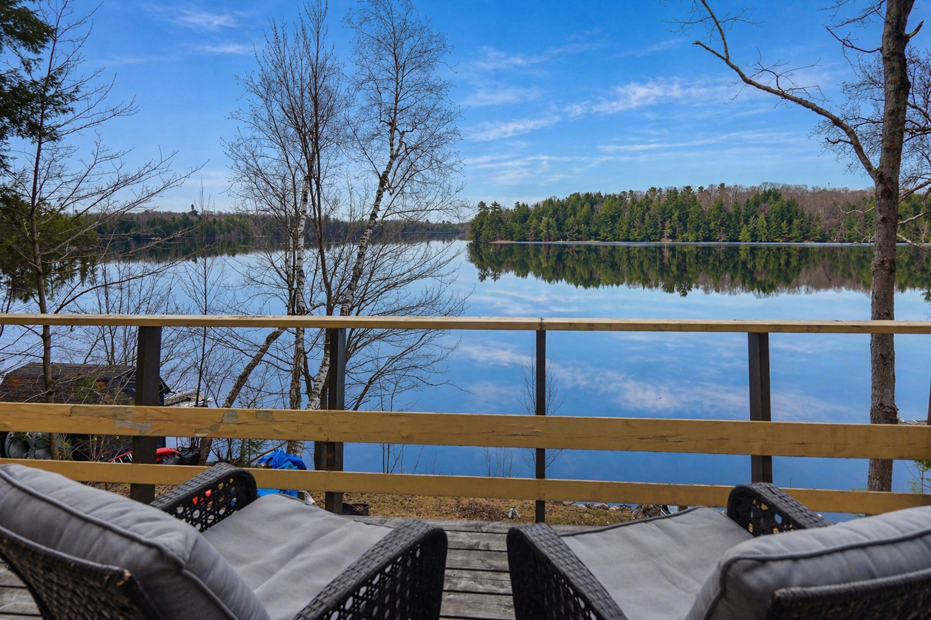 Classic three bedroom seasonal cottage set on a south facing lot with wide open view over Lake Manitouwabing. With sand entry and deep water off the end of the dock, the property is ideal for catching all day sun and spending time relaxing or out on the water. Relax on the deck at the cottage, fish off the dock or enjoy a nice fire by the shoreline. Summers here are exactly what you are looking for. Close by, you will find the town of McKellar with General Store, a few necessities and a weekly market. Take a boat trip around the lake and stop for ice cream or take the 20 minute drive in to Parry Sound for everything else.