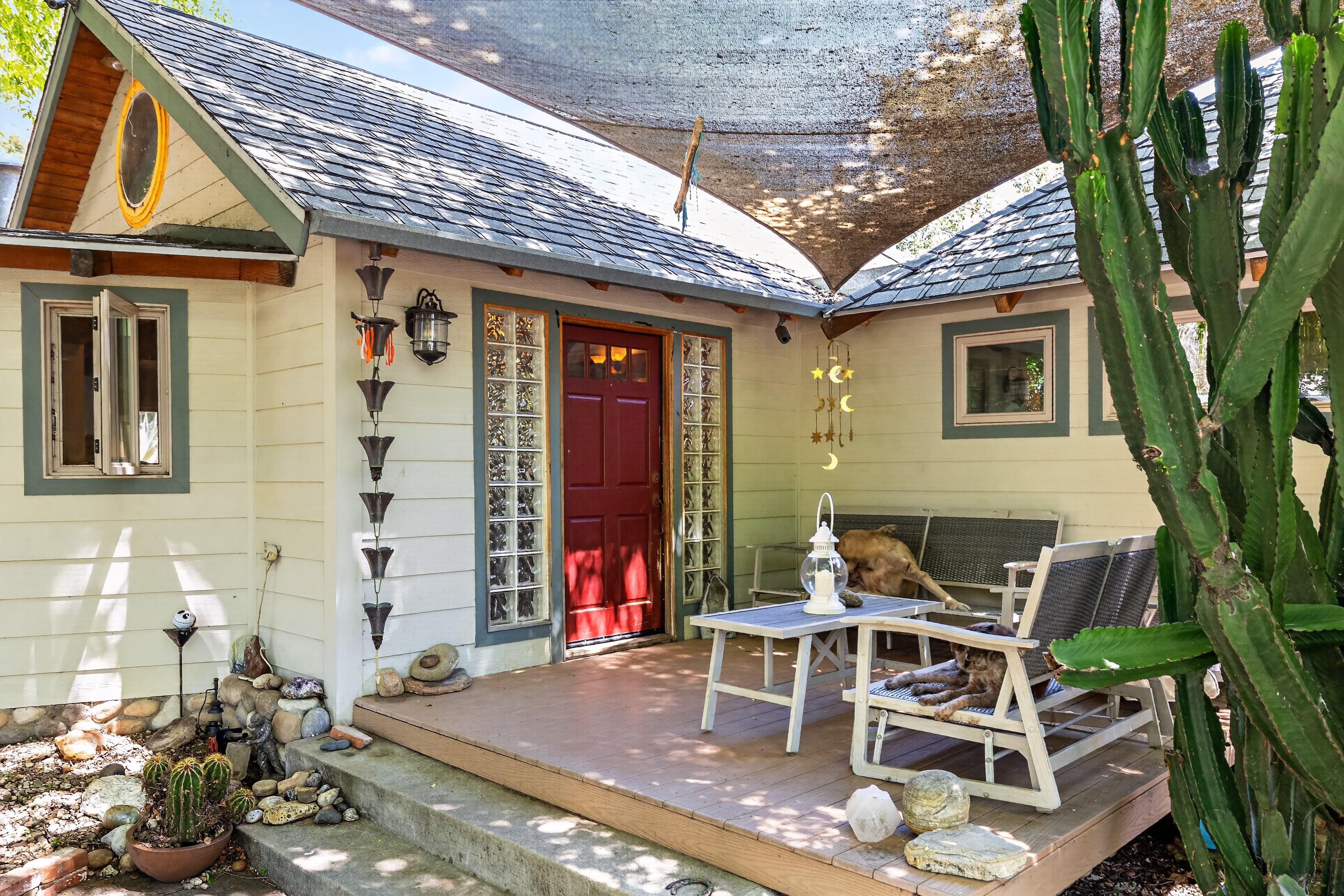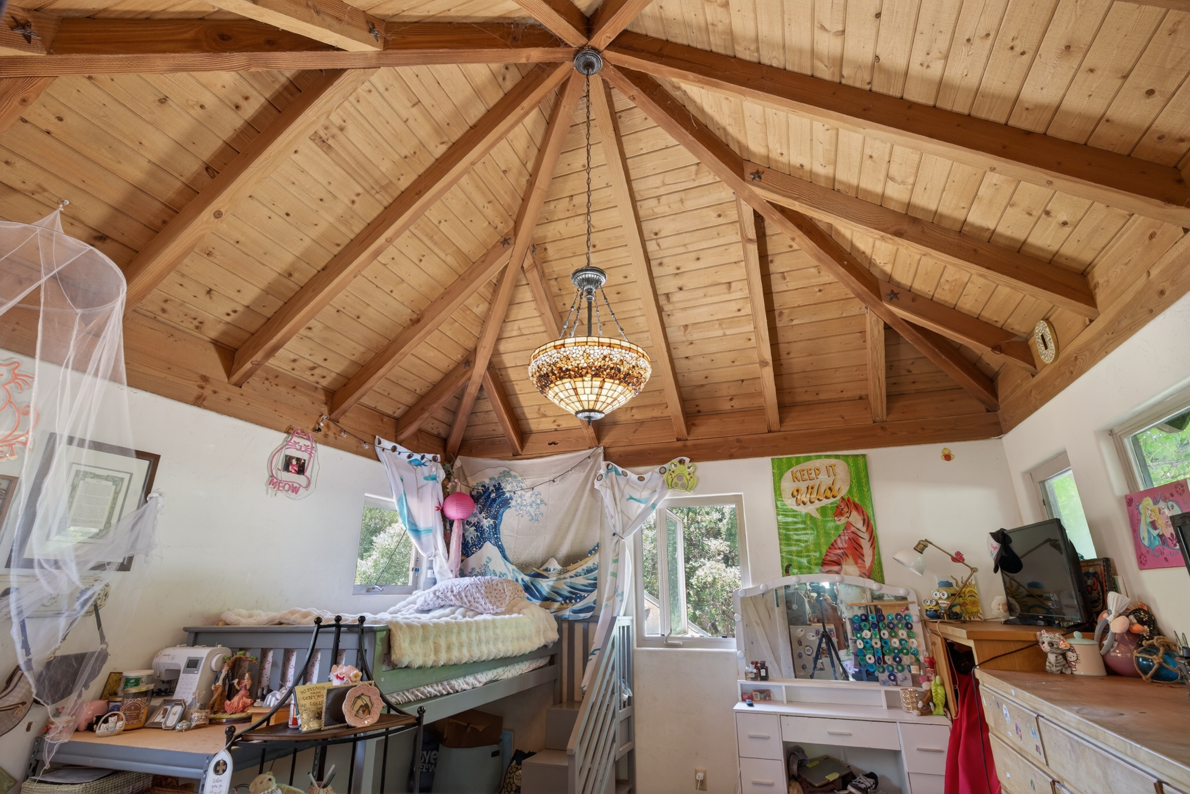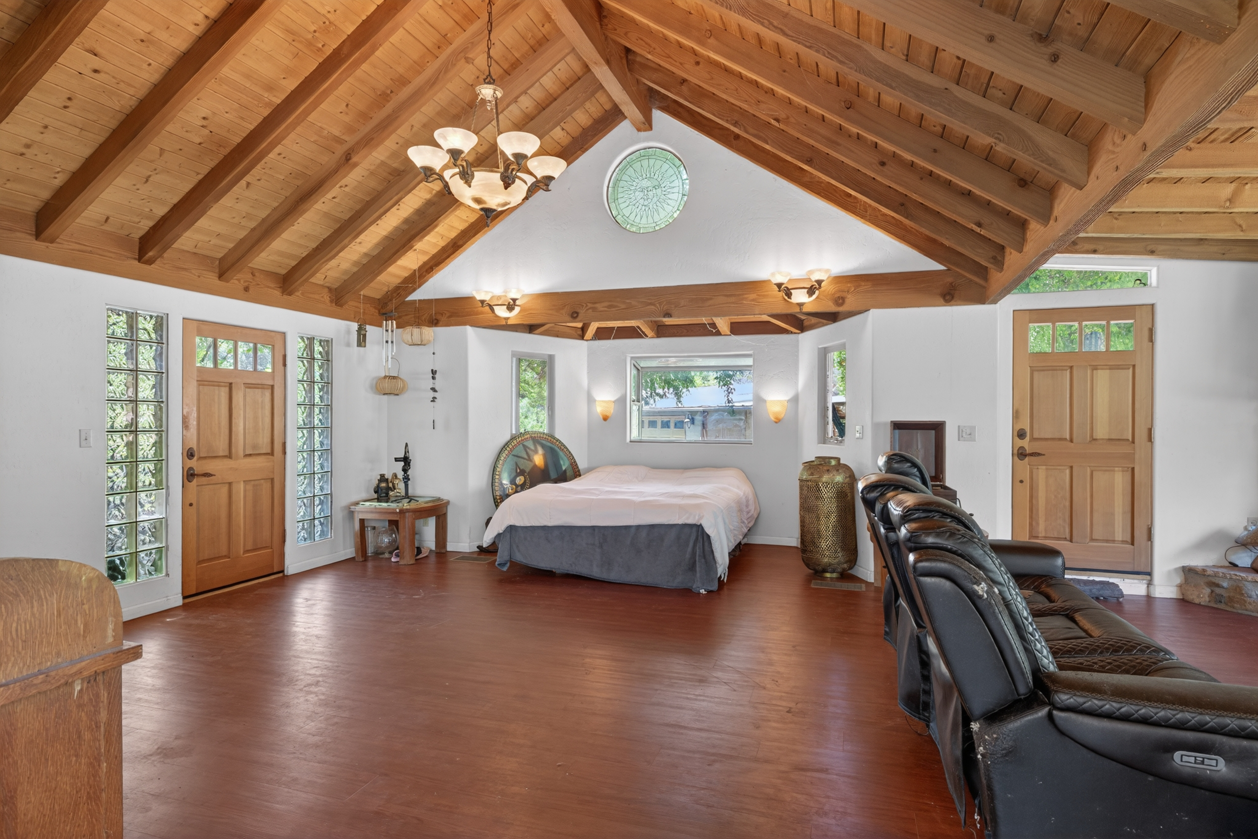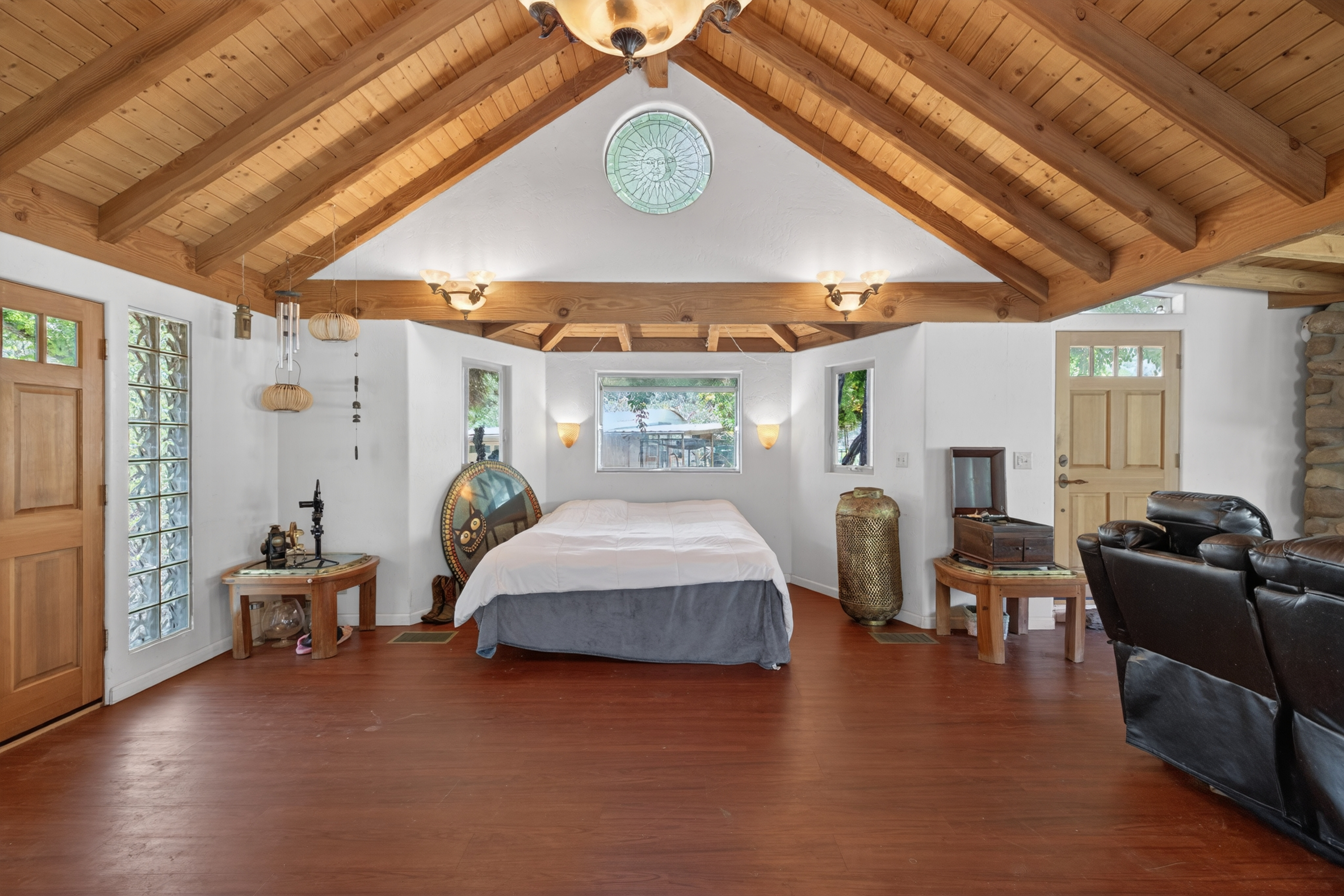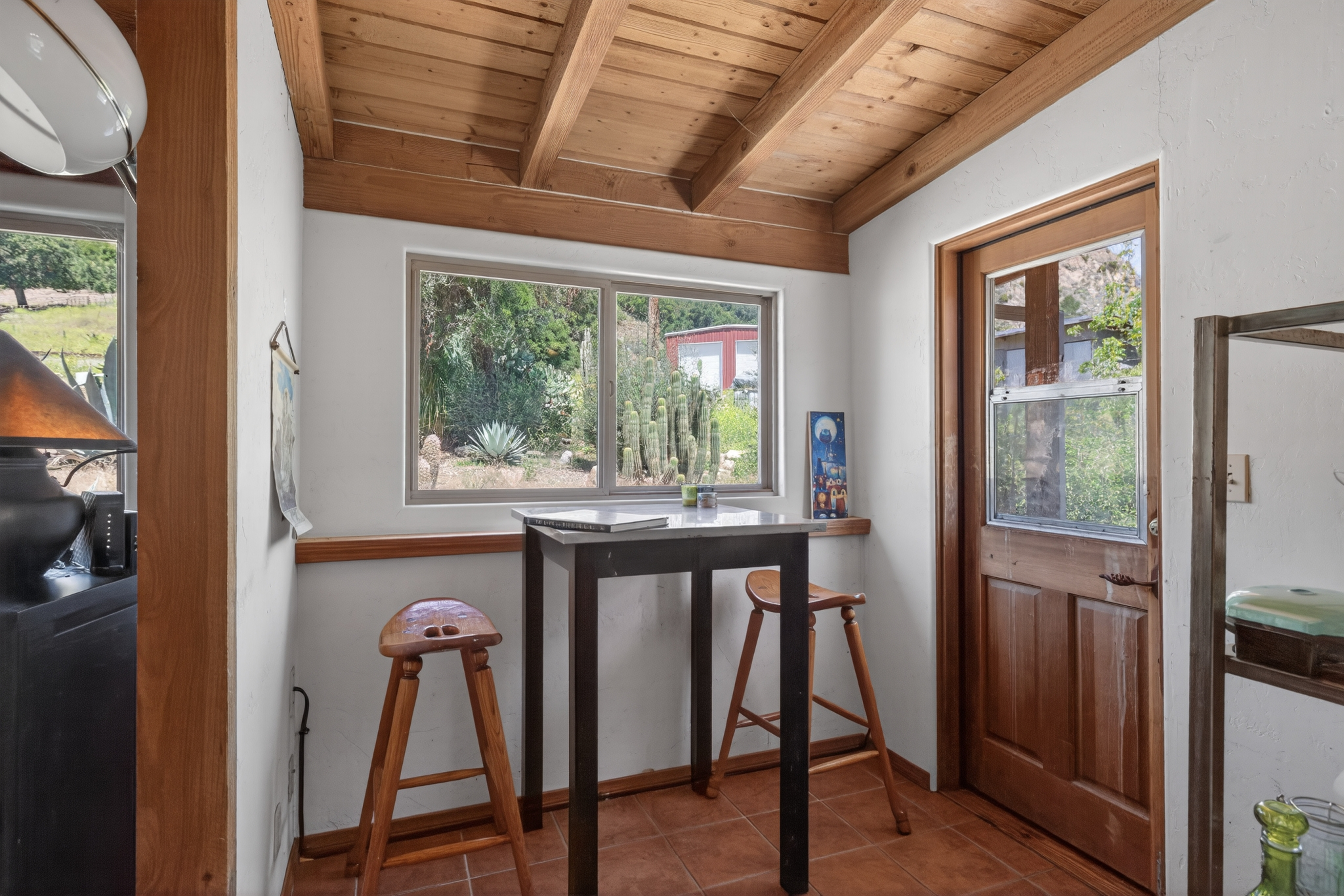 Step into your private oasis with your own secluded rural ranch that has sweet bird sounds and its very own beautiful mountains to explore, surrounded by 5000 of unspoiled natural acres! You can cruise on your ATV or hike on your private trails with 2 creeks and enjoy the views from the the mountain tops or pick fruit from your own orchard, including lemons, tangelos, oranges, pomegranate, avocados, pears, walnuts and more! The 1 bedroom 1 bathroom cabin was fully rebuilt in 2005 has built in wood bedroom drawers, dual pane windows and the original floor plan had 2 bedrooms but one is a deck now. This home is surrounded by tall shade trees and has a water filtration system and reverse osmosis drinking water, gorgeous vaulted ceilings, a huge guardian Bison on the wall and lovely stained glass window in living room. Enjoy the family by having a pool party, where you can catch the rays, take a dip in your pristine private pool or roast marshmallows around the out door fire pit. There are several other out buildings that could be converted into guest homes or ADU'S, workshops or office space or house more farm equipment. This ranch also comes with a huge 3500 sf barn that has one car lift and could be used to store your private plane, farm equipment or 8 cars an RV and can be converted to a horse stable and house your live stock. The ranch is fully fenced around the perimeter and has cross fencing to divide pasture area from buildings and has a solar powered double gated entry for added security. Live you best private life here on this very special ranch!