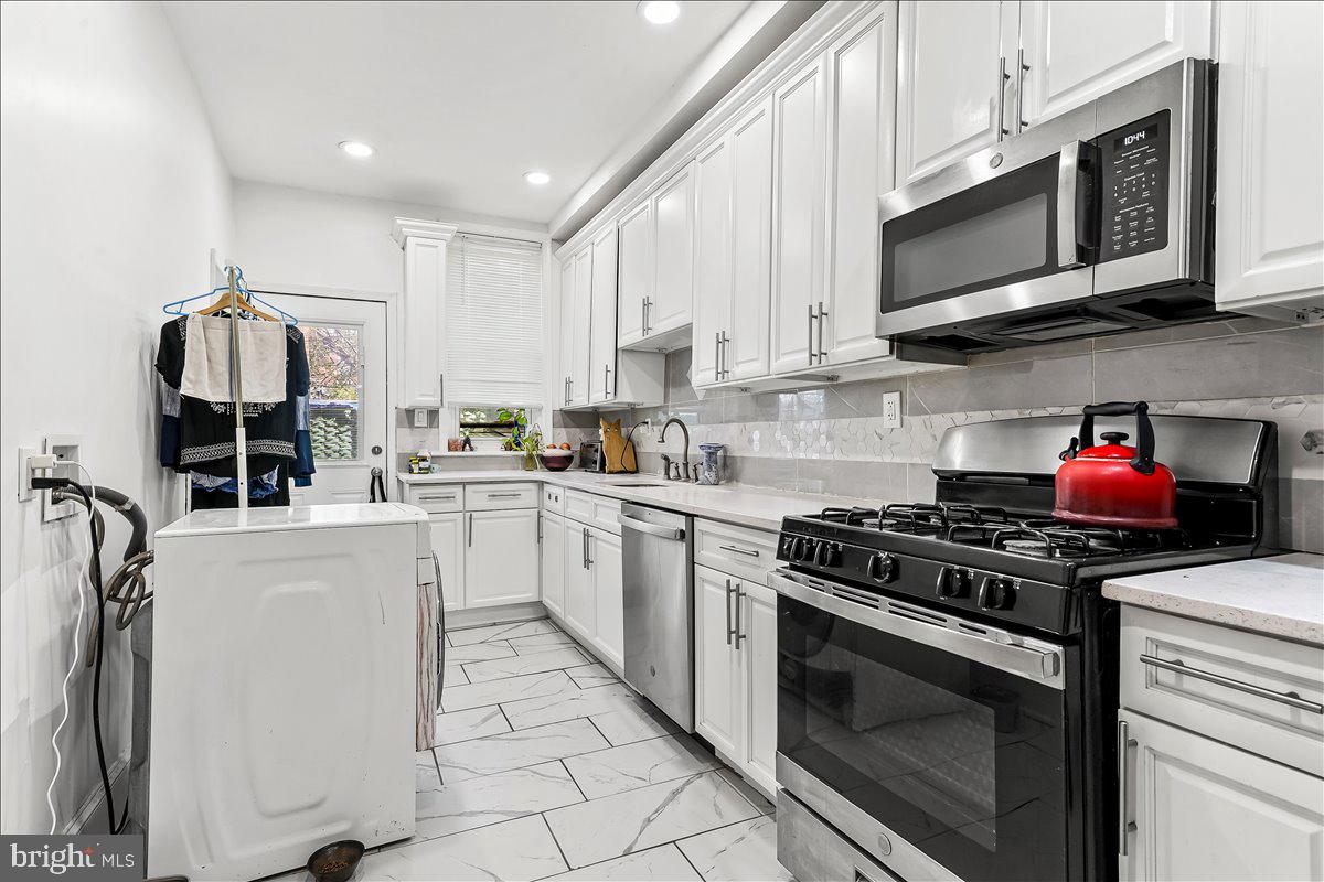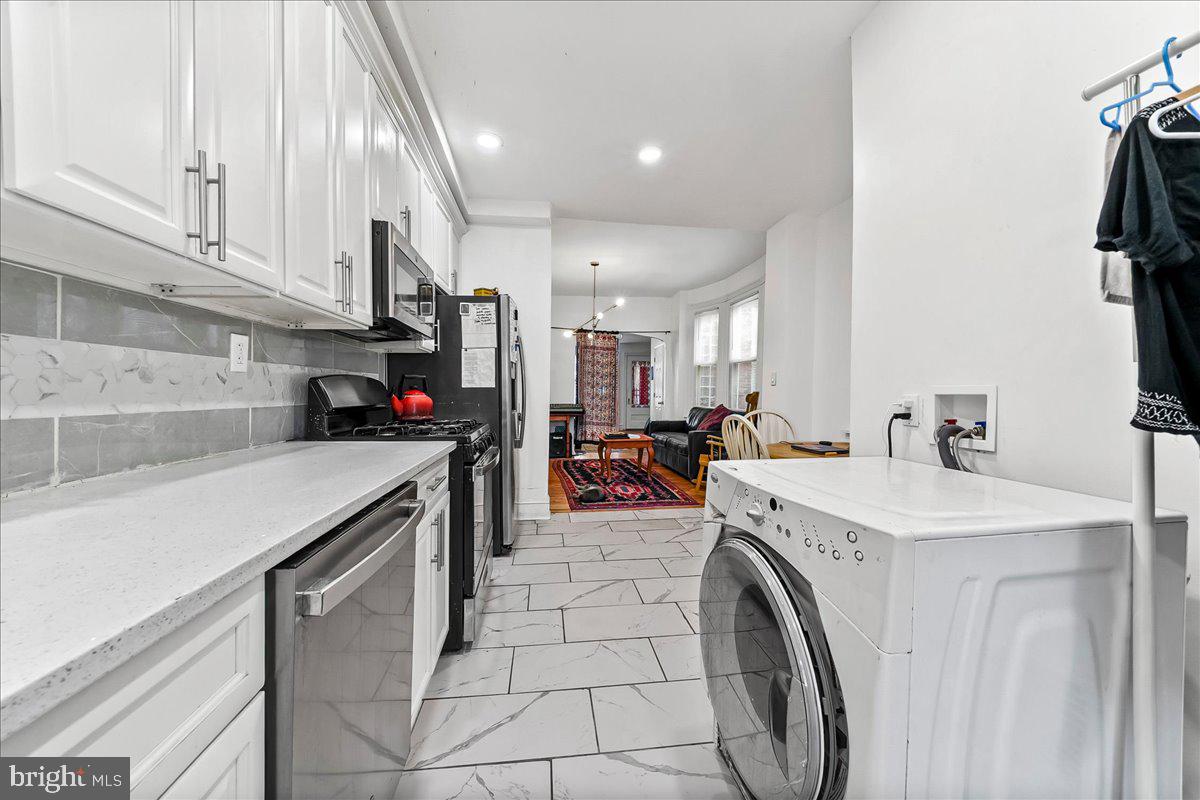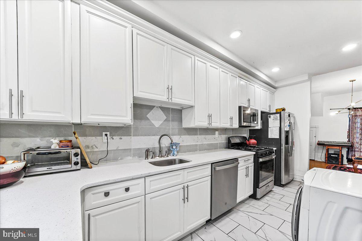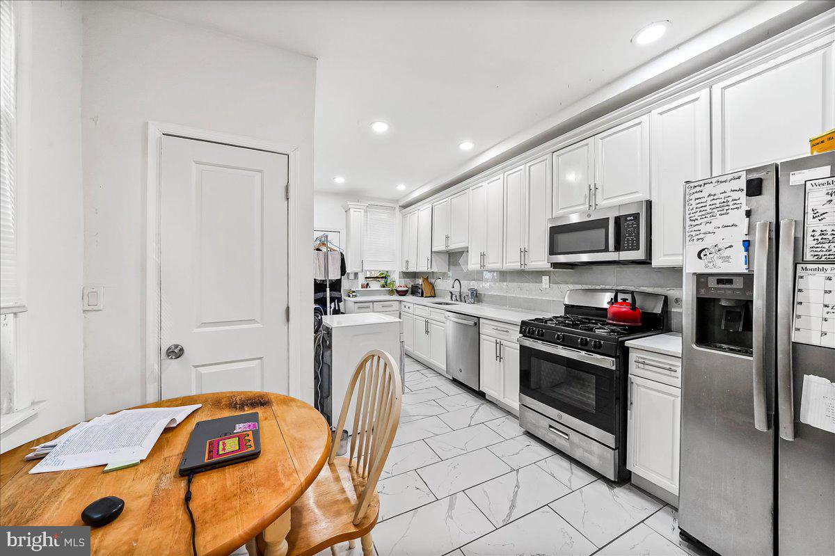 Welcome to 5451 Pine Street - a classic West Philadelphia rowhome that delivers space, character, and smart updates in all the right places. Step inside from the inviting front porch into a bright, open living and dining area where original hardwood floors and timeless architectural details create warmth and continuity throughout the main level. The layout flows naturally into a thoughtfully renovated kitchen featuring white cabinetry, quartz countertops, stainless steel appliances, gas cooking, and a dedicated pantry for everyday functionality. Upstairs, four well-proportioned bedrooms offer flexibility for sleeping, working, or creative space, all centered around a refreshed full bathroom with updated tile, vanity, and fixtures. A convenient first-floor powder room adds everyday ease. The full basement spans the length of the home with high ceilings and excellent storage potential - or future finished space. Out back, a private fenced yard offers room to relax, entertain, or garden. Positioned in a vibrant West Philadelphia location, 5451 Pine places you minutes from University City, Penn, Drexel, CHOP, and HUP, with easy access to Center City, major highways, and multiple SEPTA routes for a seamless daily commute. A compelling opportunity to step into space, value, and location - all in one.
