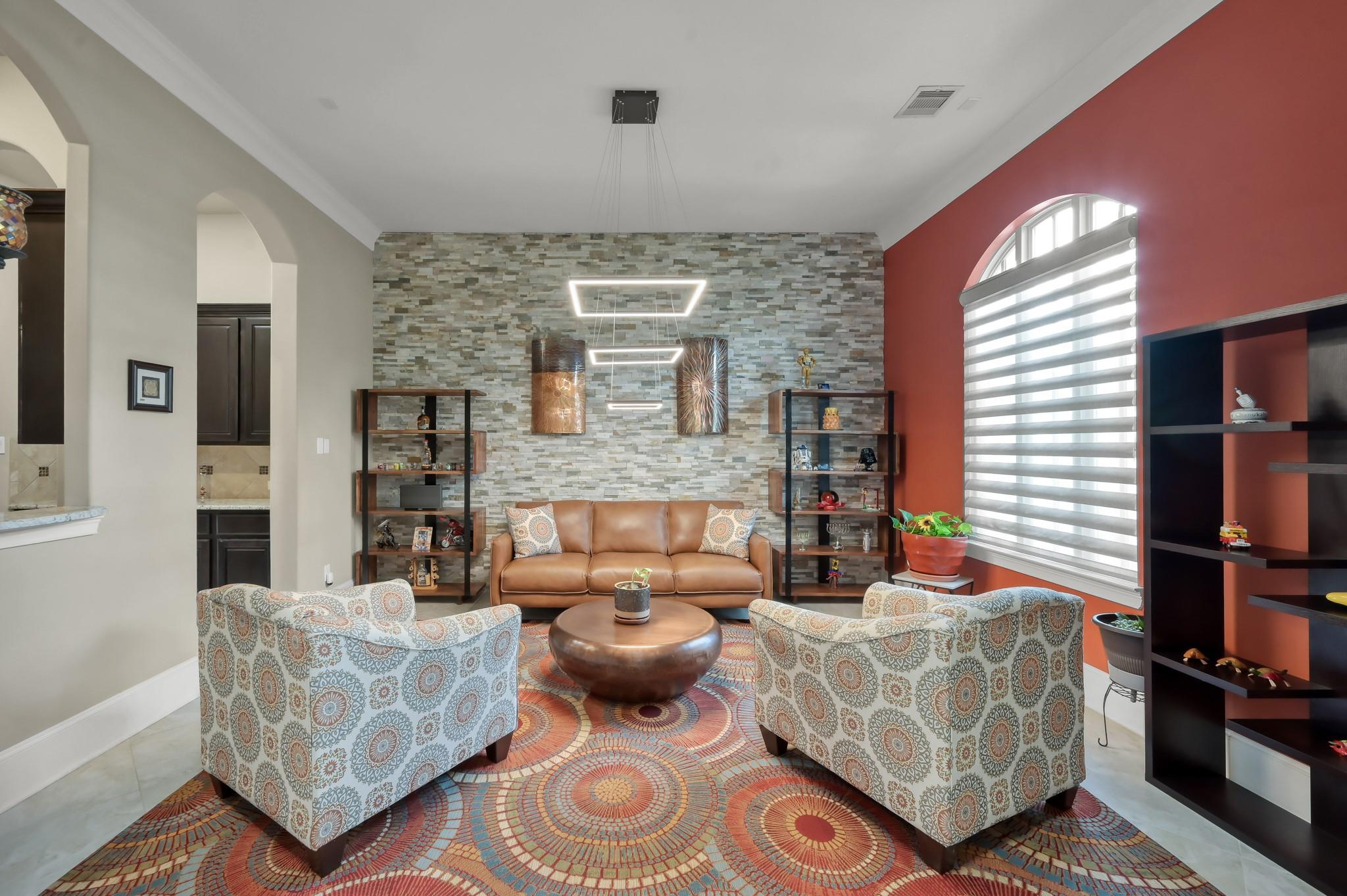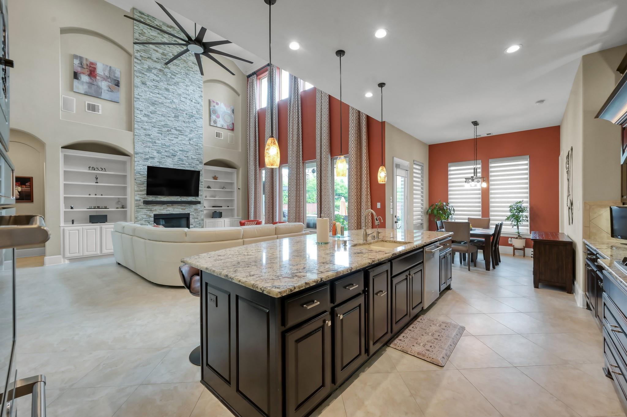 Located in the desirable Liberty Branch section of Creekside, this stunning 4,800-square-foot stucco home with a classic tile roof offers luxury and functionality at every turn. Featuring five bedrooms and five and a half baths, each bedroom includes its own private en-suite for ultimate comfort. Two bedrooms are conveniently located downstairs, ideal for guests or multi-generational living. Inside, soaring two-story ceilings in the entry and living areas create a bright, open feel, while rich wood and tile flooring adds warmth throughout most of the home. The living room is highlighted by a dramatic two-story stone fireplace. Step outside to your private oasis with a pool, spa, and fully equipped outdoor kitchen, perfect for entertaining. Additional upgrades include a water softener, water filtration system, central vacuum, and Generac generator. A three-car garage and beautifully upgraded landscaping complete this exceptional home.