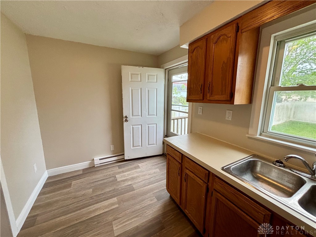 Charming and move-in ready, this two-bedroom home offers comfort, style, and a long list of recent updates throughout. Step onto the inviting covered front porch - perfect for relaxing - and into a spacious living room that flows seamlessly into the kitchen, featuring updated cabinetry and a functional layout. Both bedrooms are generously sized and include ample closet space. The large bathroom has been completely refreshed with a new stool, vanity, cabinetry, lighting, and convenient washer and dryer hookups. Recent improvements include all complete interior painted, (walls, trim, interior doors & ceilings.) new flooring throughout, new trim, new interior doors, new modern ceiling fans, and new electric baseboard heaters. A mini-split system provides efficient additional heating and cooling for year-round comfort. Outside, you'll find a large backyard enclosed with a vinyl privacy fence - ideal for entertaining, pets, or simply enjoying your own private outdoor space. This home is a great opportunity for anyone looking for updated, low-maintenance living.