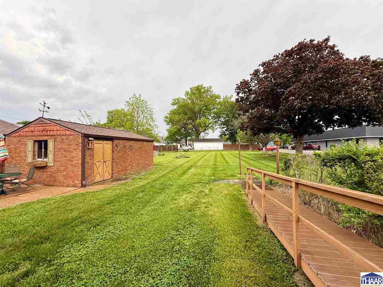 Three LOTS! 0.72 of an acre Beautiful brick 3-bedroom, 2-bath home offering space, character, and functionality. Features include a full basement, 2-car detached garage, and multiple outdoor living areas with two covered porches and a large patio - ideal for entertaining. Additional amenities include a workshop and outbuilding for extra storage or hobbies. Interior highlights showcase crown molding, quality woodwork, hardwood floors, abundant cabinetry, and a spacious walk-in closet. Recent updates include a new roof and gutters. Move-in ready and well-maintained this property offers both comfort and versatility.