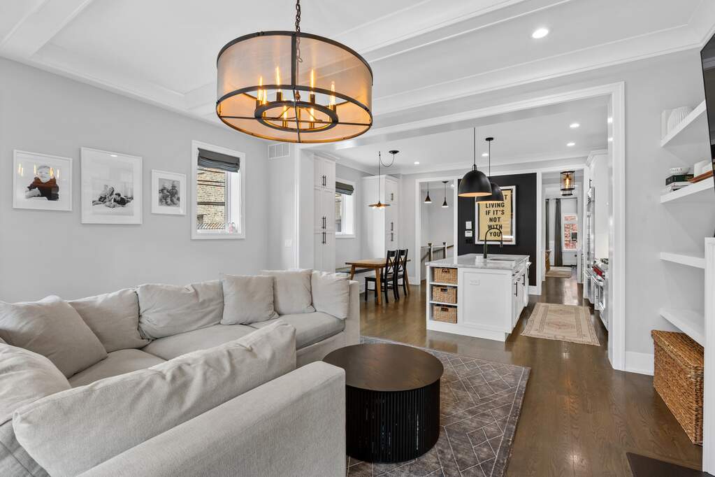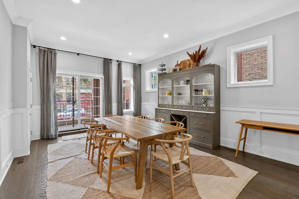 Absolutely exceptional 4 bed / 2.1 bath duplex-down nestled on a picturesque, tree-lined street in the heart of Lincoln Park. This meticulously upgraded home blends timeless elegance with modern comfort, featuring bespoke millwork, custom built-ins, and beautifully organized closets throughout. The sun-drenched main level is anchored by rich oak hardwood flooring and offers an ideal layout for both everyday living and entertaining. The stunning chef's kitchen is designed to impress, showcasing 42" custom white cabinetry, striking quartzite countertops, a Sub-Zero French door refrigerator, Wolf range, and a fully appointed butler's pantry with wet bar and wine refrigeration-seamlessly connecting style and function. The lower level is dedicated to a serene bedroom retreat, with radiant heated floors throughout. The luxurious primary suite offers a spa-inspired bath featuring a large steam shower with bench, Waterworks rain and handheld fixtures, dual vanity, and a private water closet-creating a true sanctuary feel. Outdoor living truly sets this home apart, with three private spaces including an incredible garage rooftop deck outfitted with a pergola-perfect for summer evenings, hosting, or simply unwinding. Walk A+ rated Alcott Elementary and all Lincoln Park has to offer!