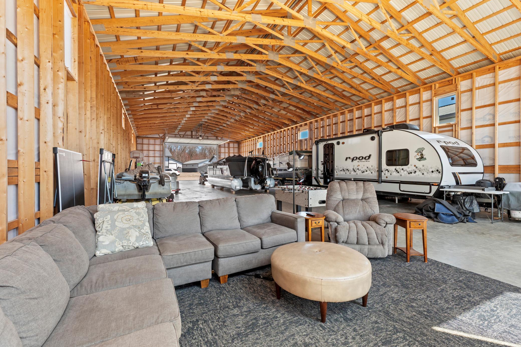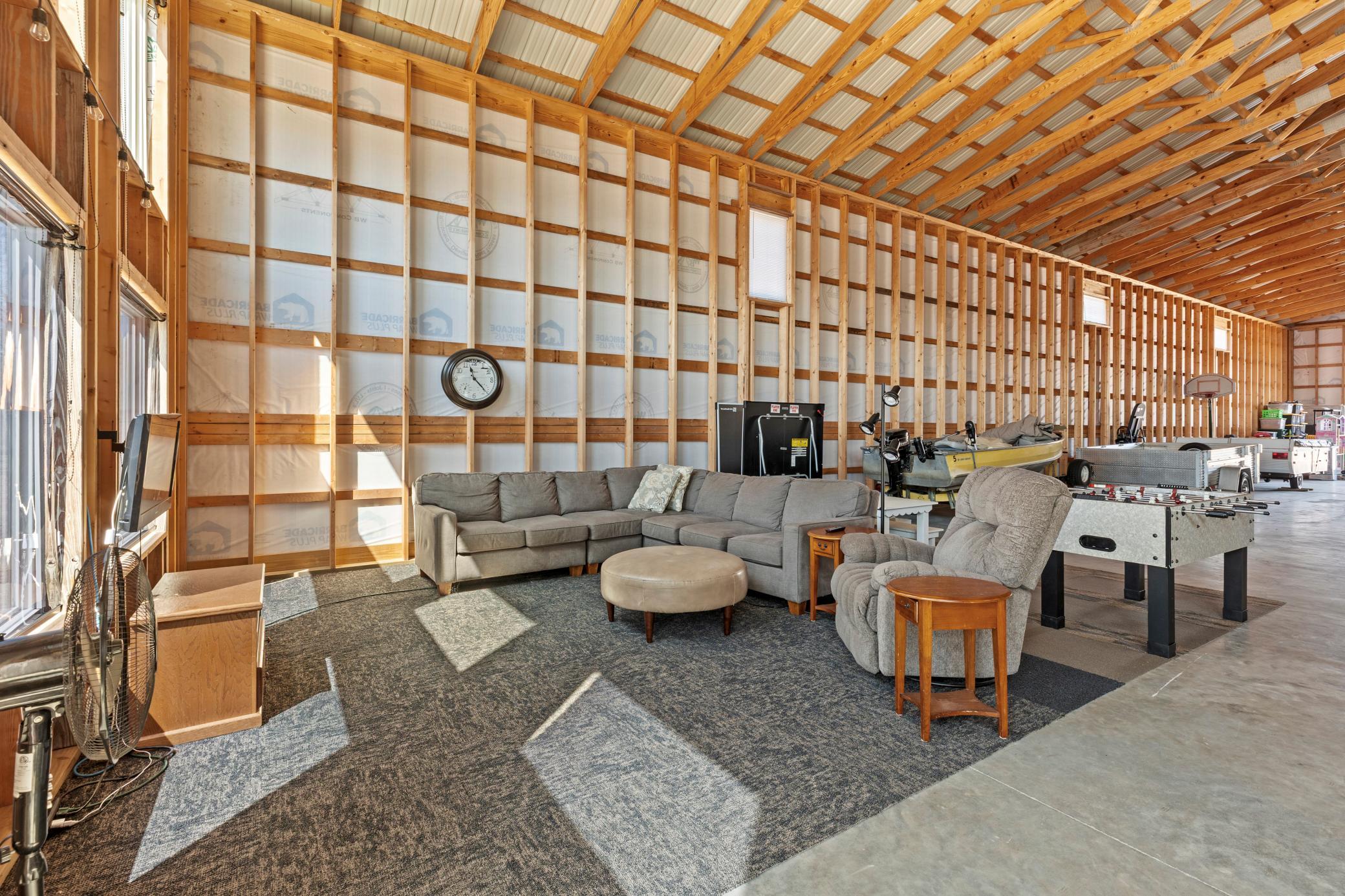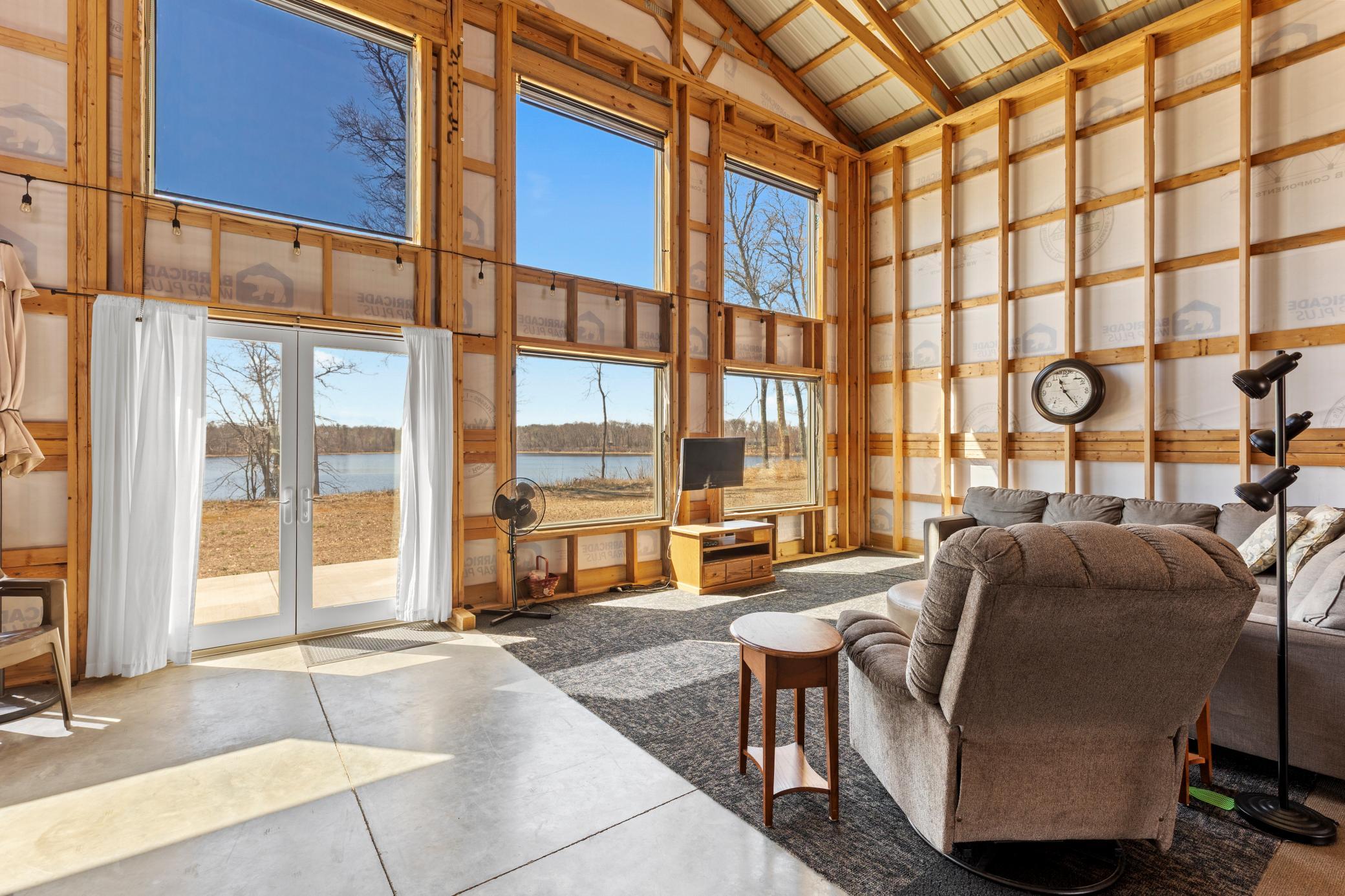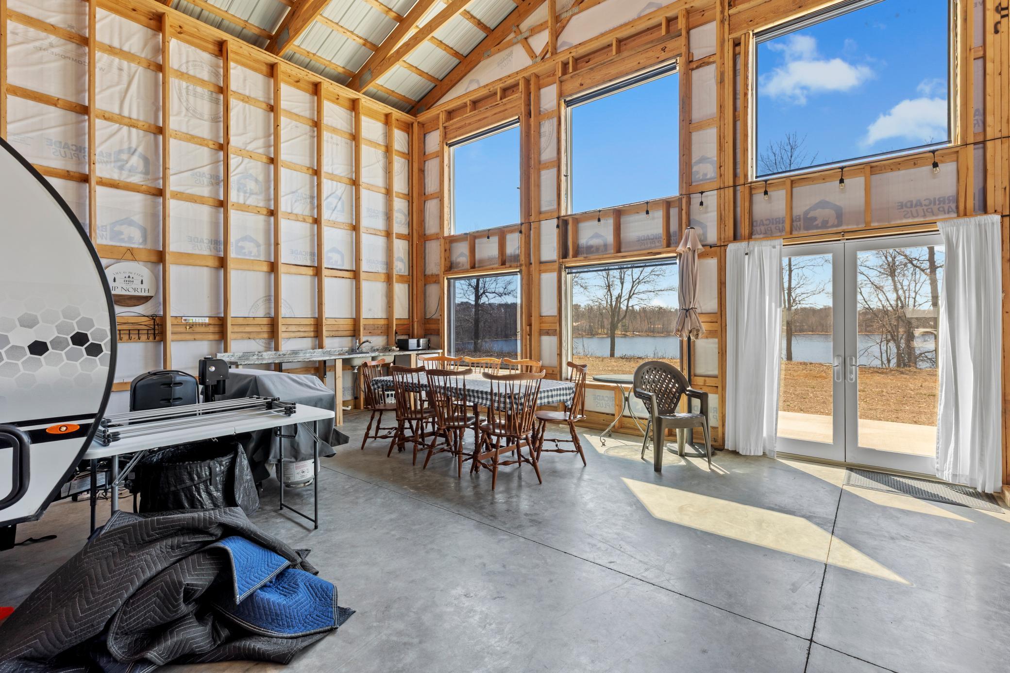 Luxury barn dominium on Moburg lake in the Lakeview Storage association.Wonderful opportunity for you to finish your 4,000 square foot building to your specifications. Buildings are plumbed for in-floor heat, floor to ceiling Marvin windows in the gable end, 14x 20 foot overhead door, snow removal, lawn-care, wash bay and clubhouse included. Owner has wired, plumbed and brought water in for RV hookup inside along with solar shades on lake facing windows
