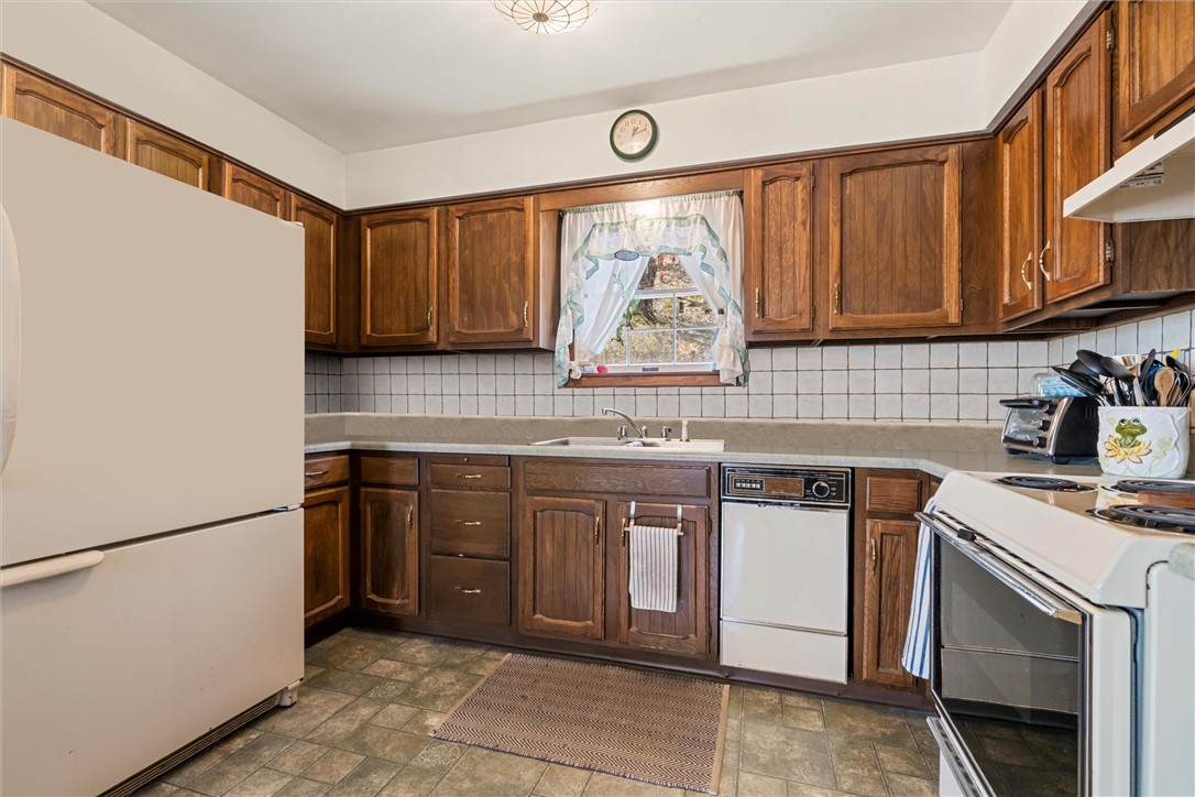 Welcome to 1242 La Belle Vue Road in Allegheny Township - a charming Cape Cod-style home nestled on 1.6 acres of partially wooded property, offering both privacy and convenience. This 3-bedroom, 2 full bath home features a spacious and functional layout designed for comfortable living. The large family room is filled with natural light and anchored by a cozy wood burner, creating the perfect space to relax year-round. The centrally located kitchen offers classic wood cabinetry and easy access to the formal dining room - ideal for hosting family gatherings and special occasions. The main level includes a generously sized primary bedroom and a full bathroom, providing the convenience of first-floor living. Upstairs, you'll find two additional large bedrooms and a second full bathroom, offering plenty of space for family or guests. Step outside to enjoy the expansive rear deck, which overlooks the peaceful wooded portion of the property - perfect for entertaining or simply enjoying the outdoors. A 2-car attached garage and ample off-street parking ensure ease of access and plenty of room for visitors. The basement features high ceilings and presents a blank canvas for the new owner - whether you envision a finished family room, home gym, or additional storage space. Built in 1983, this home combines classic character with endless potential. Don't miss the opportunity to make this serene property your own!