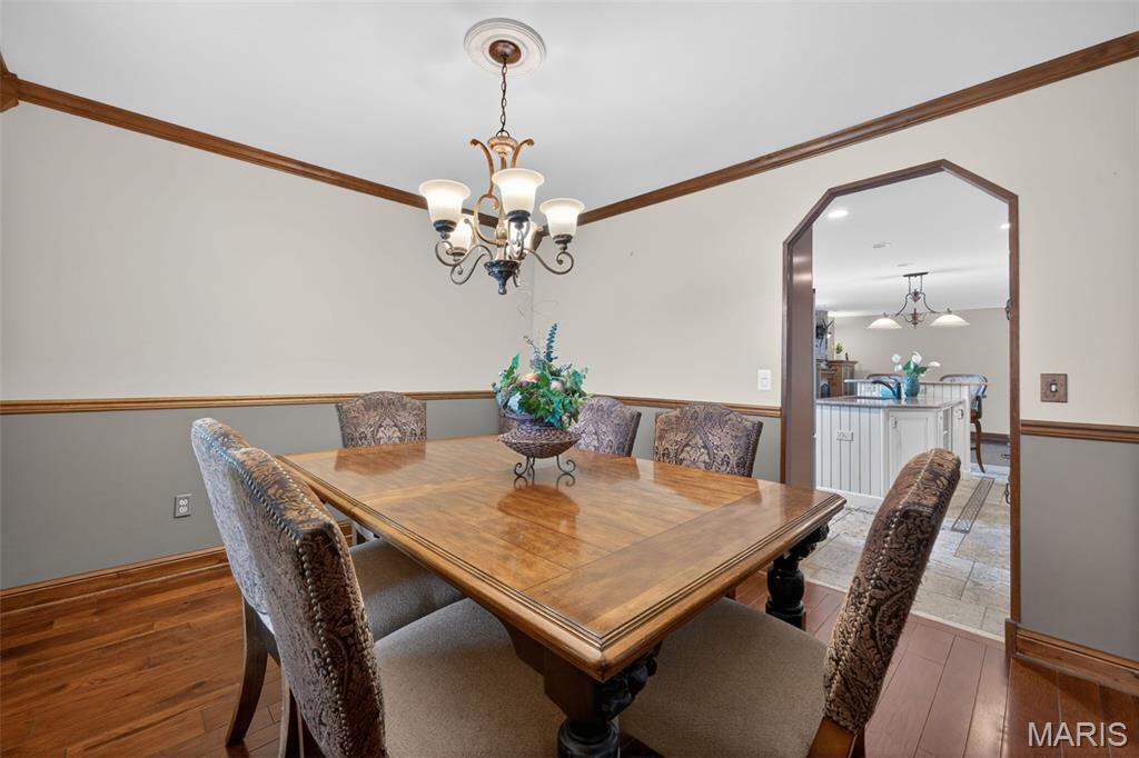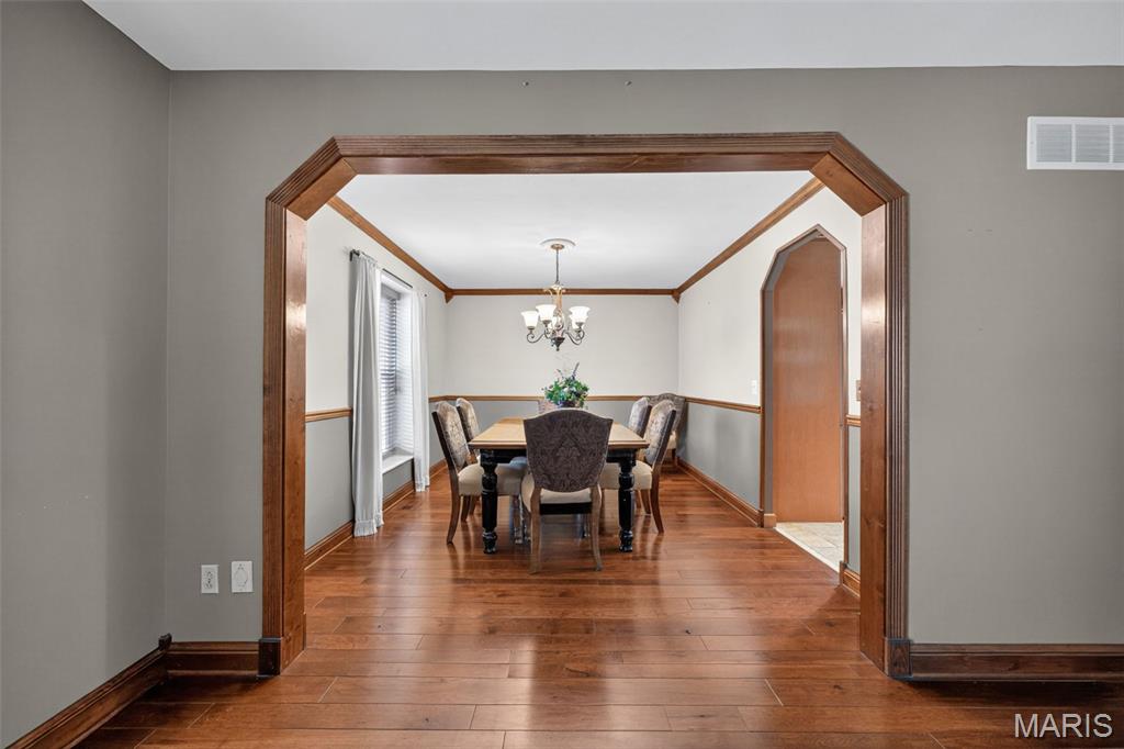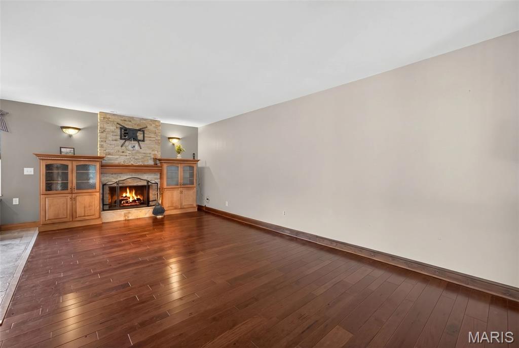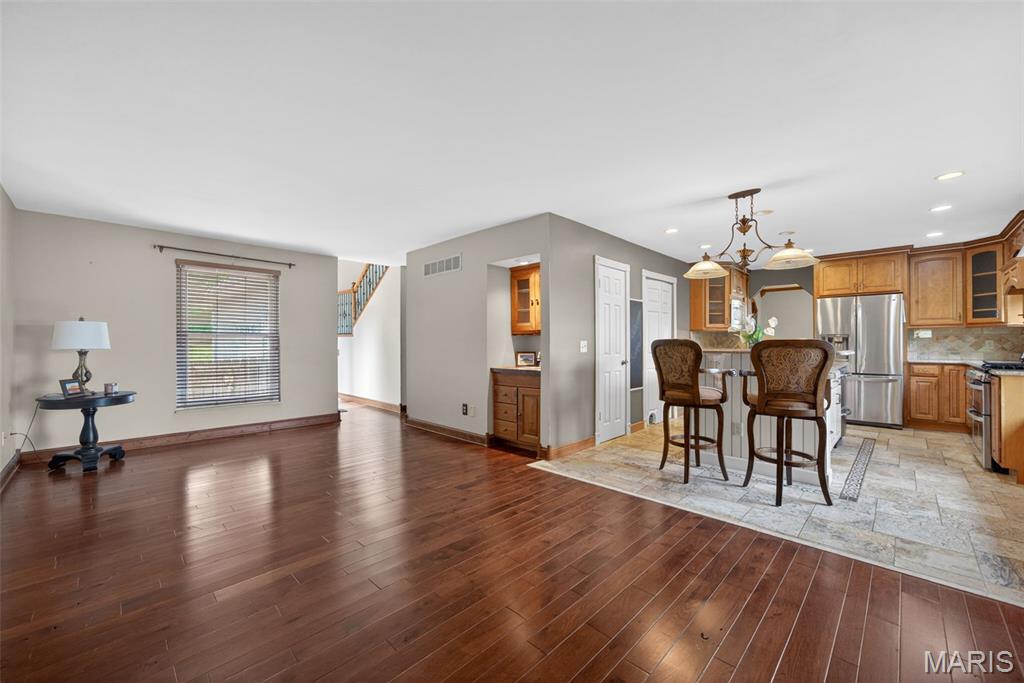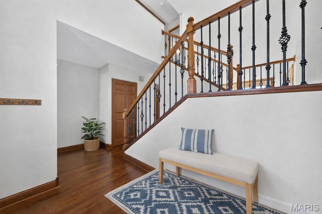 Welcome home to this beautifully updated 4-bedroom, 2.5-bath two-story in desirable St. Peters! This stunning residence blends timeless charm w/ modern upgrades, offering exceptional comfort &style throughout. The gourmet kitchen features custom cabinetry w/ decorative lighting, undermount lighting, ss appliances, a refrigerator that stays, double ovens, a rare double dishwasher & a spacious walk-in pantry. Travertine tile flooring & a charming window bench w/ additional storage complete the space. Hickory floors flow throughout the main level, where you'll also find a formal dining room adorned w/ crown molding & chair rail, & a cozy family room showcasing a wood-burning fireplace w/ gas starter, stacked stone surround, custom cabinetry, & a wet bar - perfect for entertaining. Step outside to enjoy the patio or deck overlooking the solar-heated above-ground pool. Relax beneath the custom pergola, beautifully accented by a personalized grapevine from Massachusetts, that flourishes each summer. The upper level offers 4 spacious bedrooms w/ hickory flooring & ceiling fans, including a serene primary suite w/ an updated ensuite featuring a stunning walk-in shower. The hall bath is also tastefully updated. Additional highlights include main-floor laundry & a walk-out lower level w/ workbenches, a water softener, & a steam humidifier, ready for your finishing touches. Located in the sought-after Fort Zumwalt East School District, near parks, trails, the Rec-Plex & community amenities.