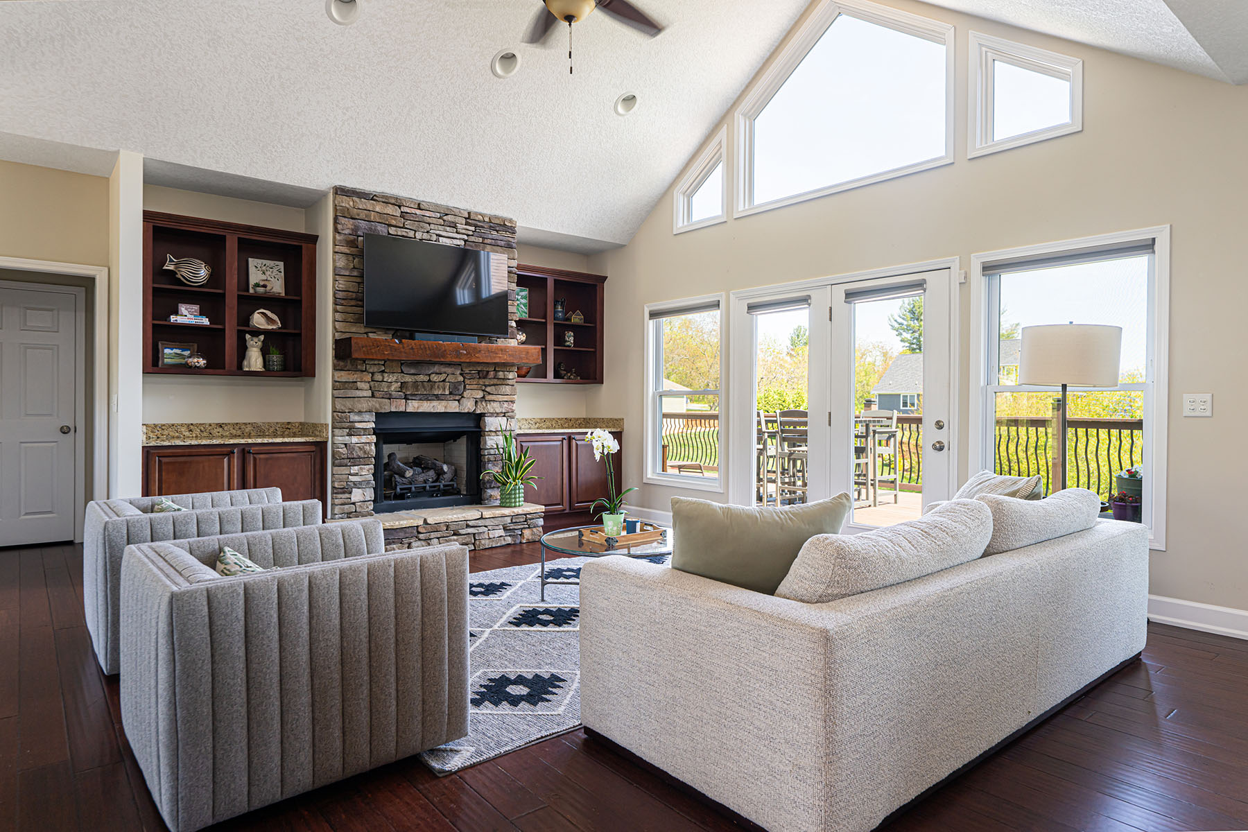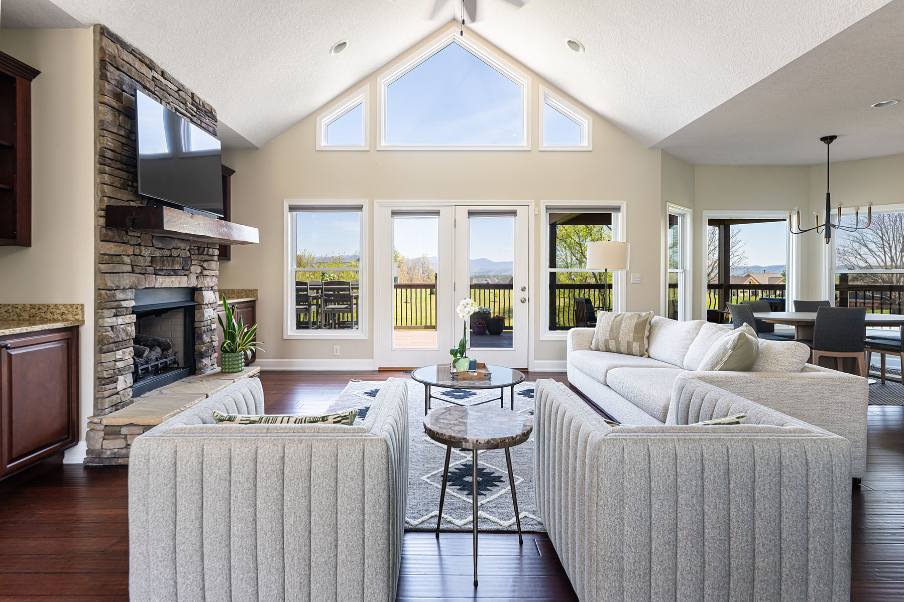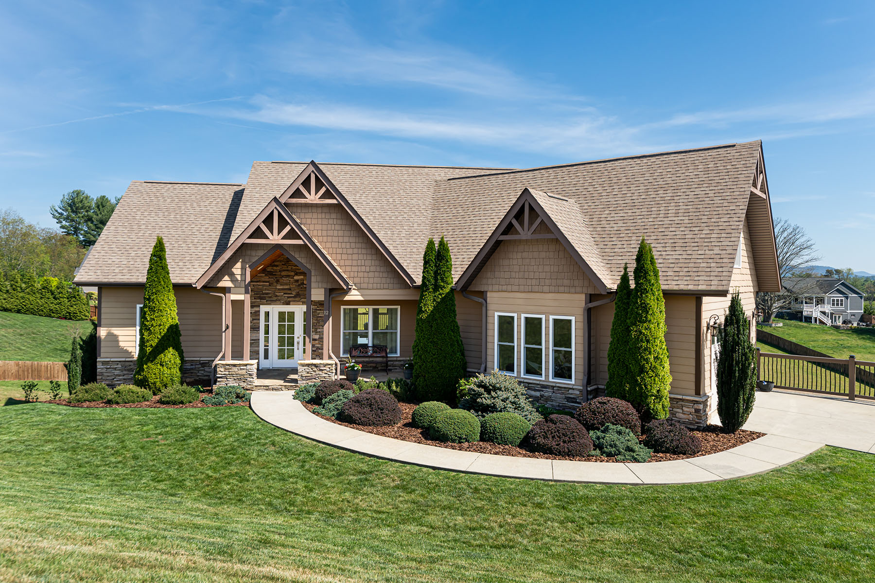 Luxury mountain living meets convenience at 12 Horizon View Lane just minutes west of Weaverville, where long-range mountain views, unforgettable sunsets and a beautifully designed floor plan create the ideal Western North Carolina retreat. Ideally just minutes from downtown Weaverville and a short drive to Asheville, this four-bedroom home offers the privacy of a peaceful mountain setting with easy access to dining, shopping and outdoor recreation. Designed for everyday living and entertaining, the open-concept main level features engineered hardwood floors, a spacious living room with gas fireplace and custom built-ins, and a light-filled kitchen with a large island, abundant cabinetry, stainless steel appliances, walk-in pantry and seamless flow to the dining area. The expansive rear deck offers covered and open-air spaces, a dedicated gas line for grilling, and incredible sunset views overlooking the rolling hills and Blue Ridge Mountains. The main-level primary suite is a private retreat with vaulted ceilings, a triple window capturing the views, and an updated en-suite bath featuring heated tile floors, a large walk-in tile shower, updated fixtures and a spacious walk-in closet. Two guest bedrooms share a full bath with tile floors and a double vanity, while the bonus room above the garage provides flexible space for a home office, gym, playroom or guest suite. The finished walkout basement adds exceptional versatility with a large recreation room, built-in bar with beverage cooler, additional guest bedroom with walk-in closet, private office space, full bath and a large workshop with double exterior doors. Outside, the lower-level gravel patio leads to a swim spa that functions as a hot tub and exercise spa, plus an outdoor fireplace for year-round enjoyment. Additional upgrades include a 2025 tankless water heater, zoned HVAC, upgraded four-bedroom septic system, whole-home water treatment system, fiber optic internet and an oversized two-car garage. Offering mountain views, sunset-facing outdoor living, flexible bonus spaces and modern updates, this luxury home is the ideal full-time residence or second home in the Asheville area.