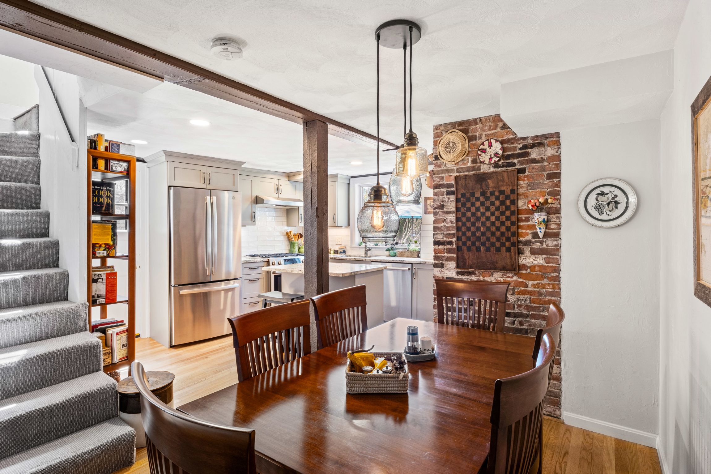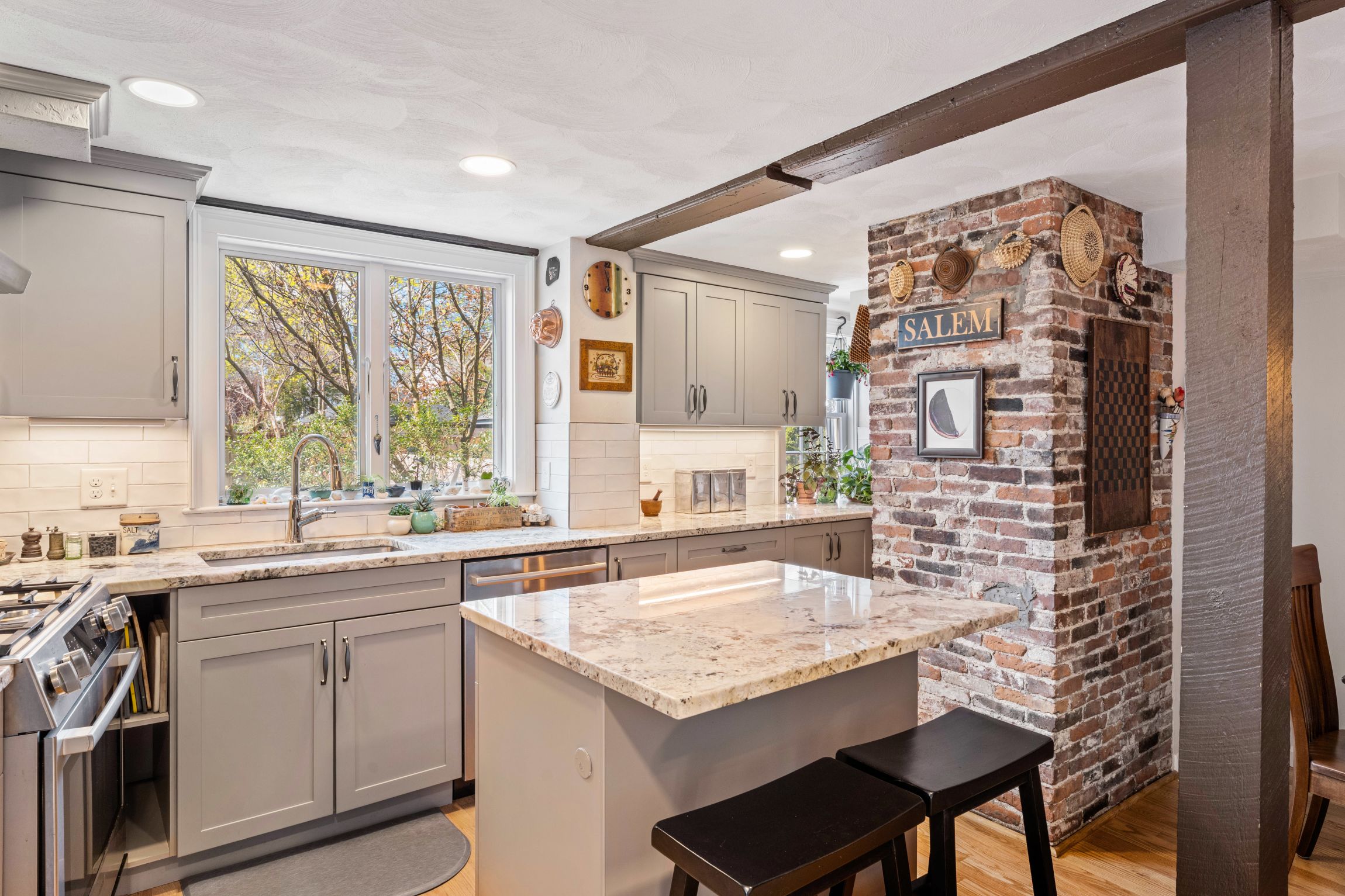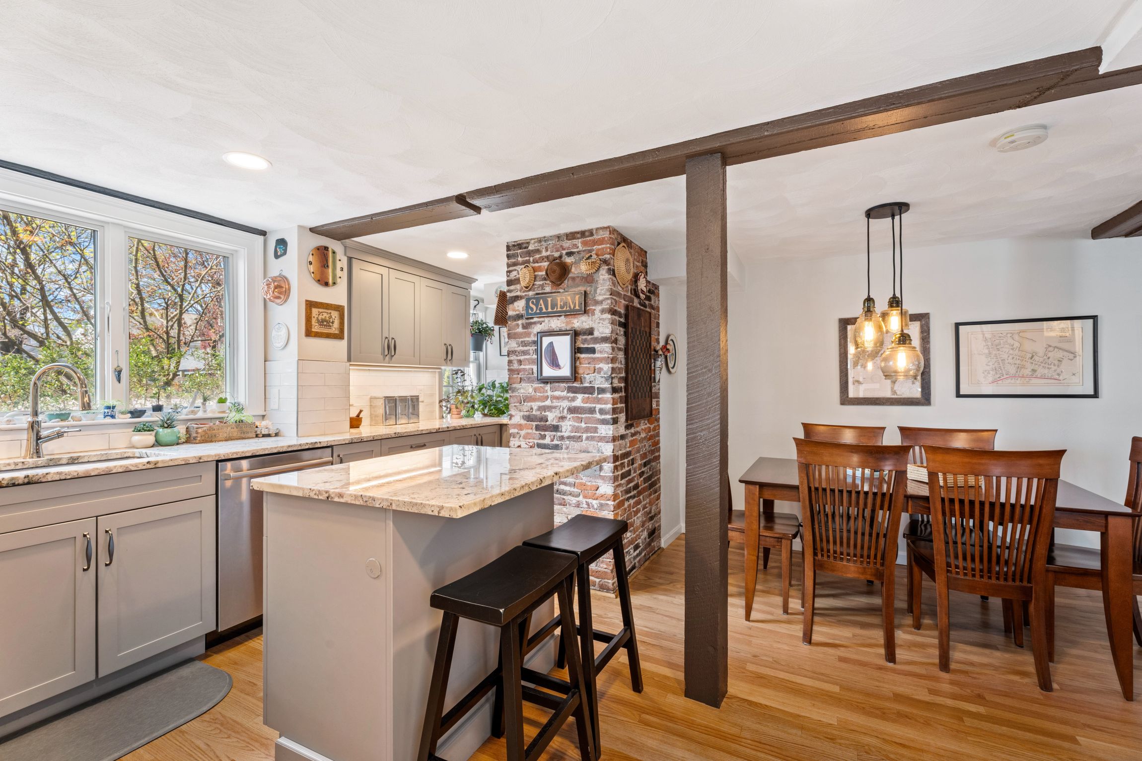 Such a unique and wonderful opportunity to own a part of history at this incredibly convenient Salem location. Welcome to the Enoch P. Fuller home, built in the 19th century and located in the historic McIntire District. This spacious home offers three levels of living space, mixing old world post and beam charm with thoughtful modern updates like a fully redesigned custom kitchen, spa like primary bath, and central AC. The private, fenced in yard is easily accessed from the living space, with brick paver walkway and patio, loads of sunlight, and serene Koi pond with waterfall. Recent projects include: exterior siding, restoring and maintaining the original, historic look (2024, winner of 2025 Salem Preservation Award), roof (2021), chimney repointed (2026), HVAC (2020), kitchen (2022), primary bath (2019)... this home truly shows pride of ownership. Additional features include gas fireplaces, loads of basement storage, bonus office nook and thoughtful closet design.