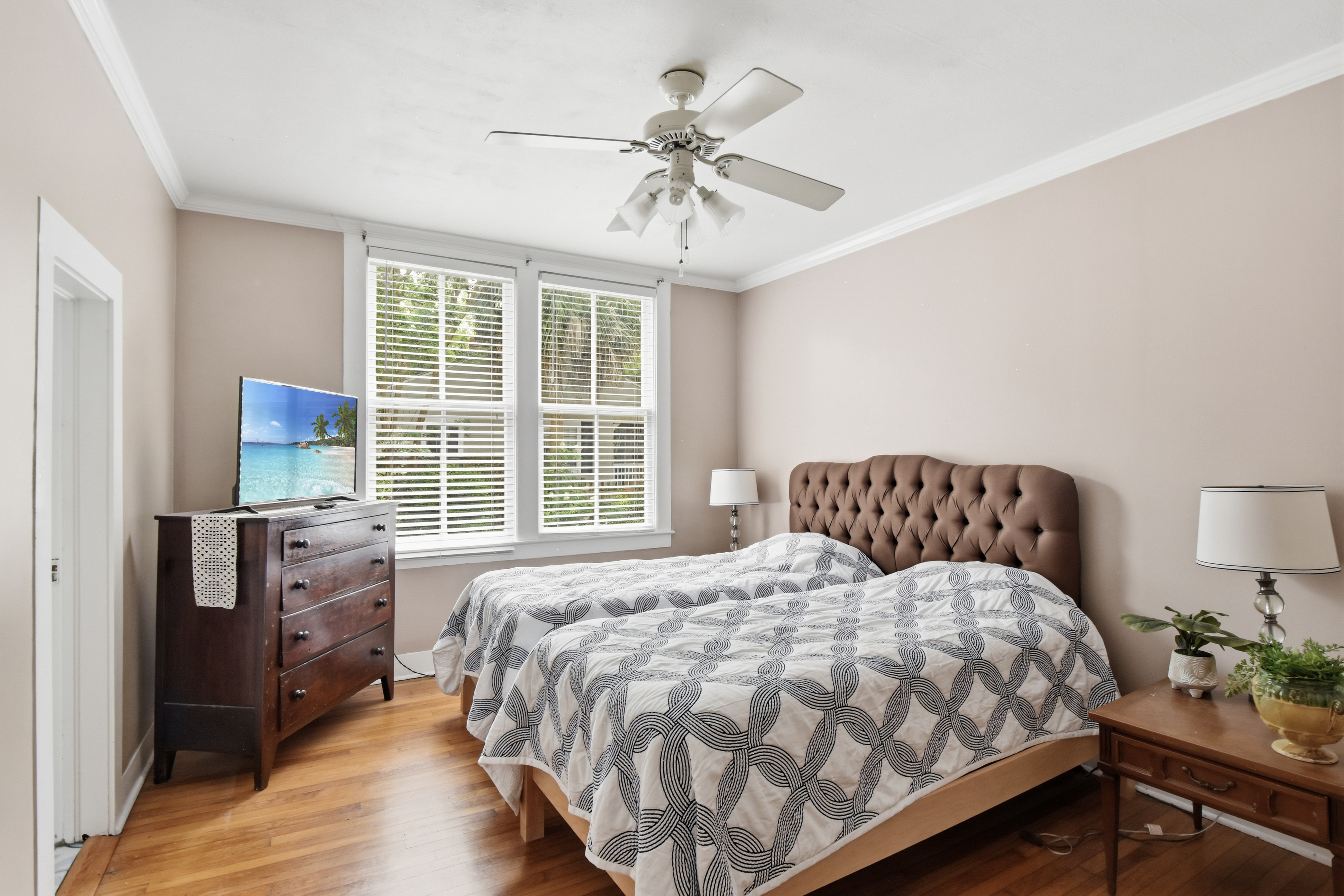 Welcome to a remarkable opportunity in the heart of historic Brunswick! This spacious 4-bedroom, 2-bathroom home sits on a generous double lot, offering endless potential for the savvy buyer ready to add their personal touch and build instant equity. Step inside and you'll immediately notice the abundant natural sunlight that floods the living spaces, creating a warm and inviting atmosphere throughout. The kitchen features beautiful quartz countertops, blending modern appeal with timeless charm. The thoughtful layout includes a convenient primary bedroom on the main level — perfect for everyday living — while three additional bedrooms, a full bath, and a bonus living space upstairs provide plenty of room for family, guests, or a dedicated home office. Outside, the property truly shines. A large back deck sets the stage for weekend cookouts, morning coffee rituals, and relaxed evenings under the Georgia sky. The double lot offers extraordinary outdoor space with room for gardening, play areas, or future expansion. The location is equally impressive. Frederica Square and Wright Square are just a stroll away, while Glynn Academy and Adams Meat Market keep daily conveniences close at hand. Brunswick's charming coastal culture, rich history, and vibrant community make this neighborhood a wonderful place to call home. At this price point, the renovation potential and generous lot size make this property an investment worth exploring. Schedule your private showing today!