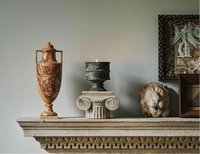 法国香水品牌 L’Artisan Parfumeur 的琥珀球香薰于 1976 年推出,至今仍是备受追捧的艺术品,以其温暖萦绕的琥珀香气而闻名。最近,伦敦设计工作室 Moro Dabron 与古董壁炉公司 Jamb 合作推出了一系列可重复填充的青铜烛台,灵感来自庞贝古城的壁画。