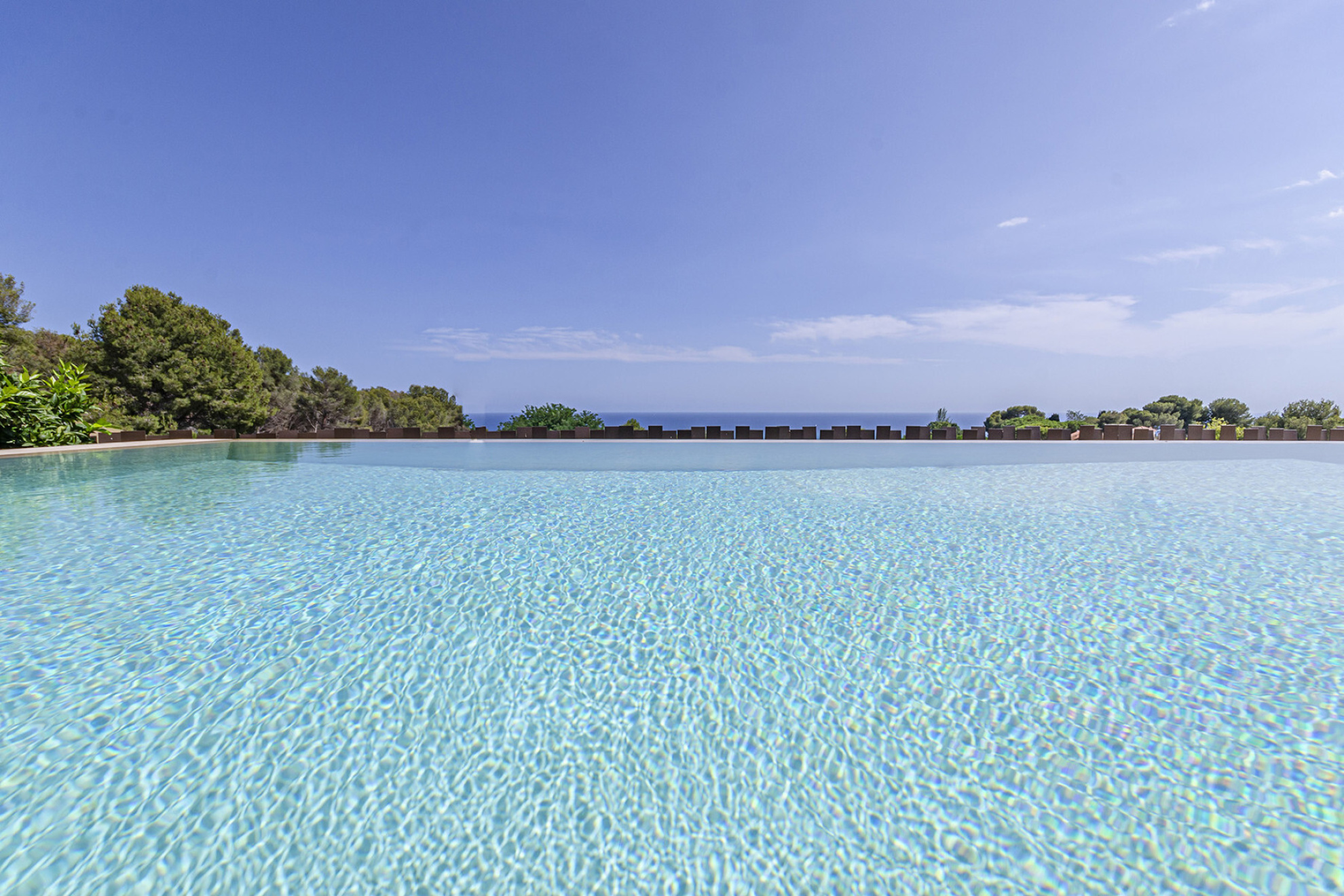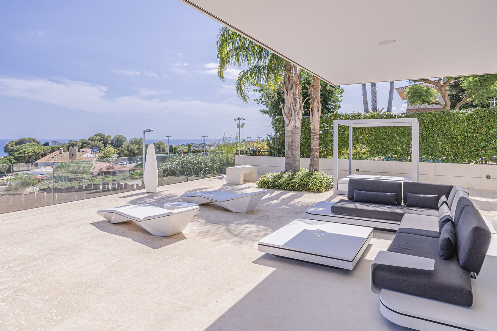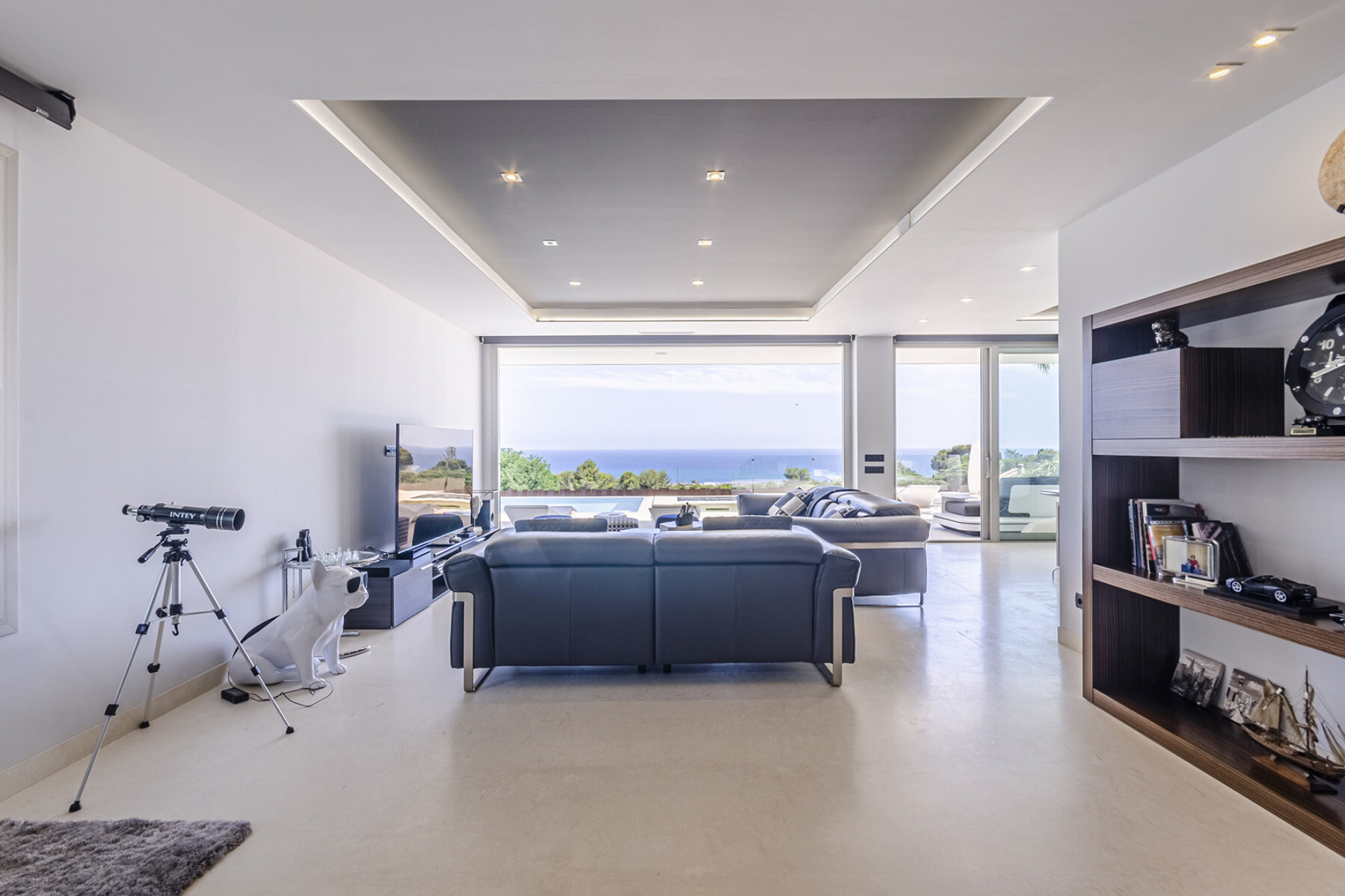 Located in one of the most premier neighborhoods of Barcelona's northern coast we find this exquisite modern design villa, overlooking the golf course and tennis club, with sensational views of the sea and direct views of Barcelona's city skyline. Unique and high quality finishes throughout, we find a clean and neutral color palate with beautiful lines, giving the home the sense of luxury and comfort combined. We enter through a custom made 5.6m wooden door, with unique lighting and an abundance of natural light. In the living area there is an automatic retractable glass wall which gives the ability for true indoor/outdoor living and entertaining. There is also a glass door elevator which reaches all levels of the home. In the kitchen we find Neff appliances with a Pando vent extractor and Santos self closing cabinet hinges, as well as high powered exhaust vents for cooking. On the same floor we have a guest suite with glass walls and access to the terrace, as well as a guest toilet and a secondary bedroom which could also be used as an office. Upstairs we find the principal suite, with views of the sea and the city skyline of Barcelona from the bed. Two secondary bedrooms with unique symmetrical design all enter onto a spacious terrace with a 2nd hot tub to enjoy the views. Below the main level there is the oversized cinema room, a full-size service quarter suite, large utility room, a spacious gym with glass walls, a panic/safe room and a large garage with big storage pantries and a unique lighting system to display the finest vehicles. The exterior patio is built for entertaining, with wiring for gas BBQ, swimming pool, hot tub and spa, and a unique canal type water system surrounding the house, which gives the sensation the home is floating. With too many qualities to list, this is a must visit home for those seeking a modern, low maintenance, impressive and comfortable villa just 20 minutes from the city center of Barcelona, in one of the most premier neighborhoods in all the northern coast. Contact us today for more details.