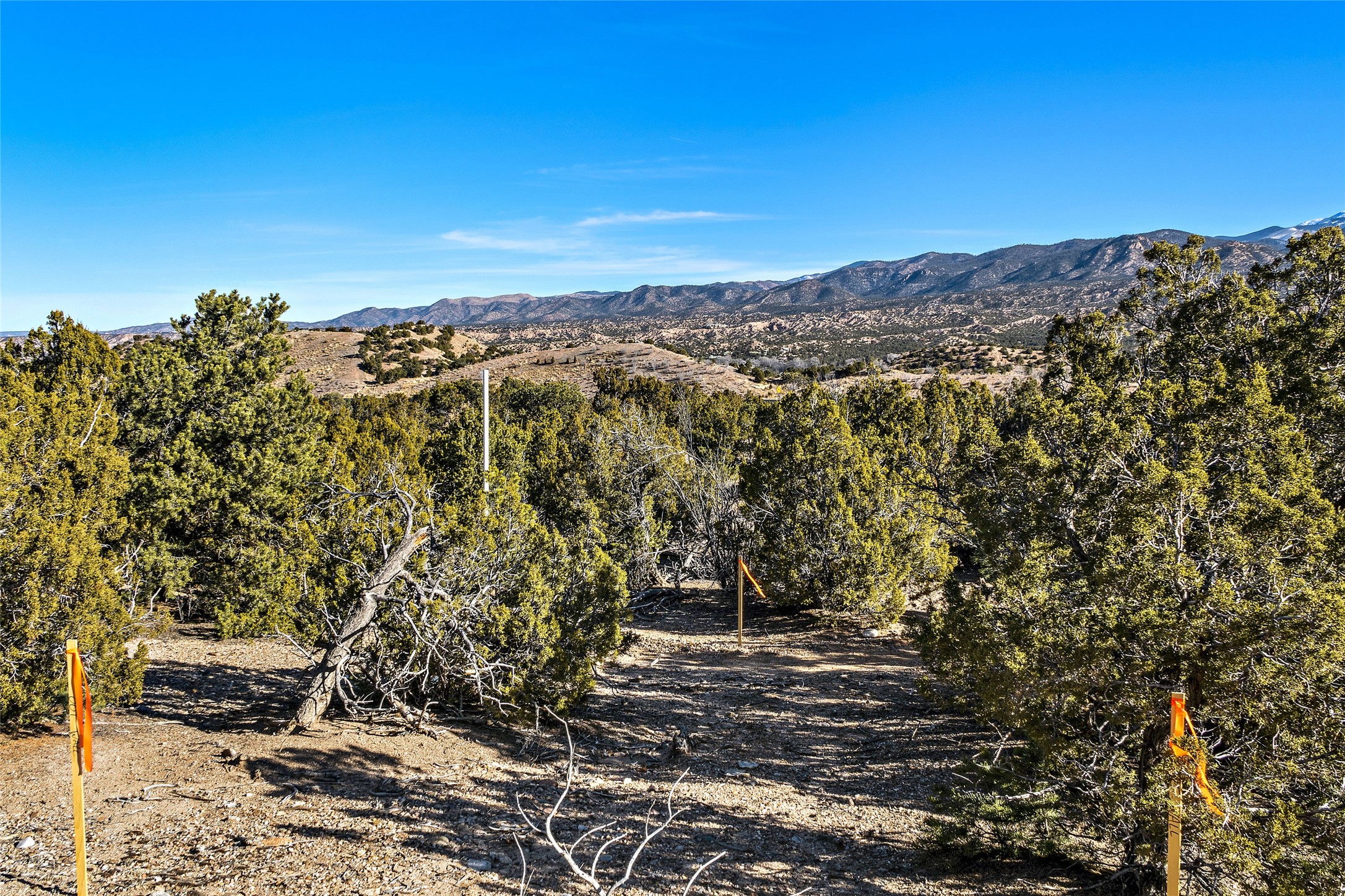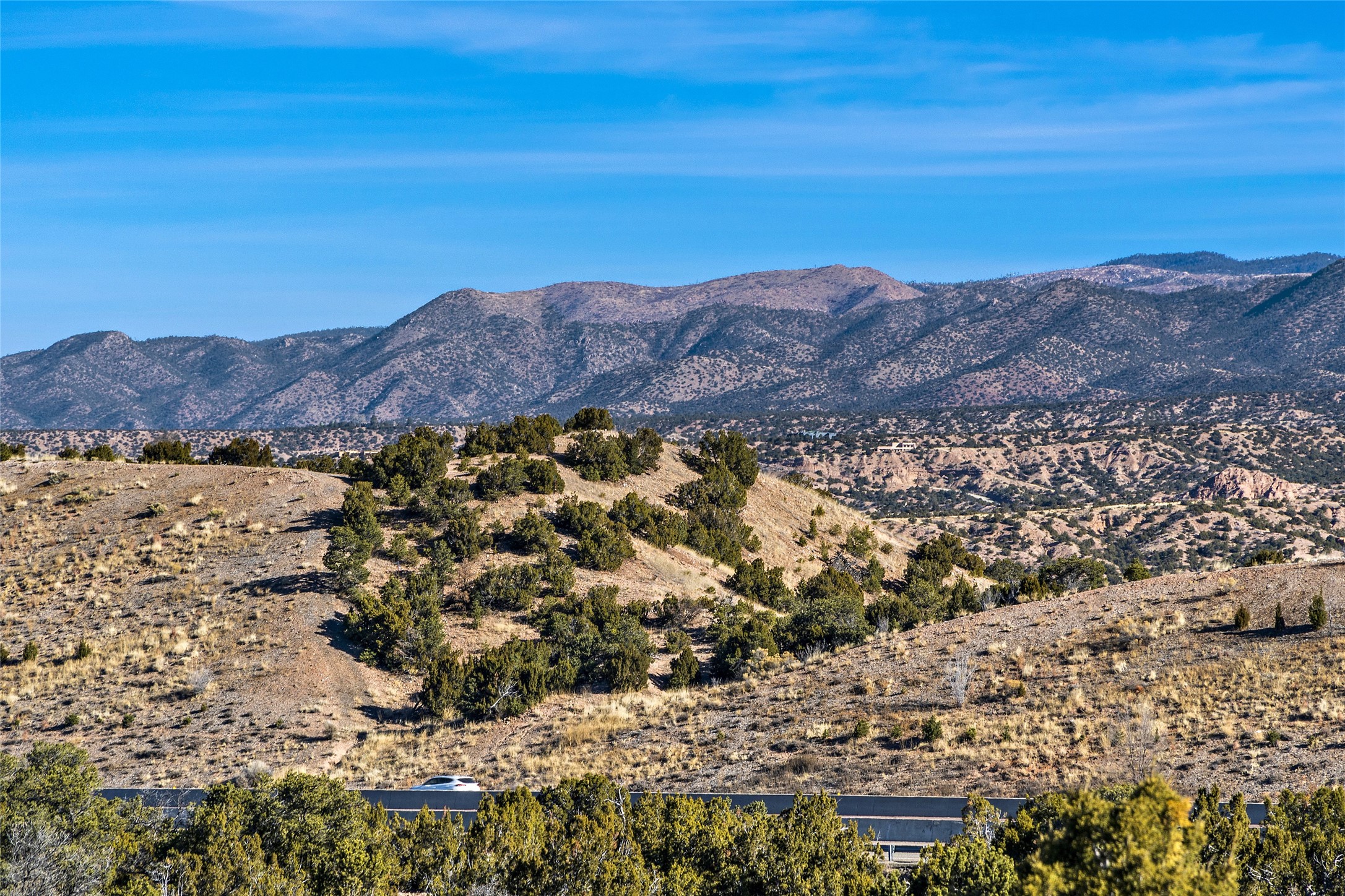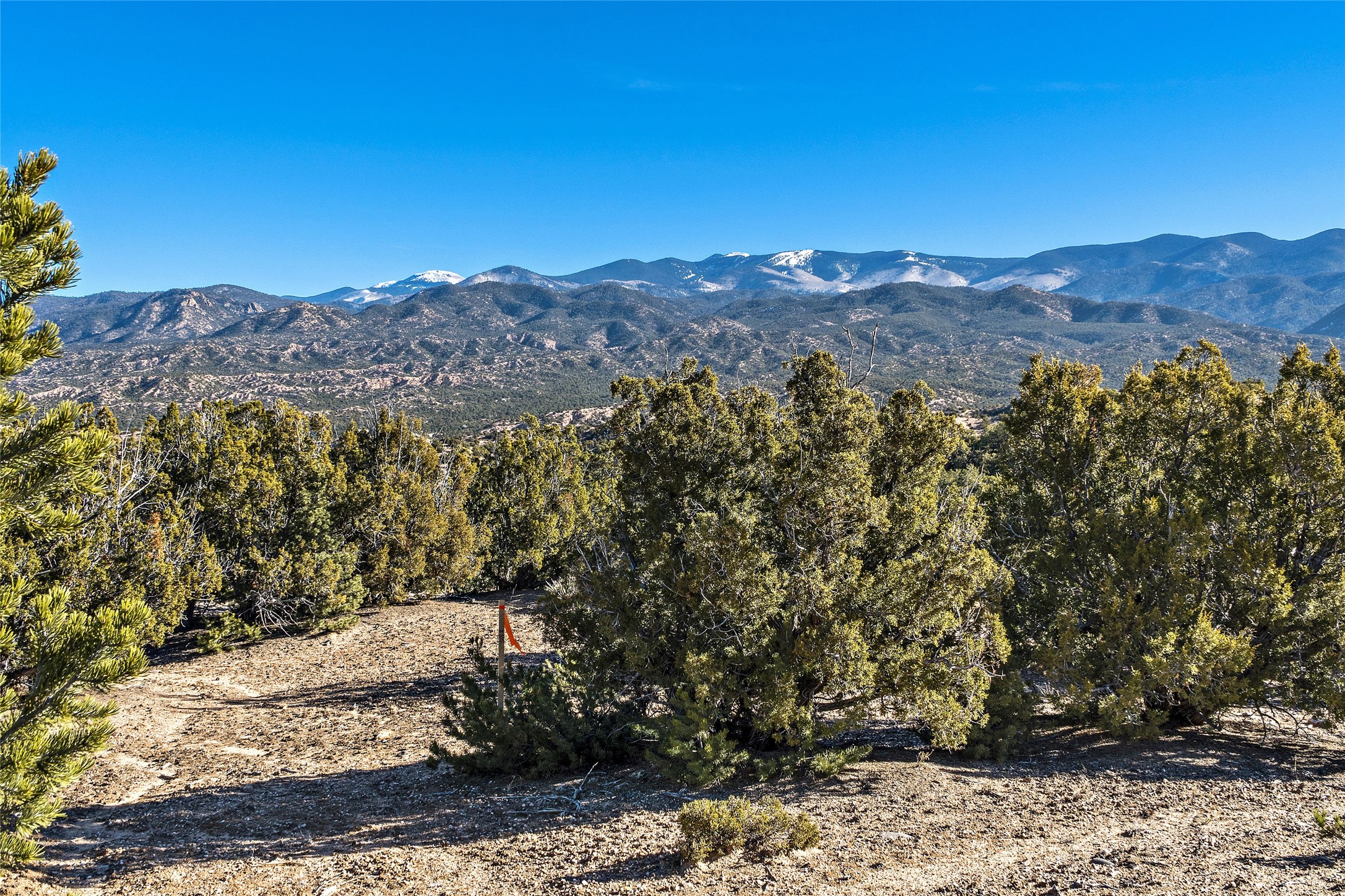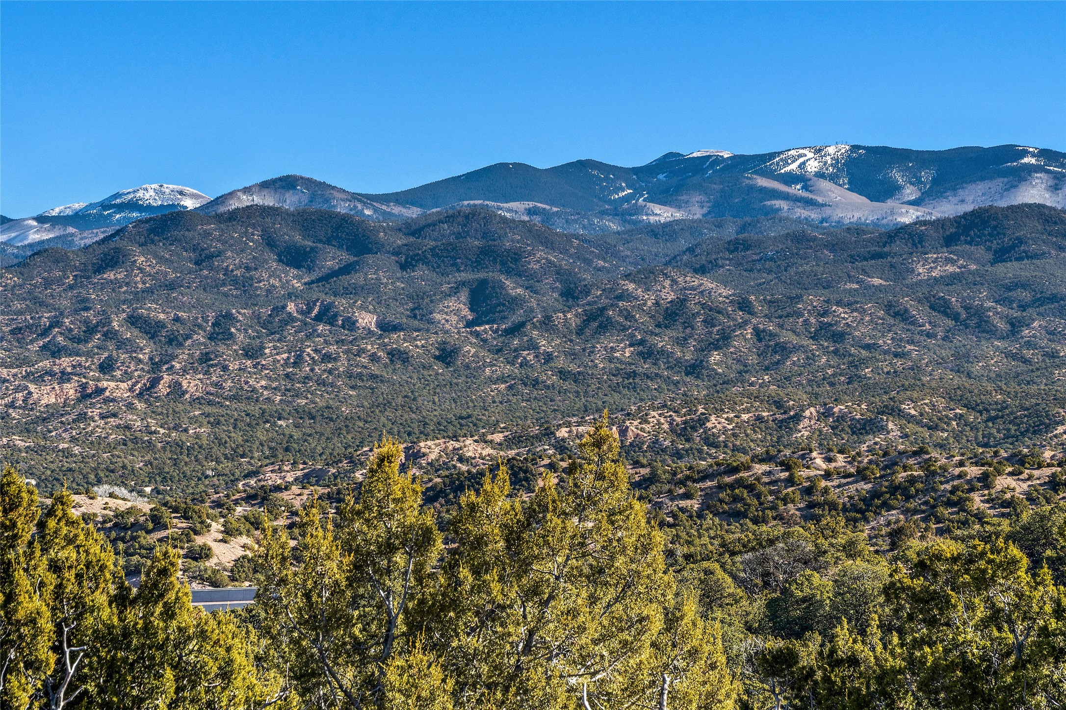 Spectacular Sangre de Cristo mountain views from this very easy, nearly level, 1 acre homesite with a large developable area. The property is offered with a full set of architectural house plans by Mathey & Associates Architects. The seamlessly designed home offers 2,600 square feet of heated living space, a large East facing portal, and 3 bedrooms and 3 baths, with an oversized 2-car garage. The plans were previously approved by the Monte Sereno Architectural Review Committee, and have been through a preliminary review by the City of Santa Fe. Choose your builder, obtain the permit, and start construction in Monte Sereno today! One level living with great views, just minutes from downtown Santa Fe, with sensible covenants and city utilities.