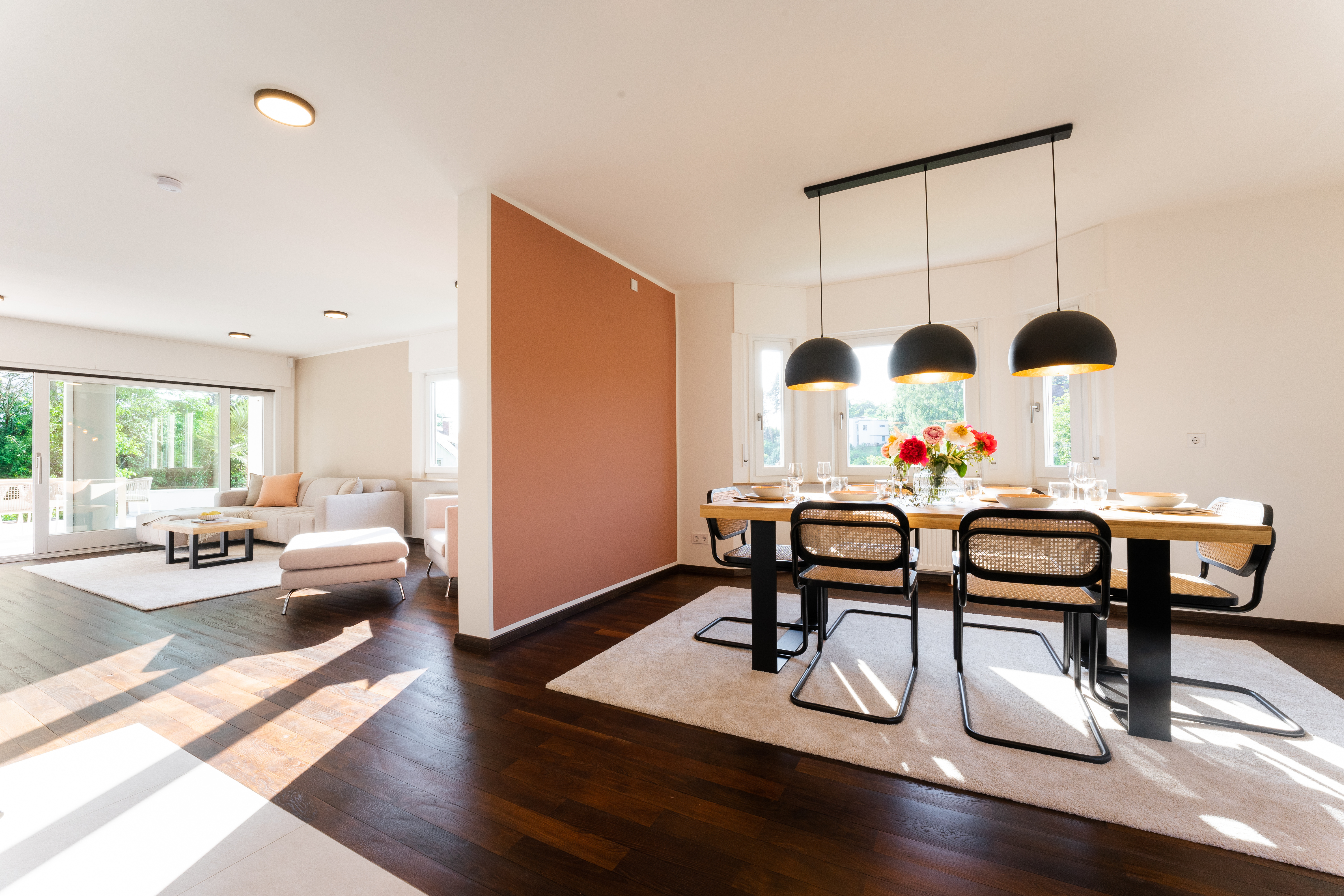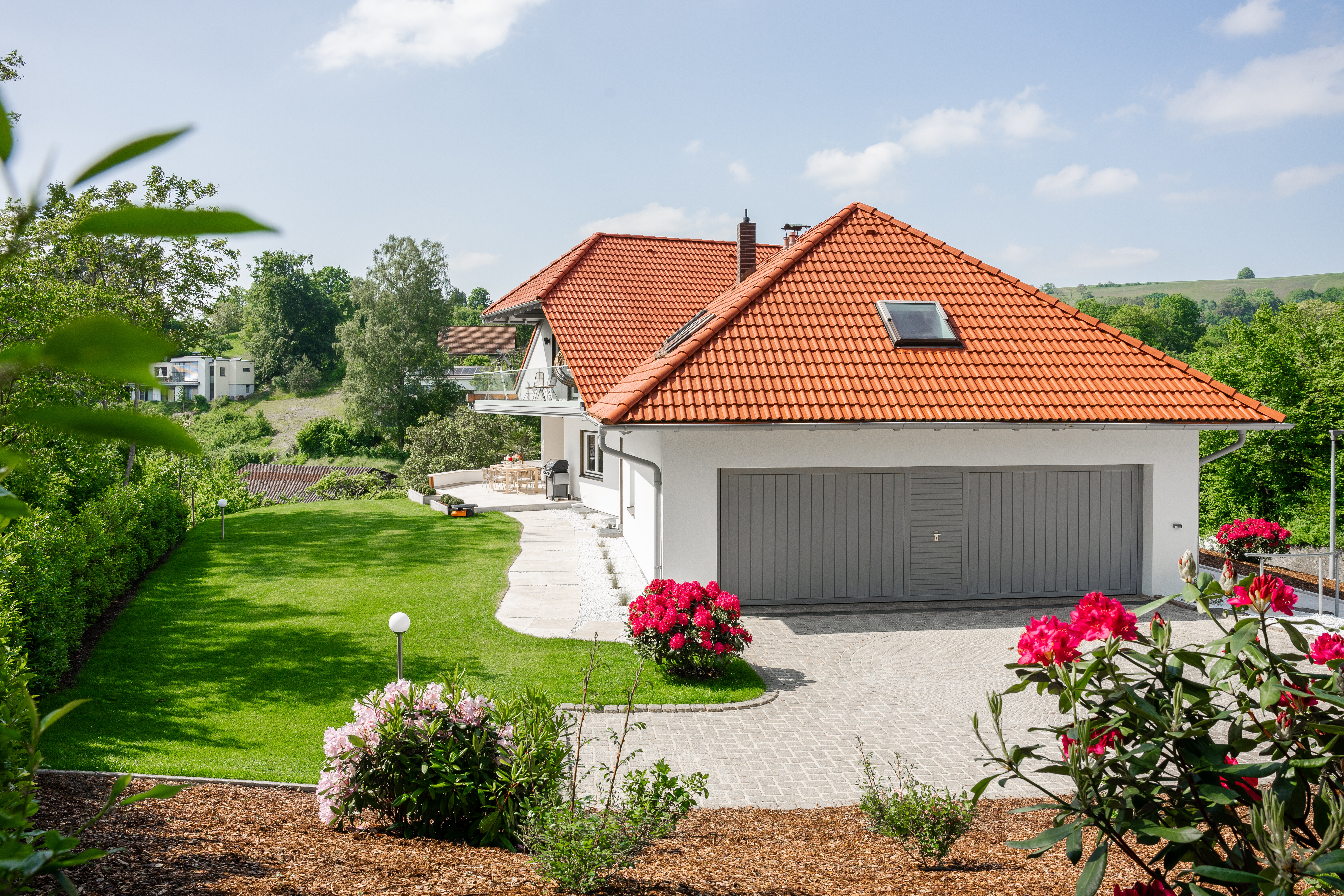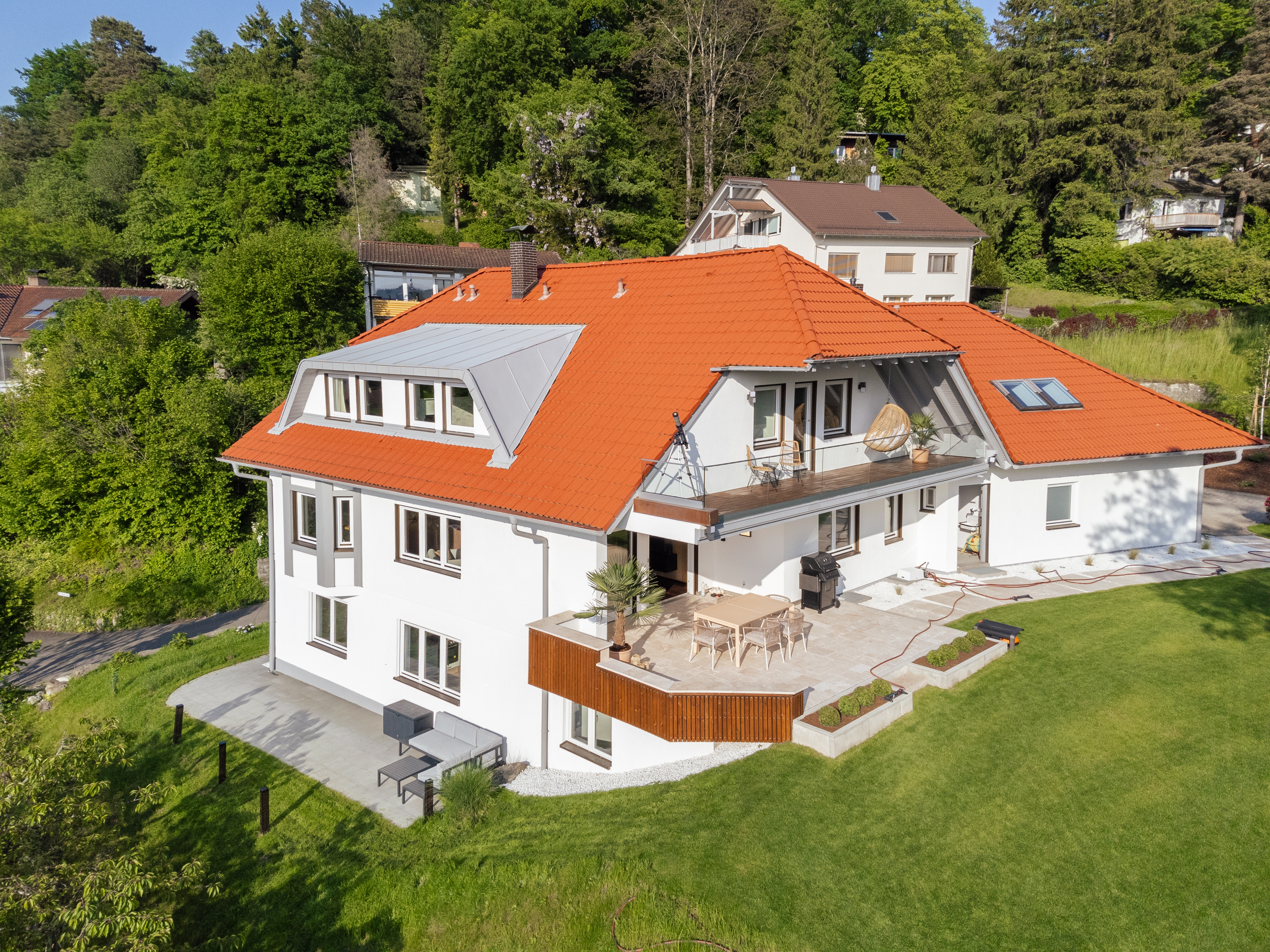 With a total of 13.5 rooms, a granny apartment, four bathrooms and six parking spaces, this property combines aesthetic design, luxury and practical amenities to create an exclusive living ambience.