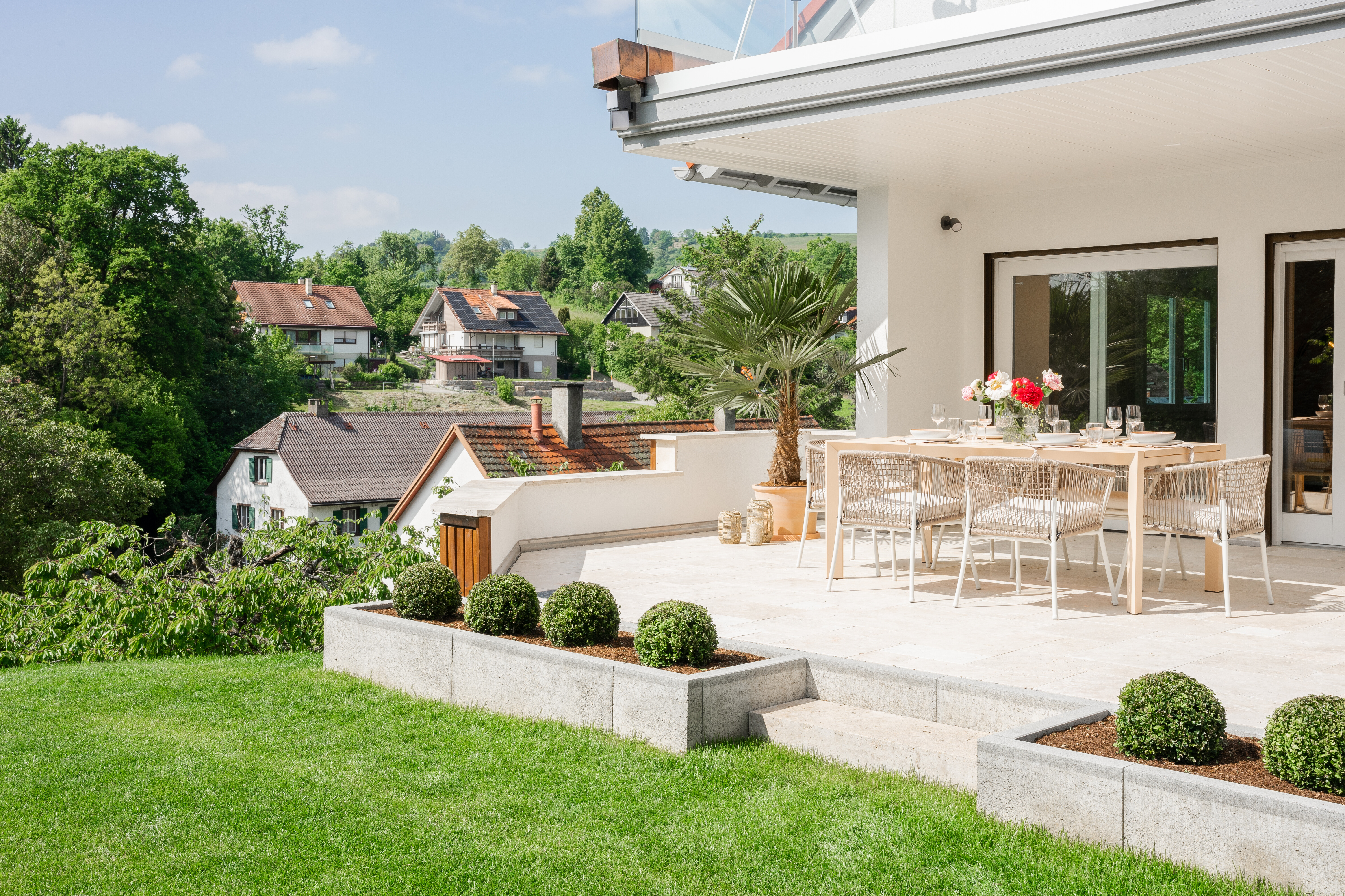 The villa with granny apartment is located in a quiet and picturesque part of Überlingen on Lake Constance. Despite the quiet location, the town center is within easy walking distance and offers numerous shopping and leisure opportunities.