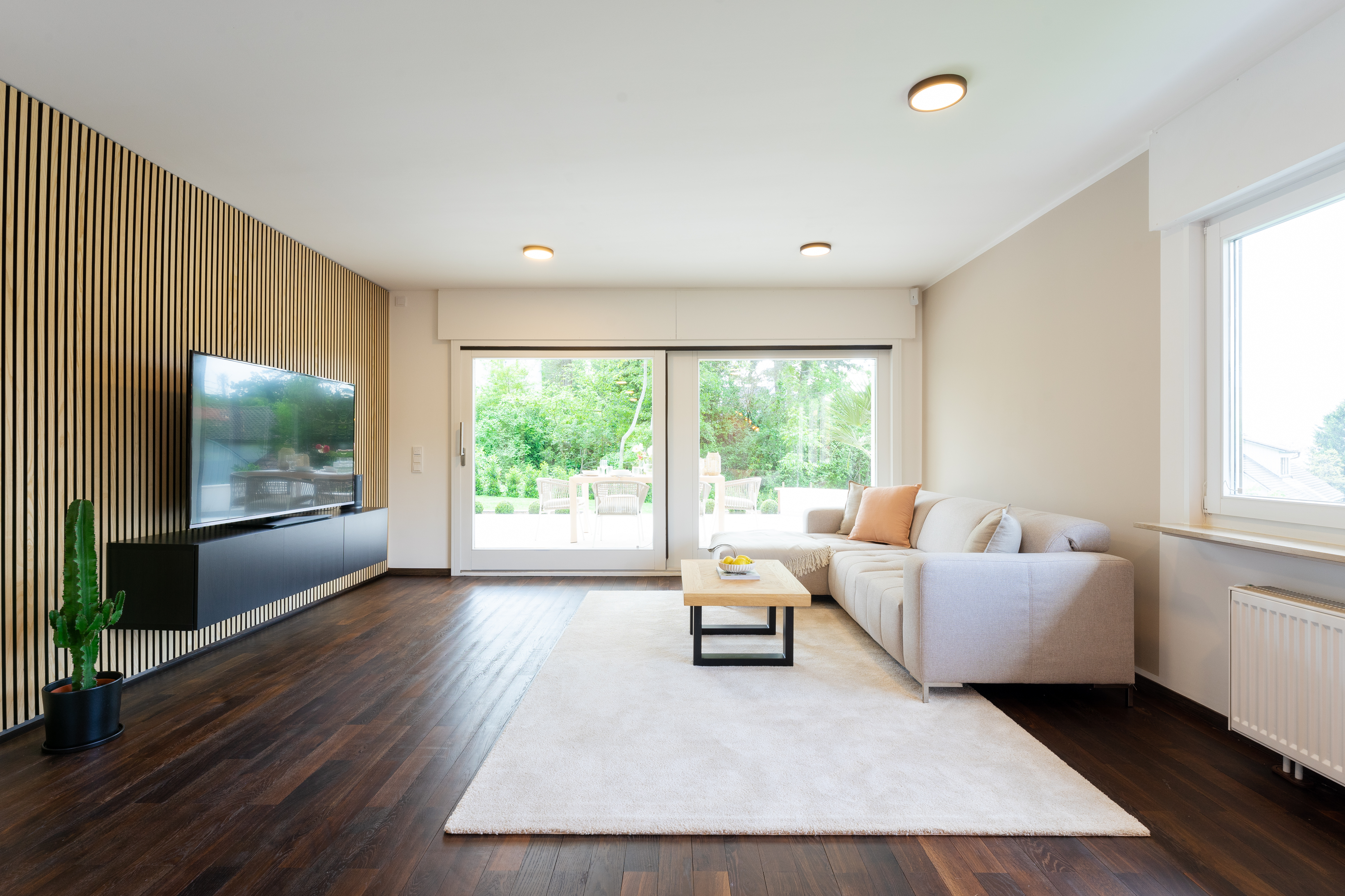This exclusive property was extensively renovated in 2022 and impresses with its inviting dining area with lake view. This room impresses with generous windows, a cozy wood-burning stove and a cozy fireplace. The high-quality furnishings are continued in the timelessly designed living area and throughout the house.